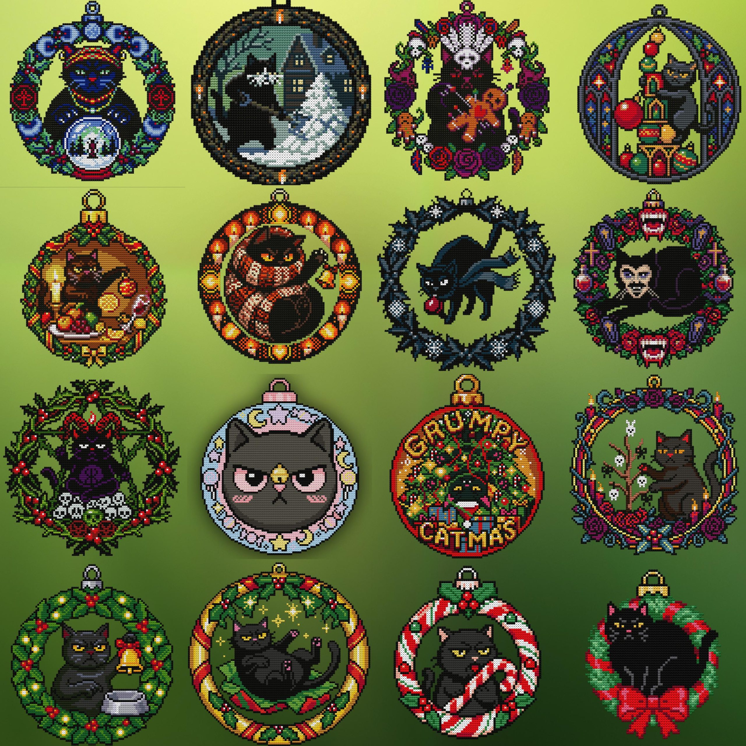 Grumpy Cat Xmas Ornament Cross Stitch Pattern Bundle – Set 32 Designs