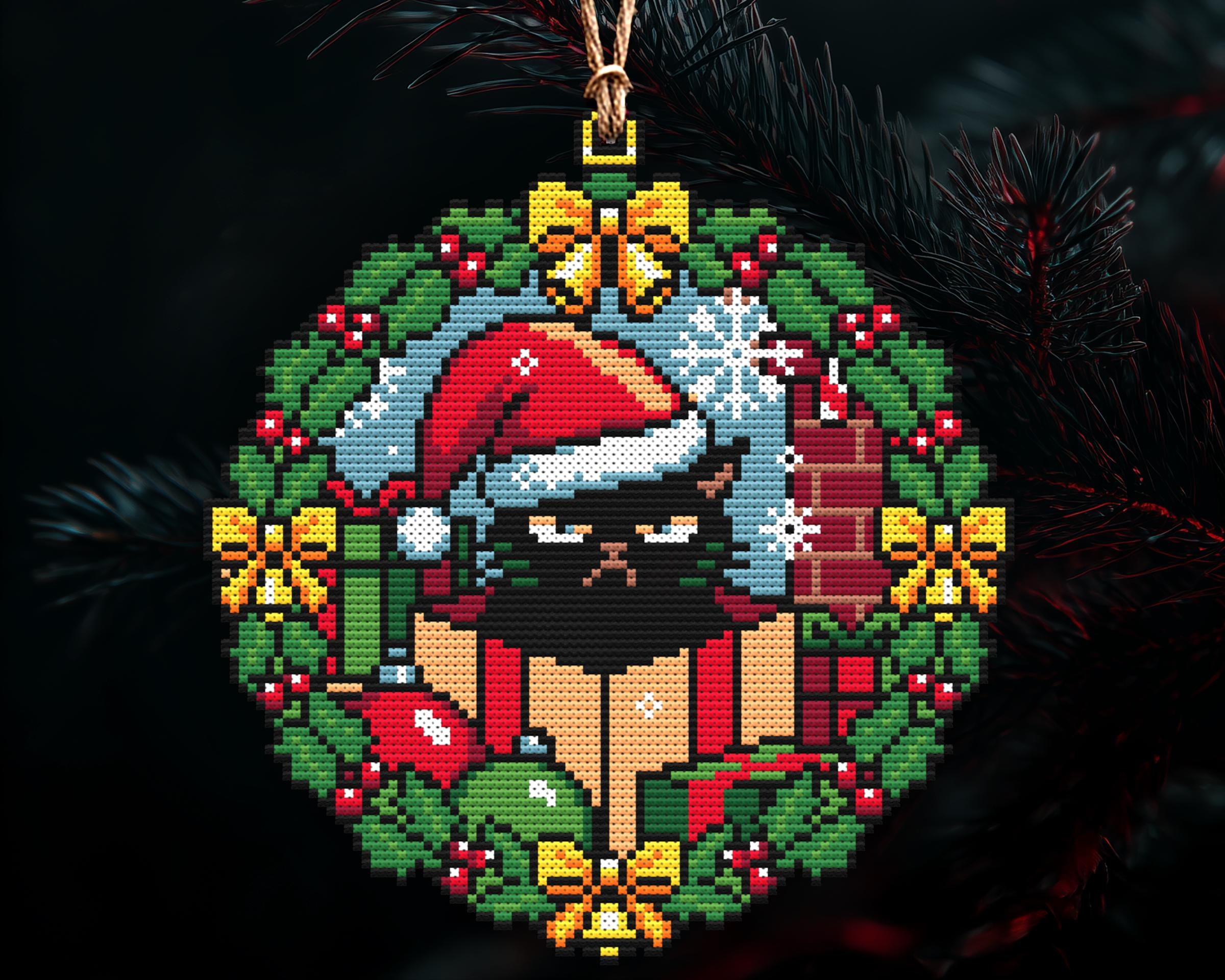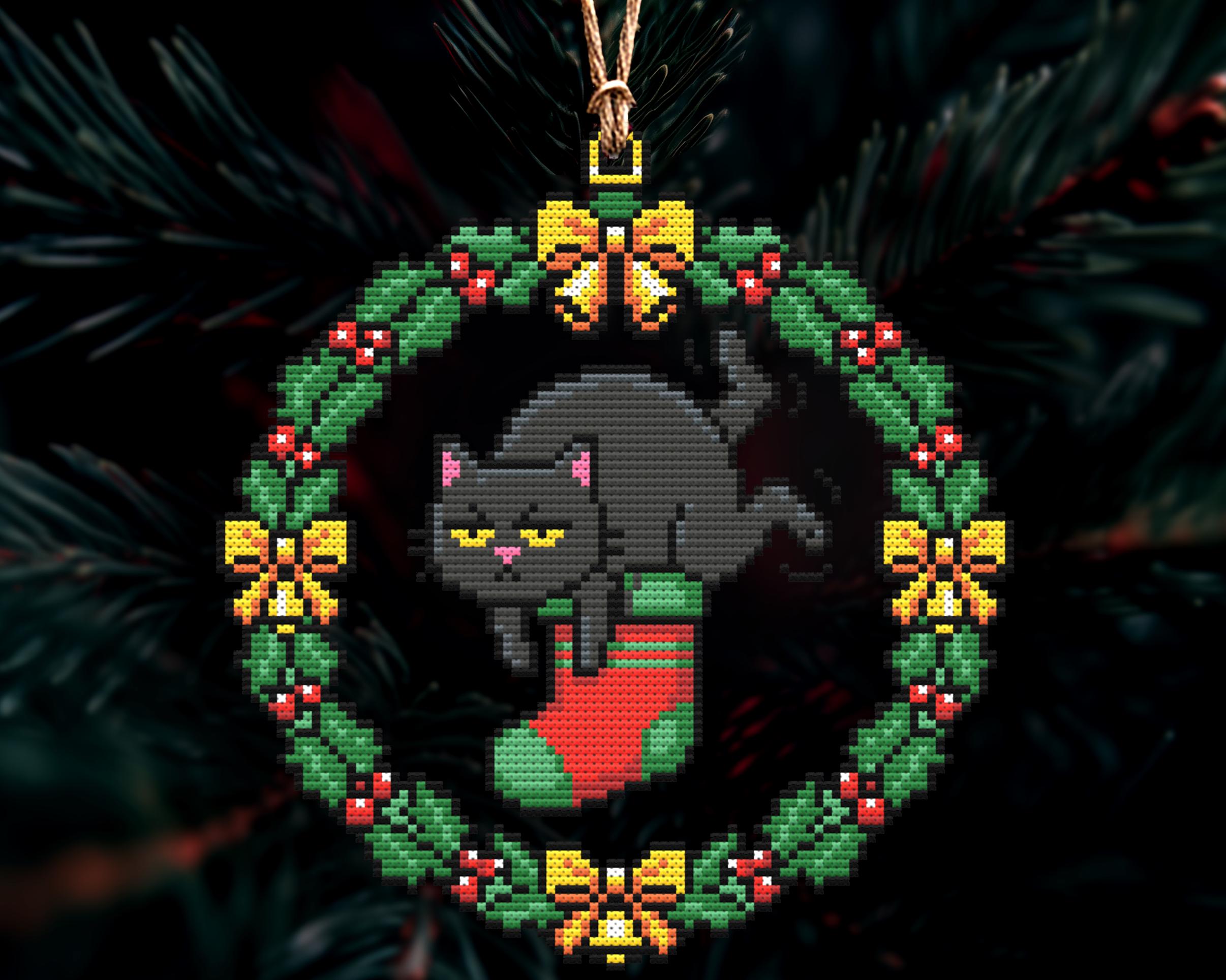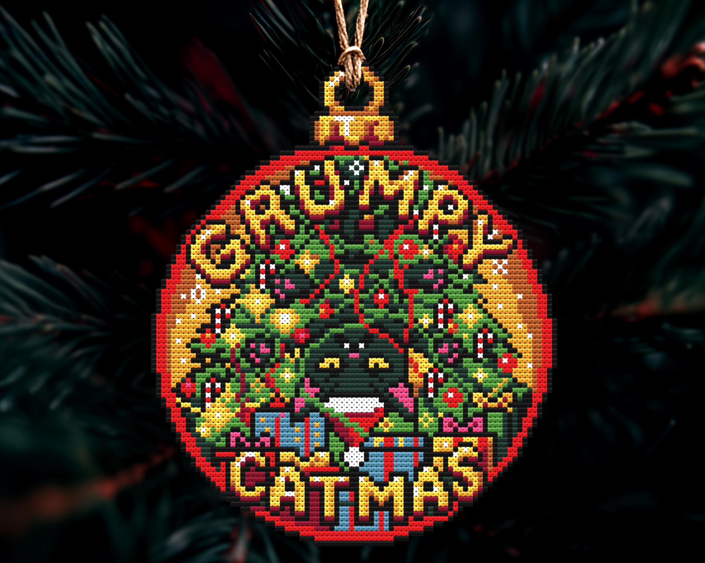 Grumpy Catmas Christmas Ornament Cross Stitch Pattern