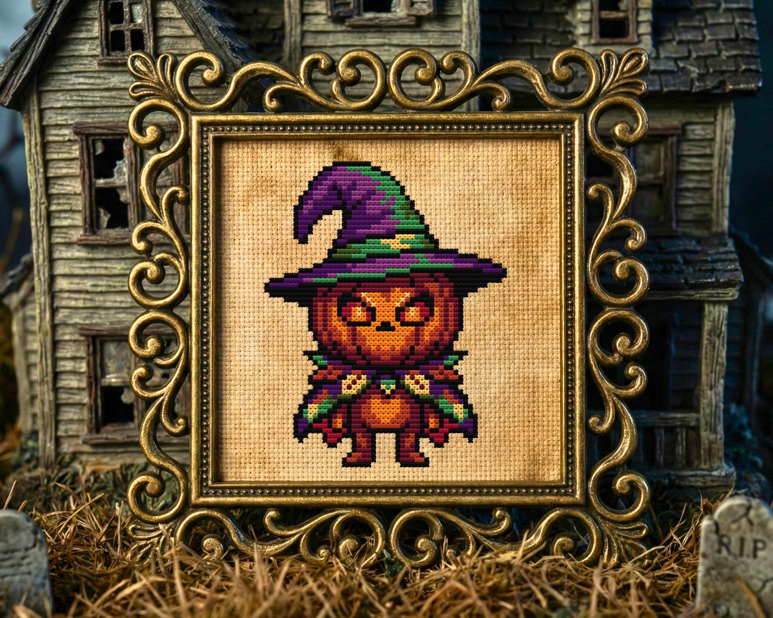 Halloween Wizard Pumpkin Cross Stitch Pattern