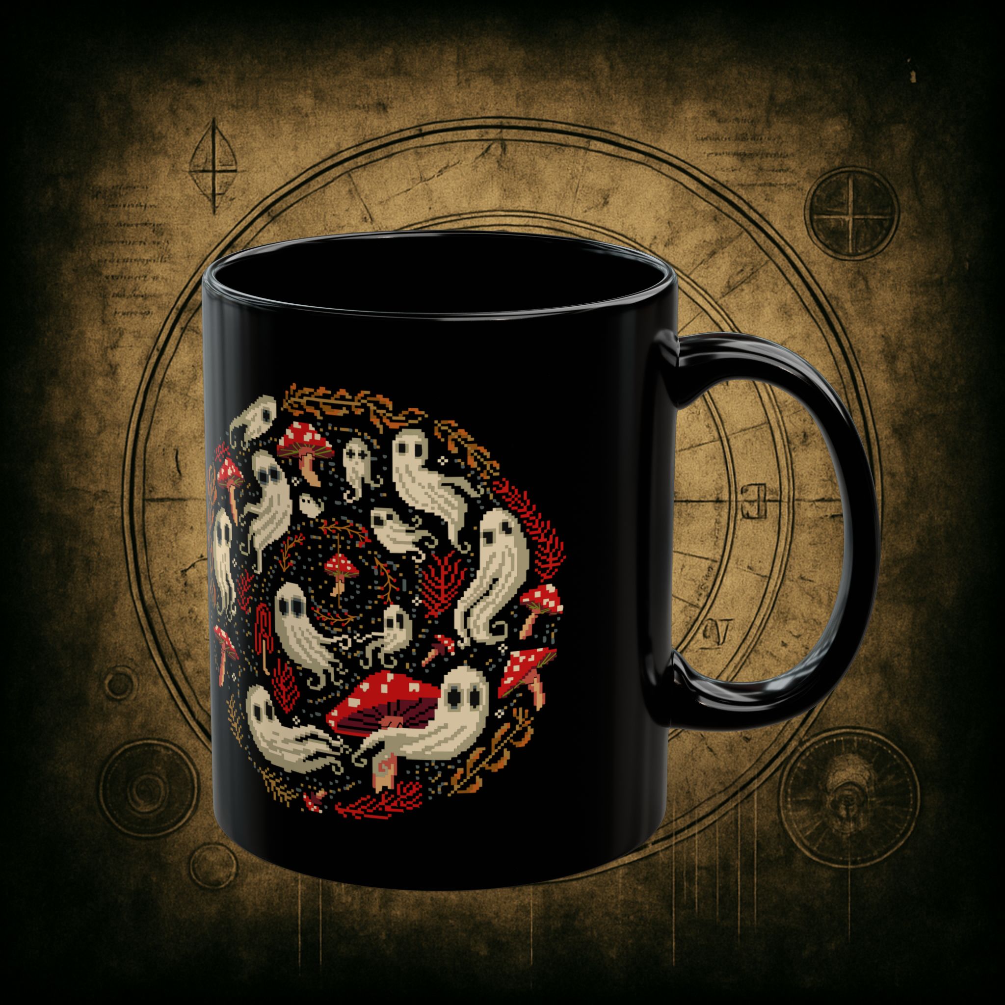 Spiral Mushrooms & Ghosts Ceramic Mug