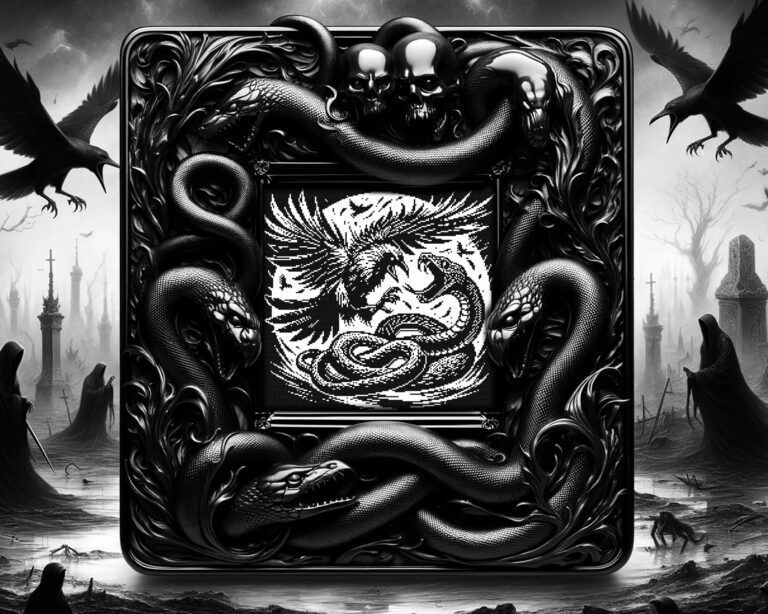 Behold your reward, the Raven and Snake Cross Stitch Pattern. This design, where cunning meets grace in the dance of death, invites you to capture the essence of two of nature’s most enigmatic creatures. Weave their mystique into your tapestry, a celebration of the power hidden in the shadows.
