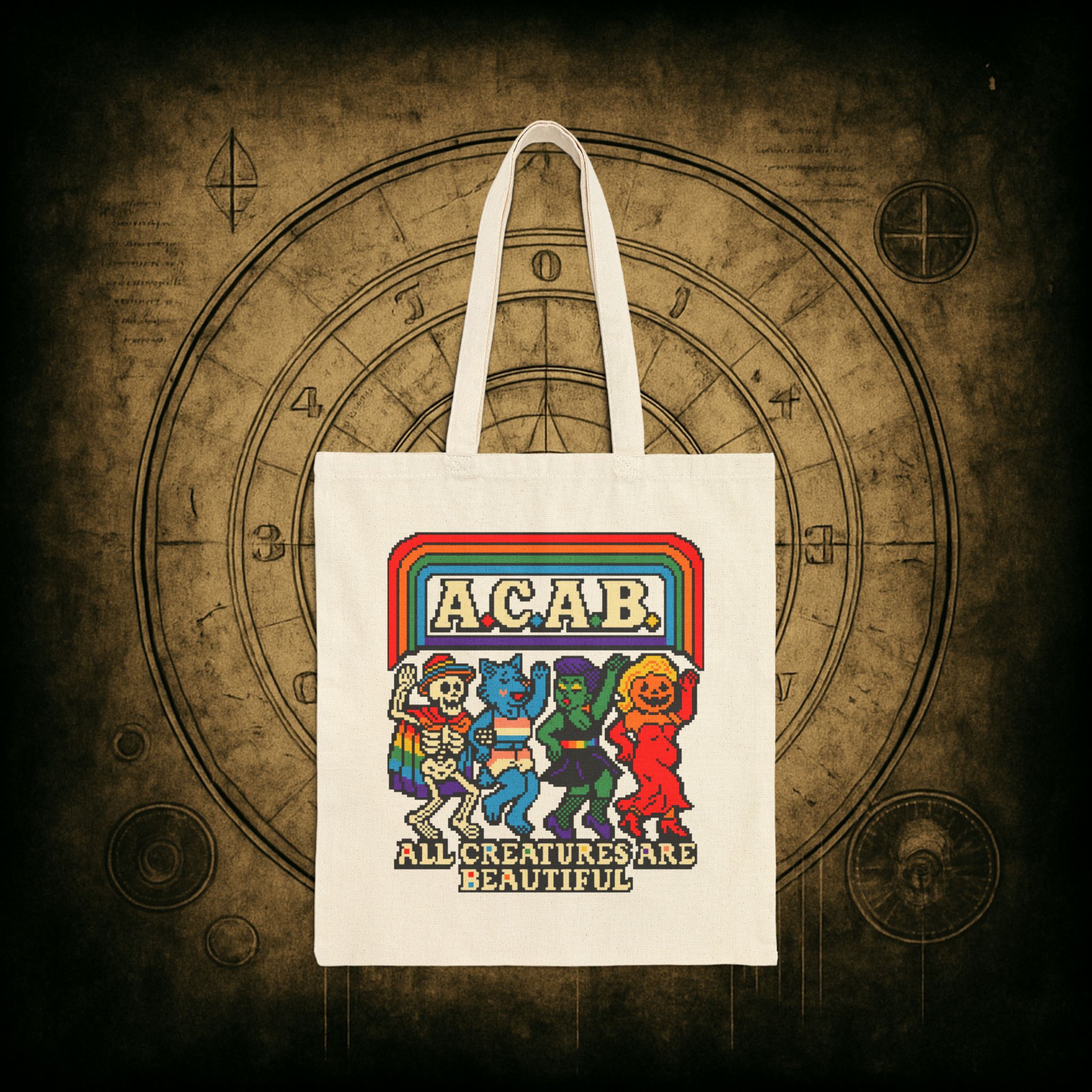Summon your inner monster, skeleton, or pumpkin-headed pal and carry your essentials with chaotic pride! The All Creatures Are Beautiful Tote Bag is your go-to grimoire carrier for parades, protests, and panicked coffee runs. Because fabulous knows no species.