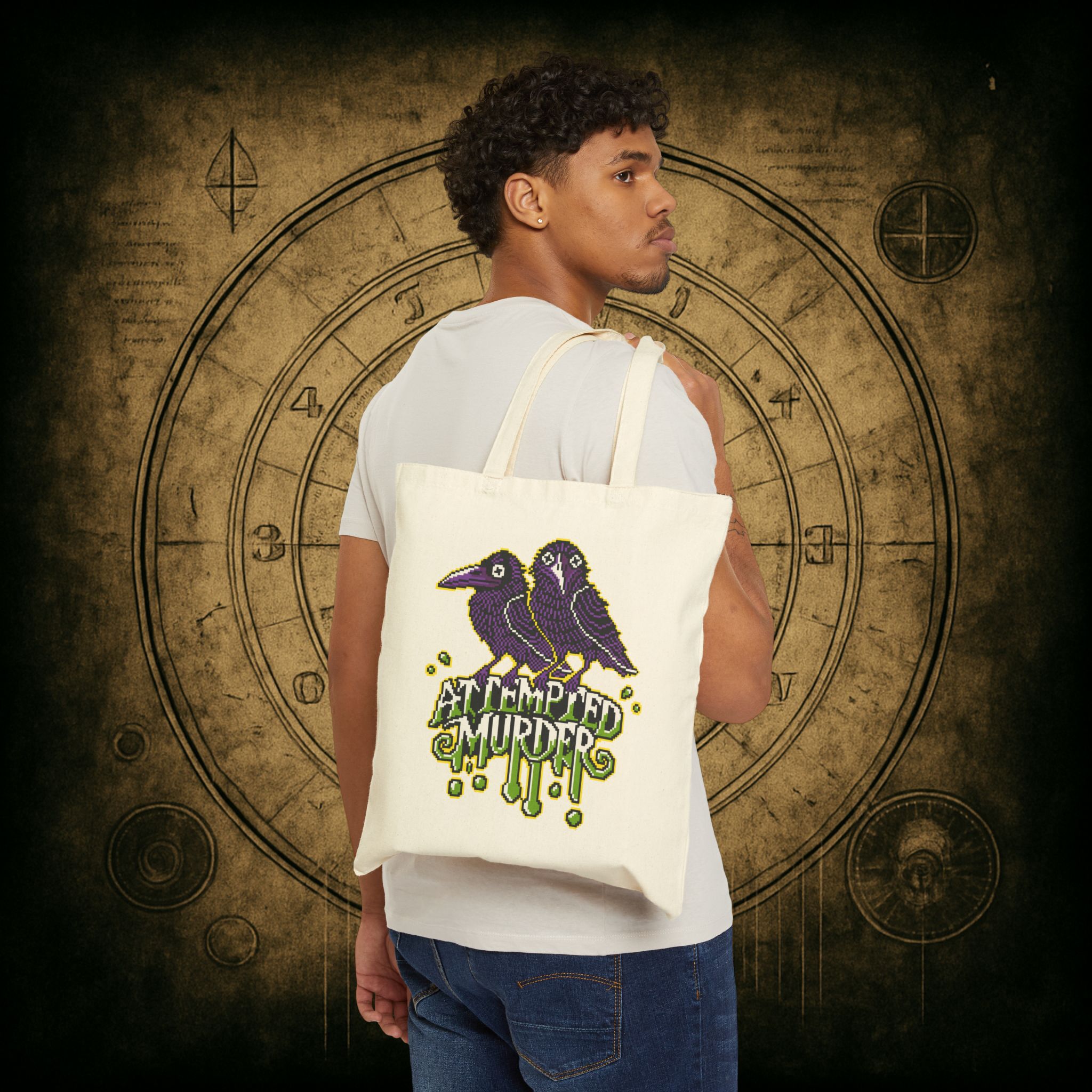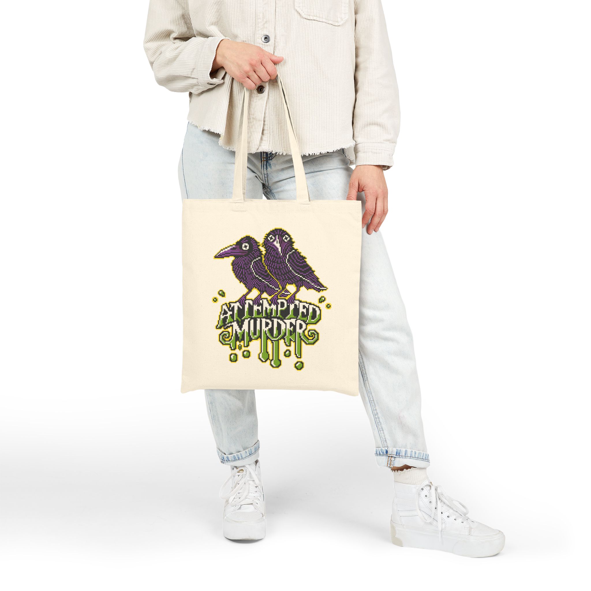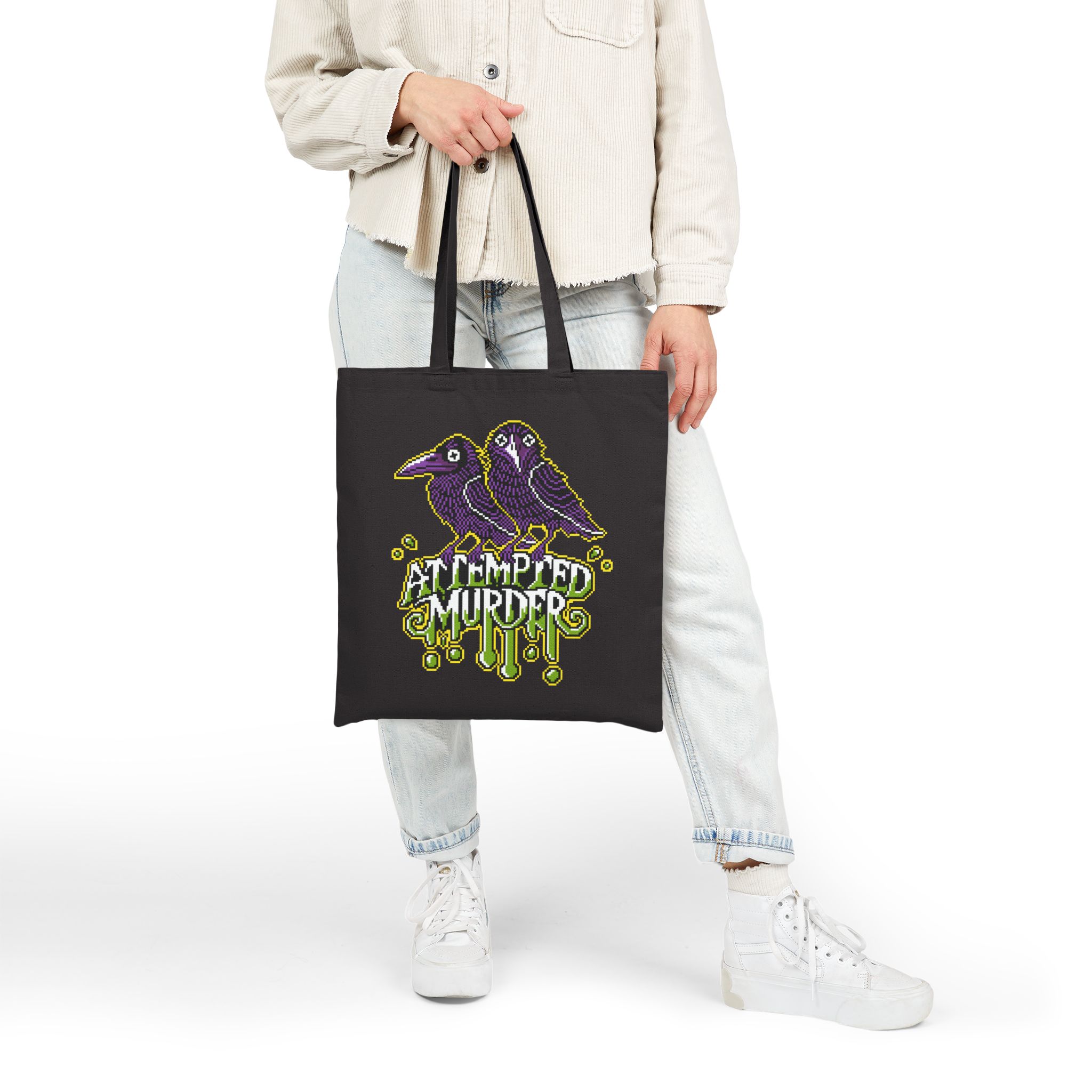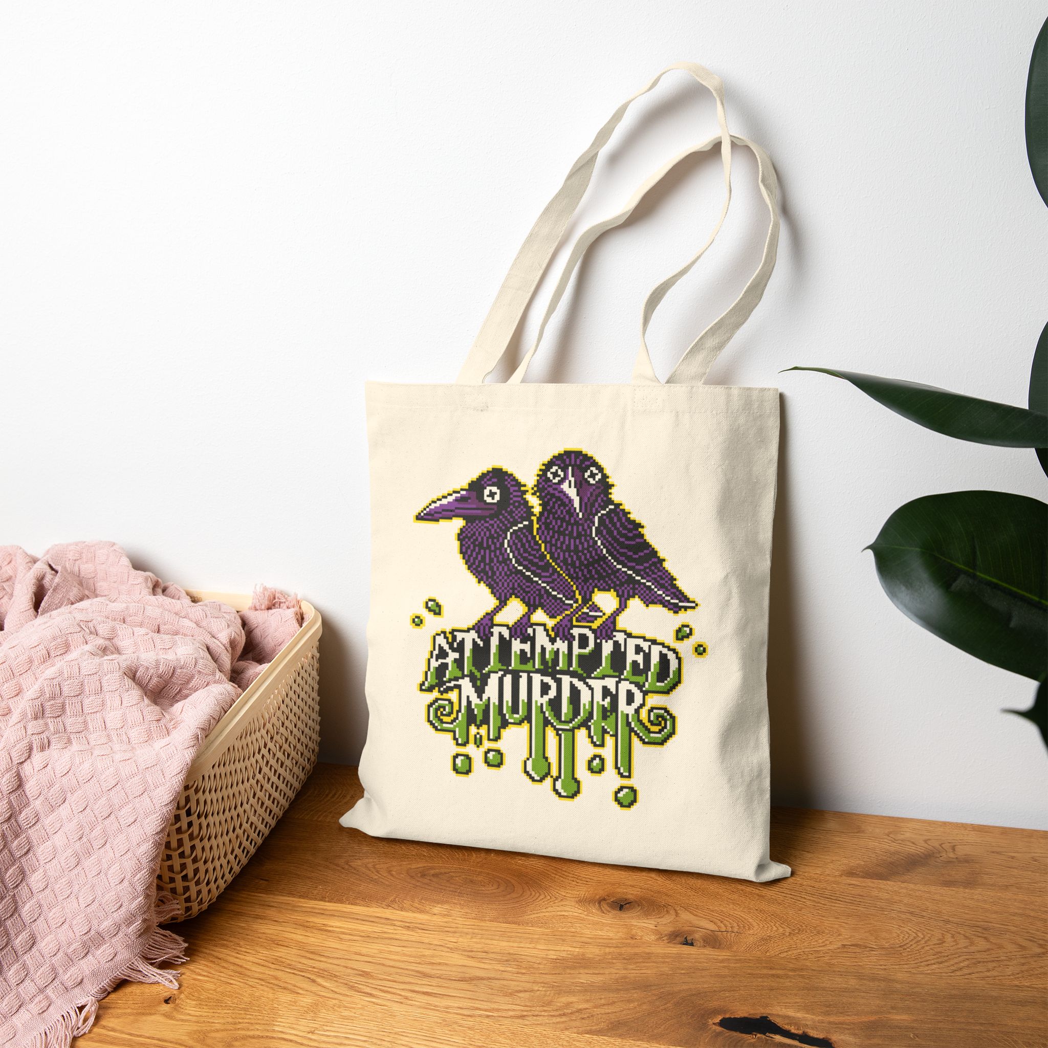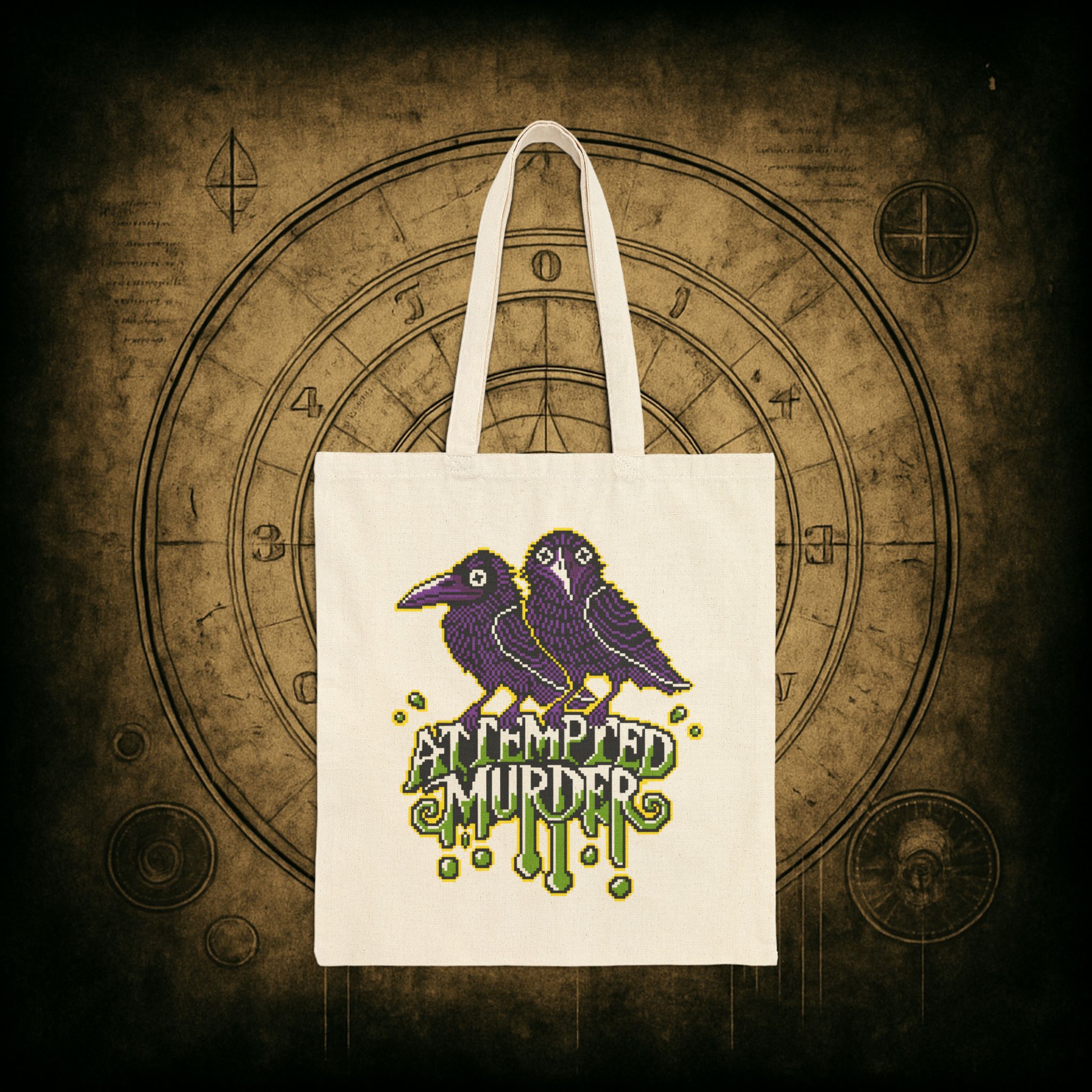 Two ravens. One crime. Zero chill. Whether you’re flapping to the bookstore or just gathering your ingredients for a casual hex, the Attempted Murder Tote Bag is the perfect alibi. With pixel-perfect attitude and a murderously cute design, it’s your go-to for chaos in style.