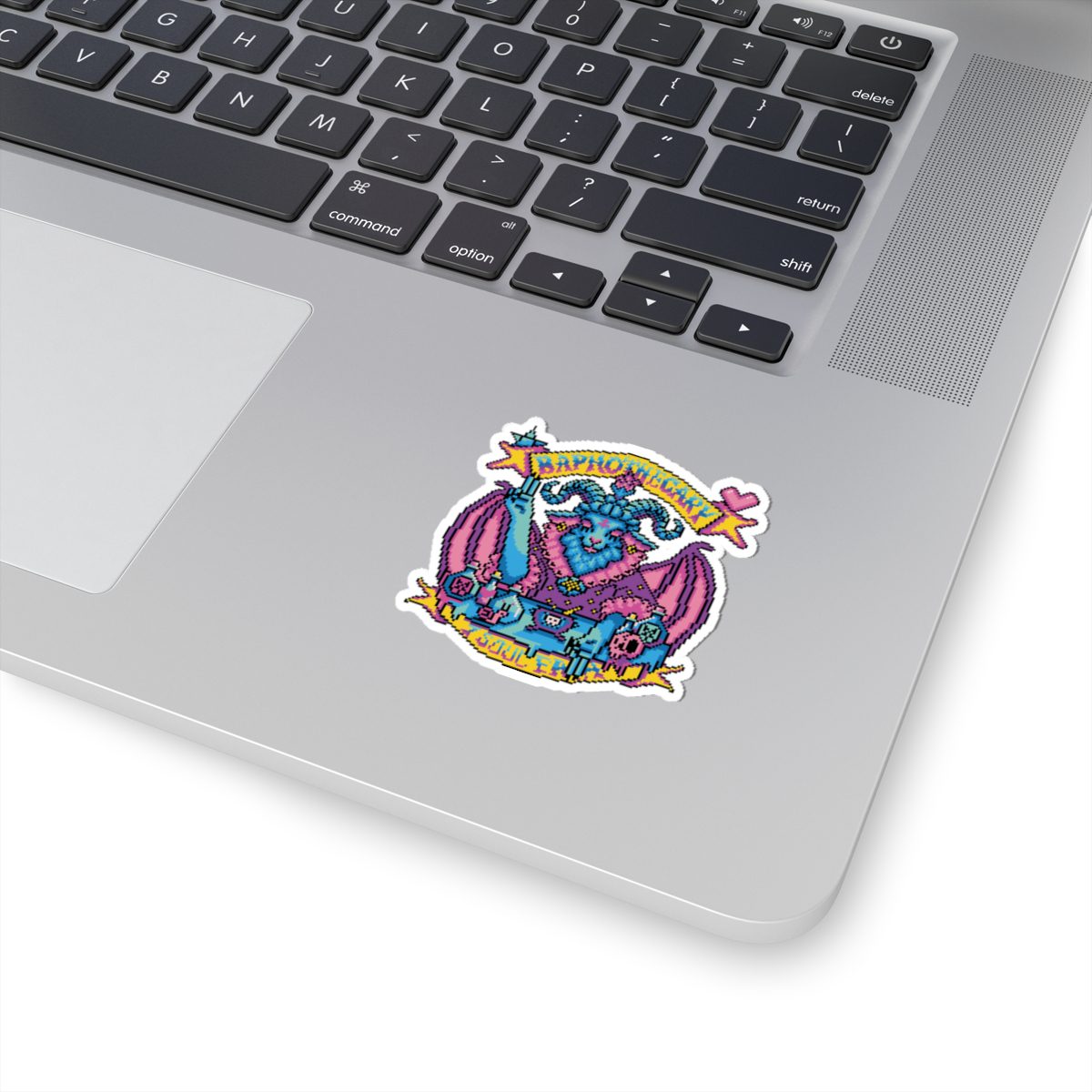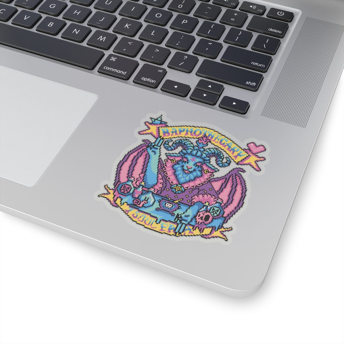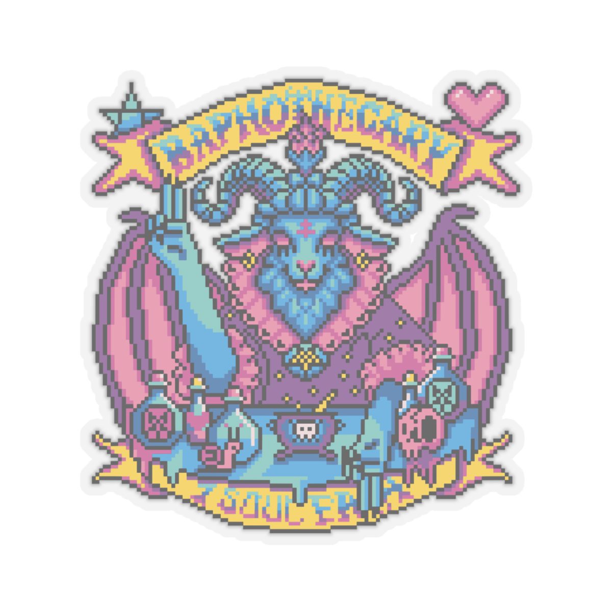Part potion master, part chaos icon, the Baphothecary Kiss-Cut Sticker blends pastel magic with unholy wisdom and maybe just a dash of glitter in your spell jars. With bat wings, a smug smile and a full apothecary at their hooves, this fabulous infernal pharmacist is ready to cure your vibes and hex your ex.