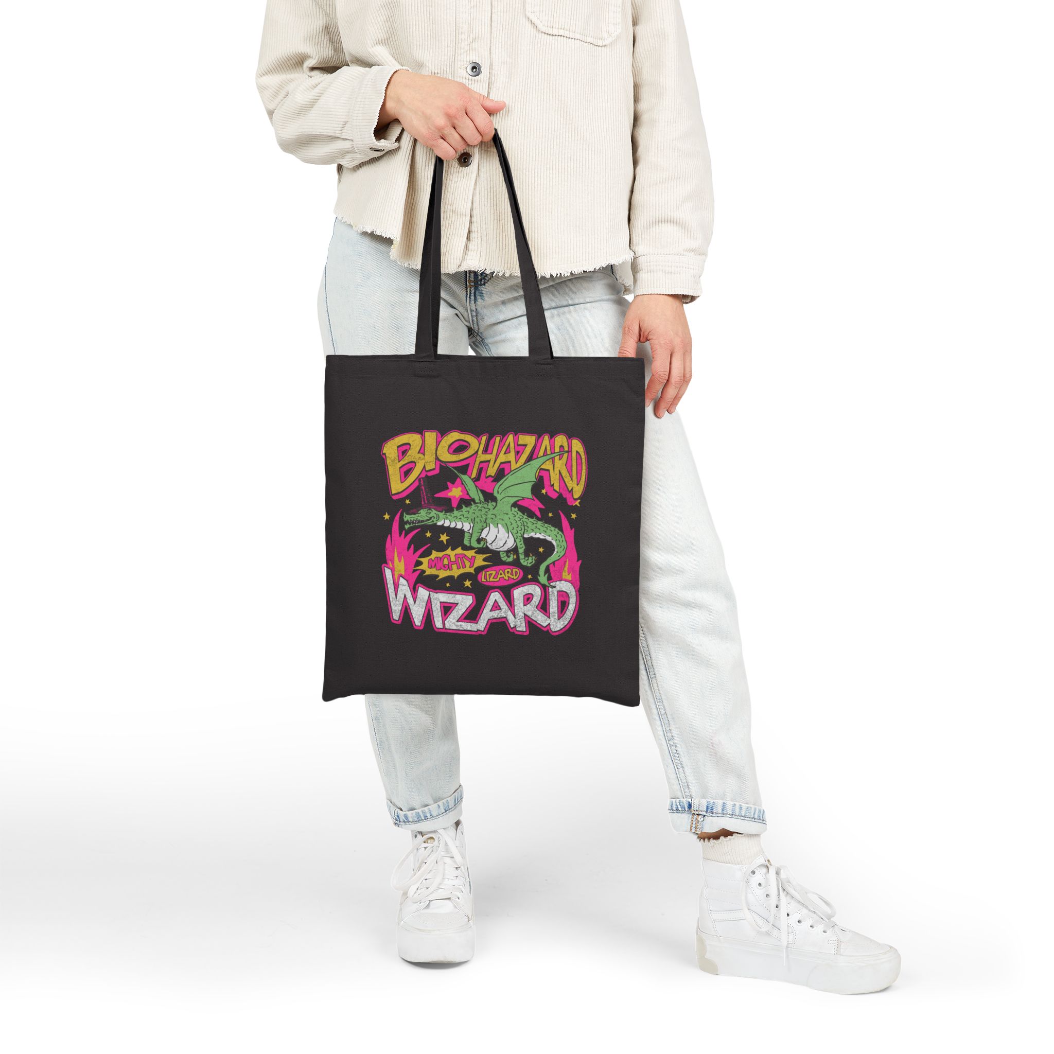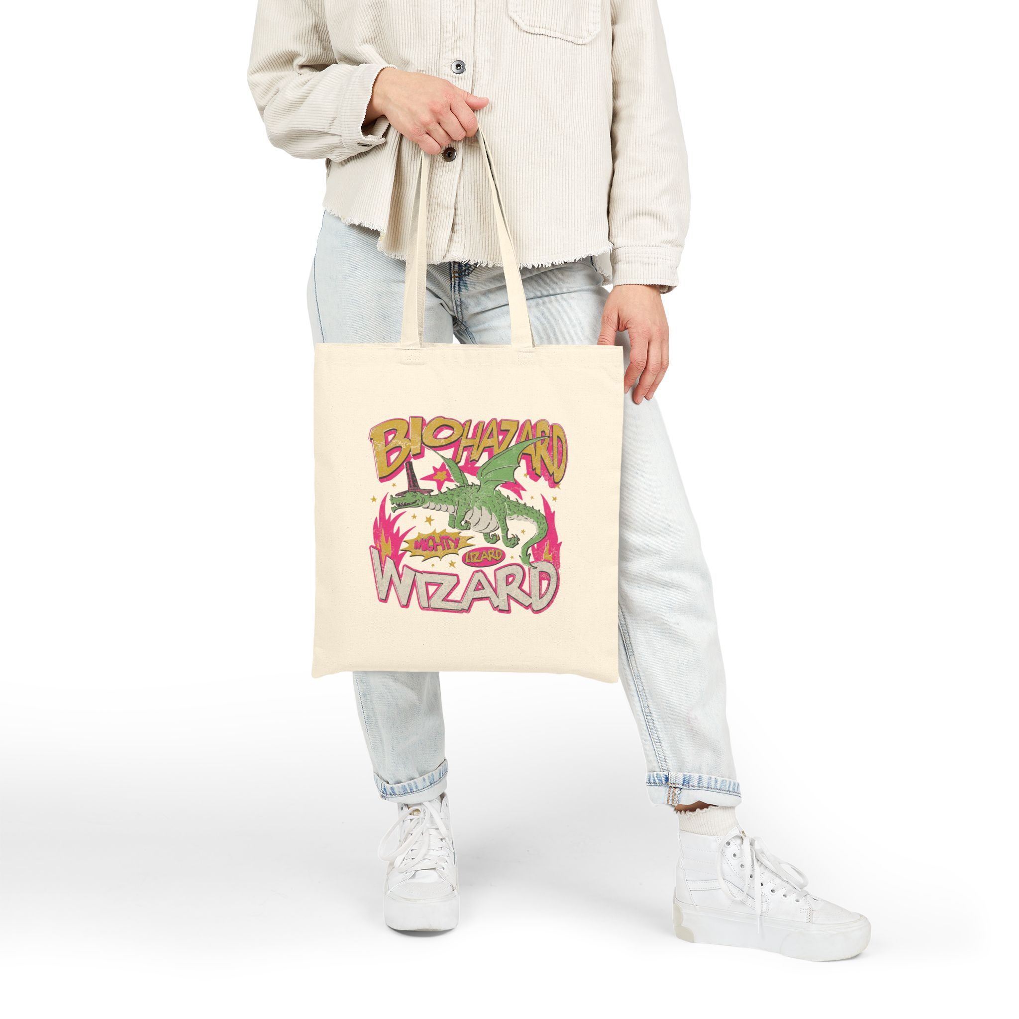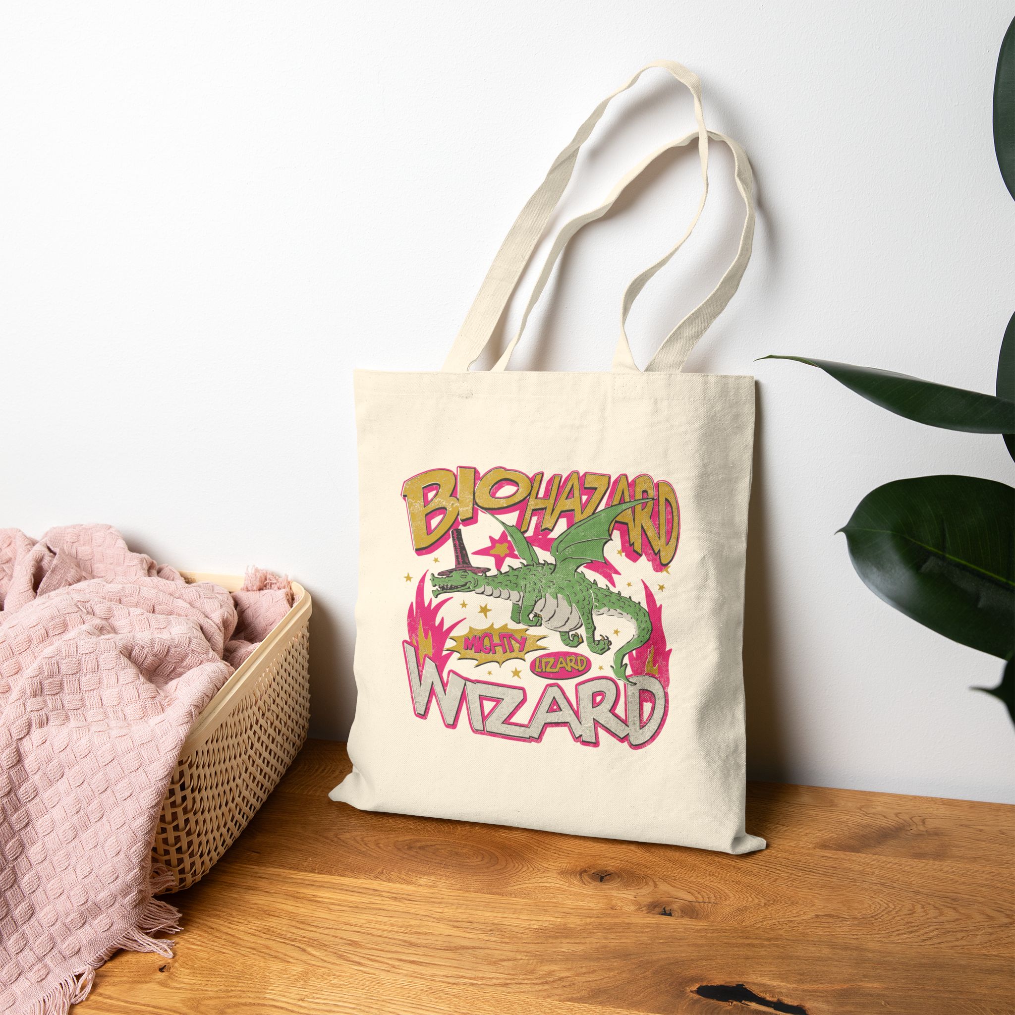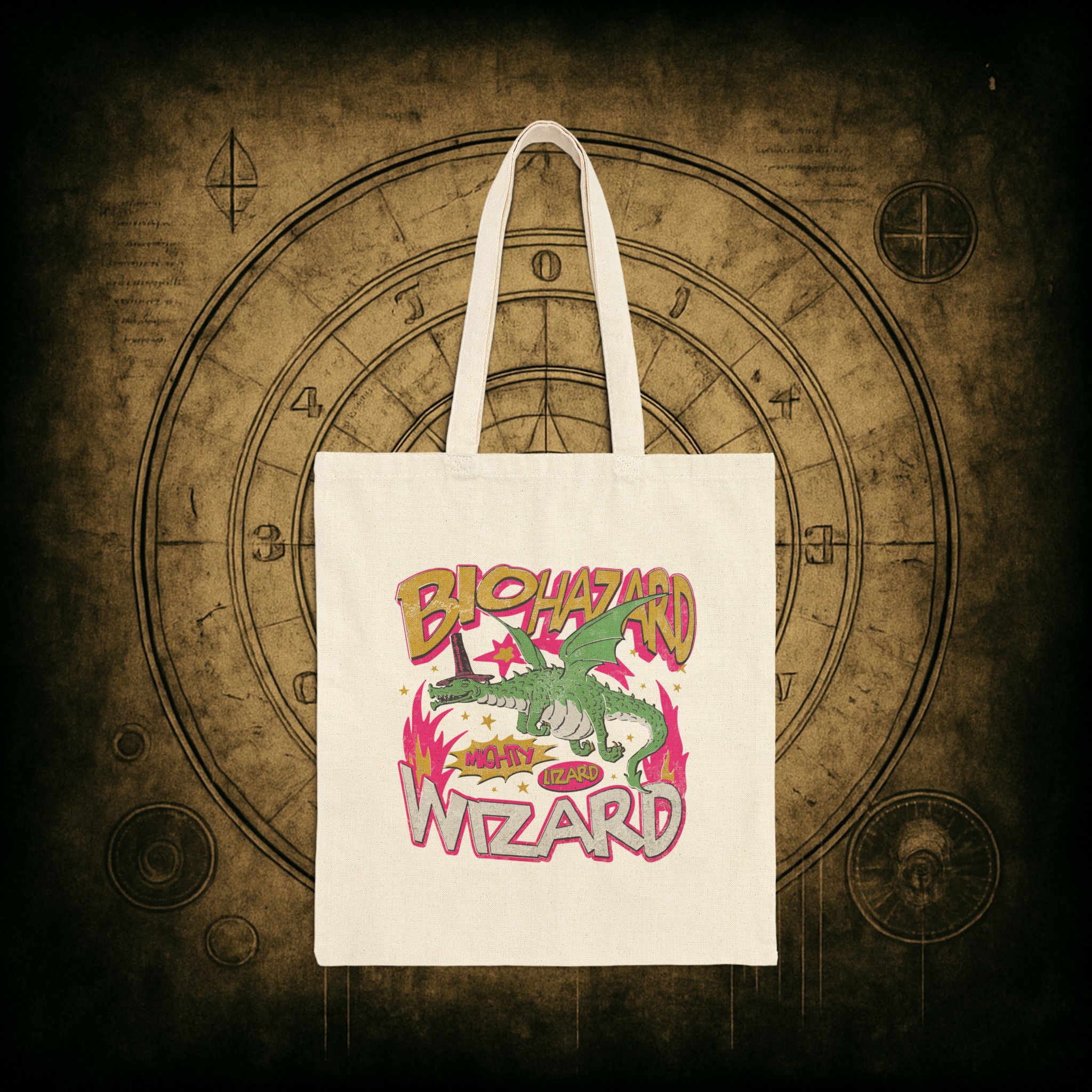 Warning: contents may cause spontaneous spellcasting and suspicious green smoke. The Biohazard Wizard Tote Bag features the mightiest mutant lizard wizard this side of the forbidden swamp, surrounded by chaotic flames and radioactive flair. It’s the perfect companion for potion runs, spellbook smuggling, or just carrying around your dangerously unstable vibe.