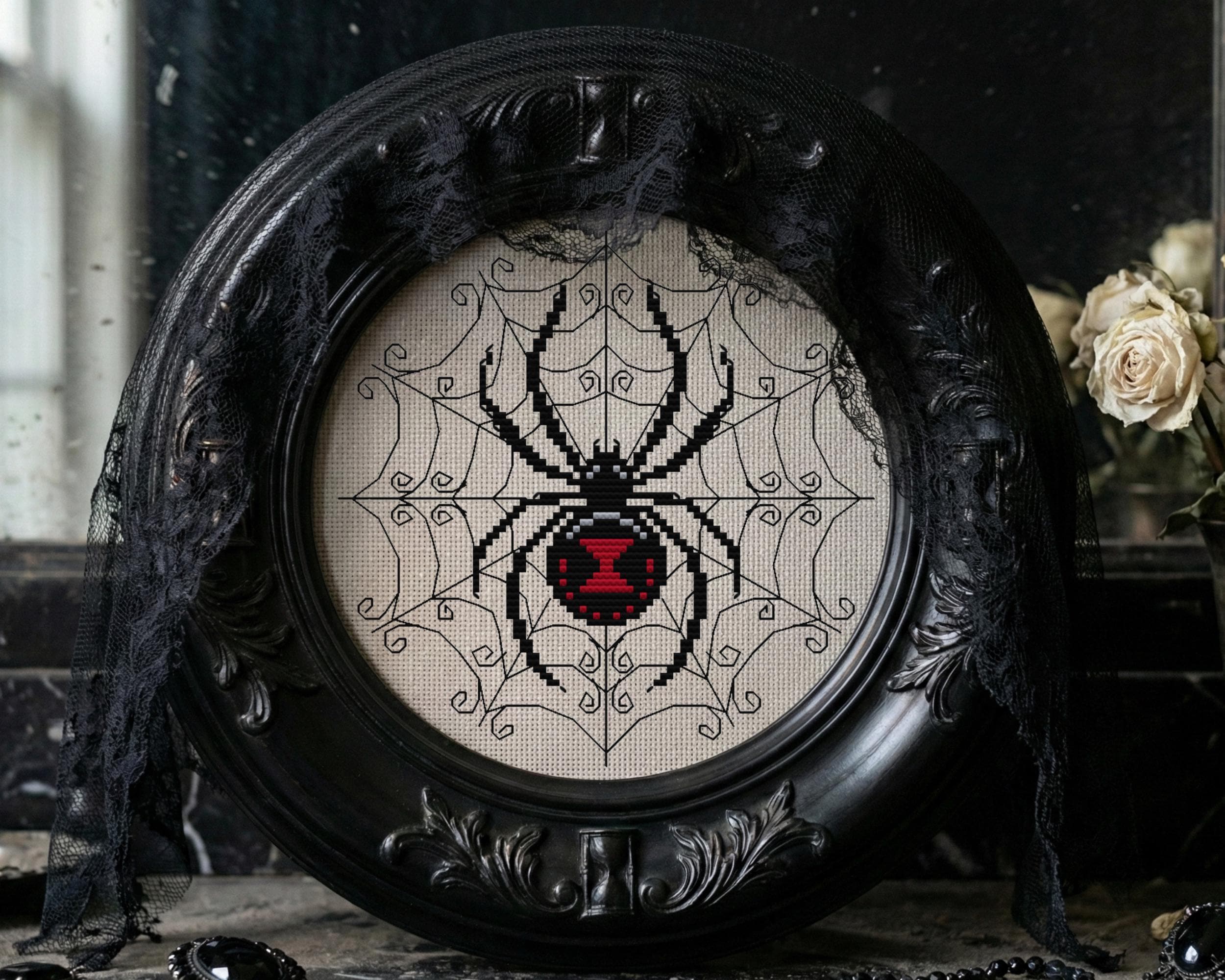 Ready to embrace the dark side? This black widow cross stitch pattern is the perfect way to add a little danger to your hoop collection. It blends a classic aesthetic with a modern cross stitch vibe that looks killer on any gallery wall. If you re the type of person who lives for Halloween cross stitch regardless of the season, you re going to love stitching this web. Plus, nothing sets a mood quite like a piece of gothic cross stitch art hanging in your living room.