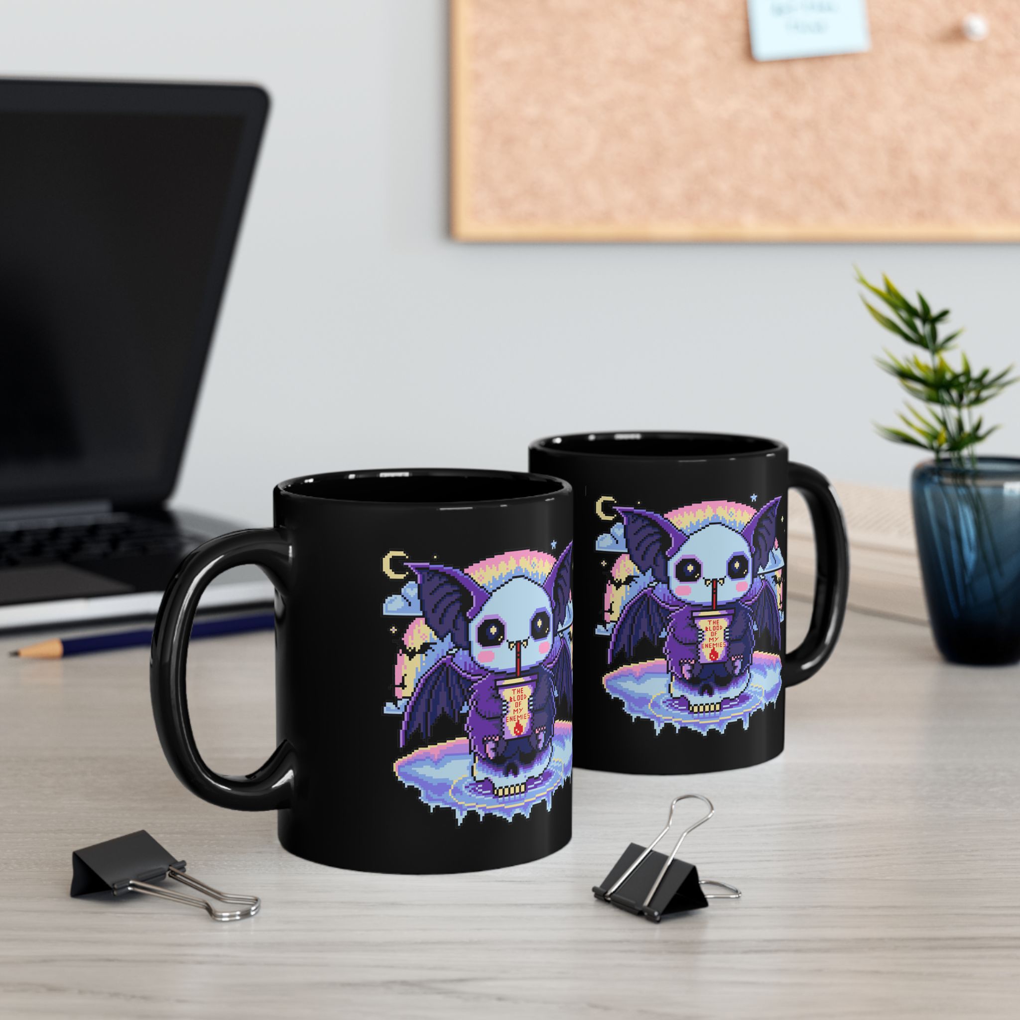 Cuter than your trauma. Deadlier than your ex’s texts. This batty little goblin is sipping something suspiciously red and doing it with zero remorse—because revenge is a beverage best served pixelated.