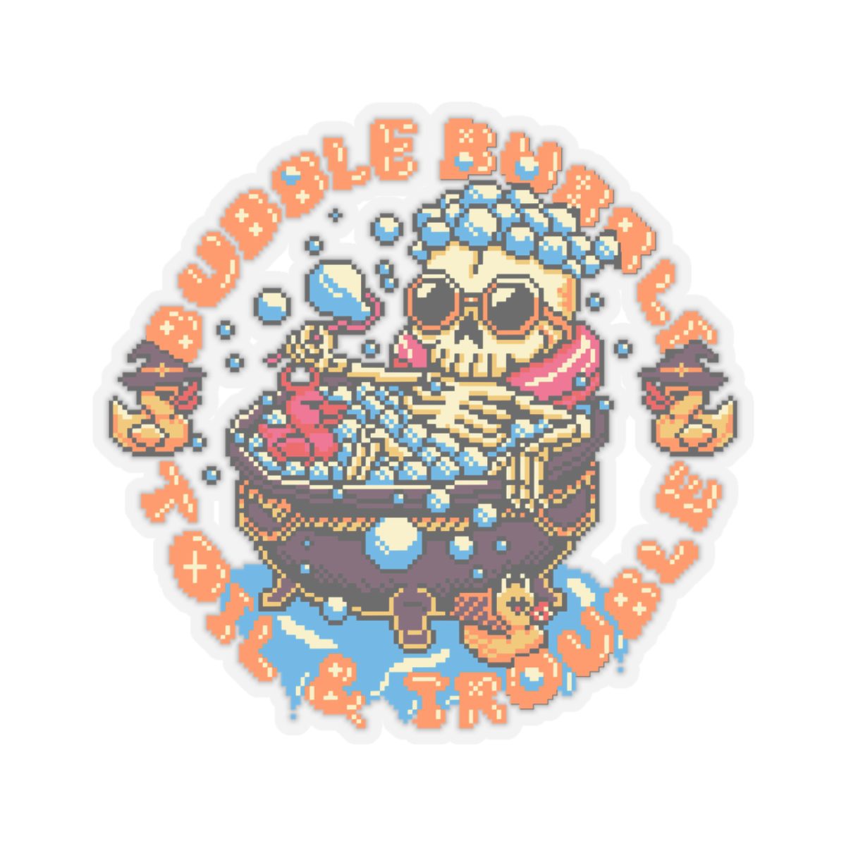 What do you get when you cross Macbeth, a skeleton, and an over-the-top bubble bath? The Bubble Bubble Kiss-Cut Sticker, obviously. This gloriously undead diva is soaking in potion suds, candles lit, toe bones out, and the drama? Bubbling. Up.