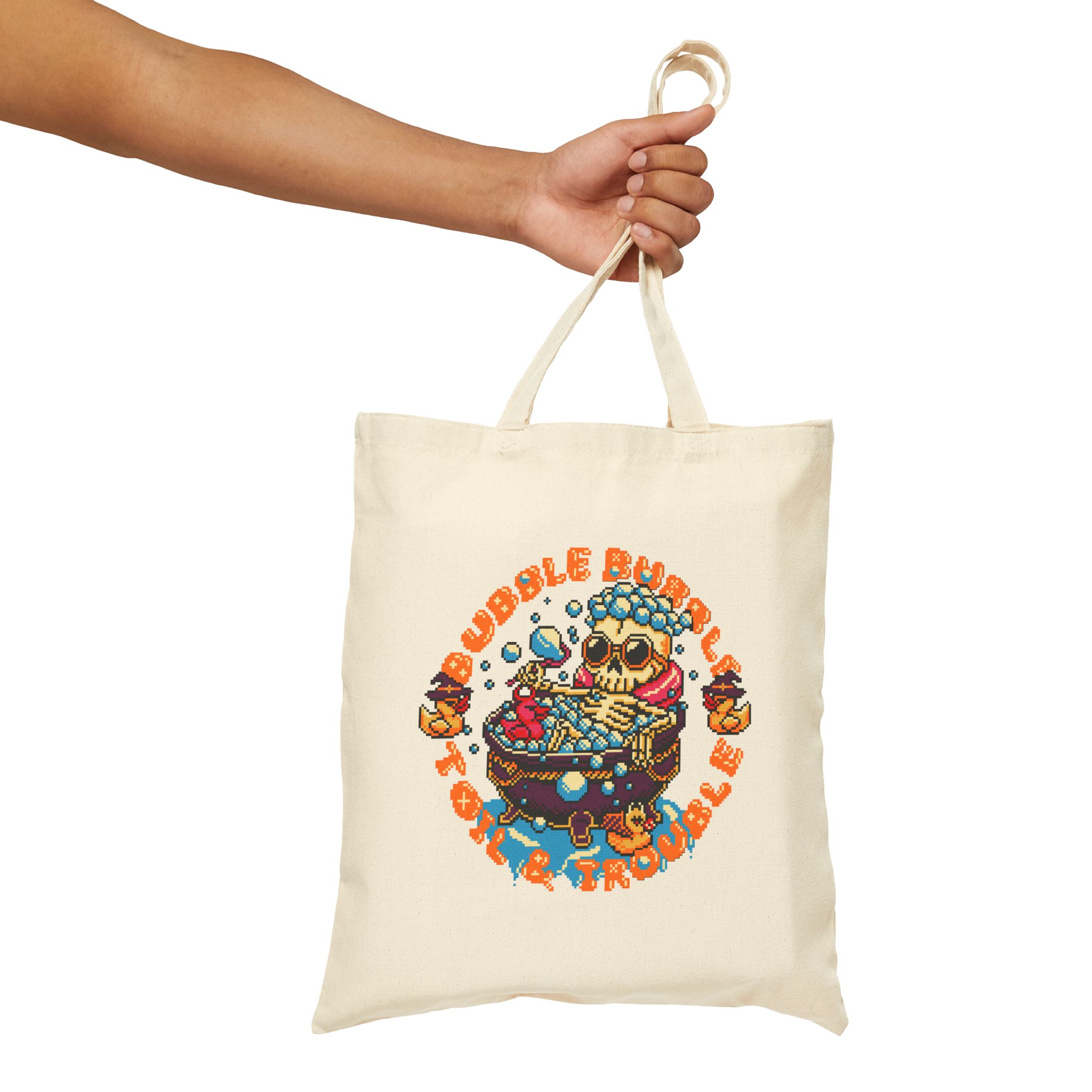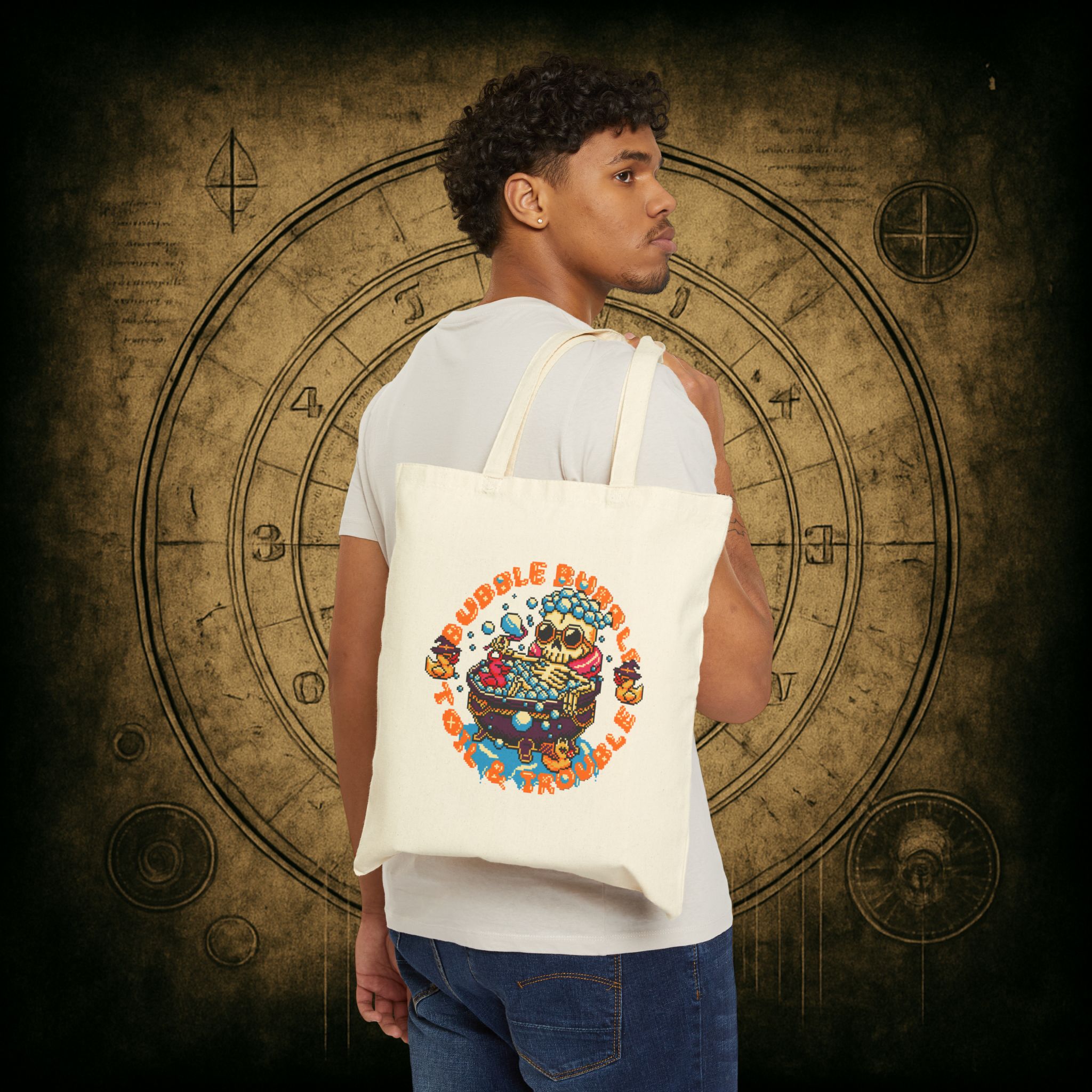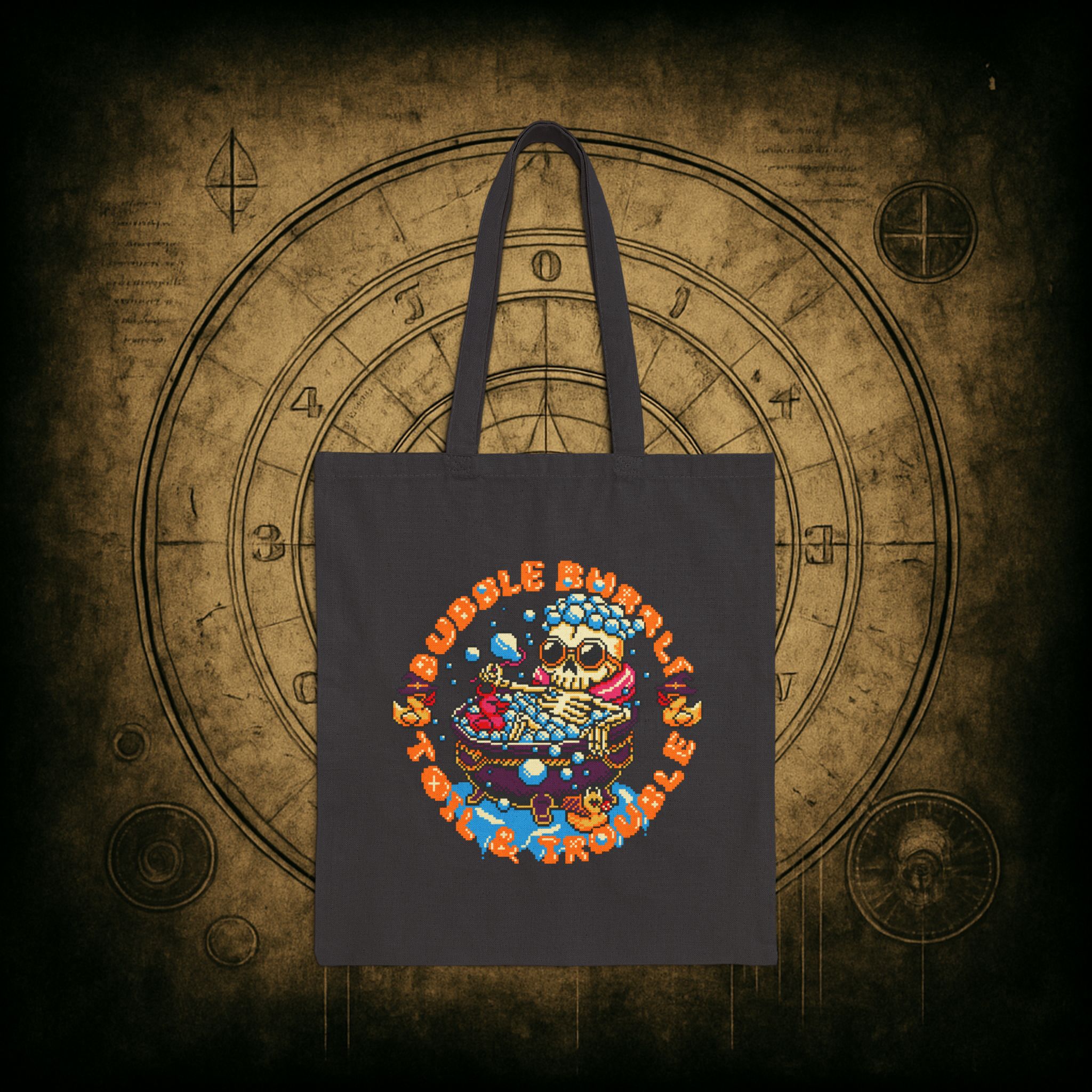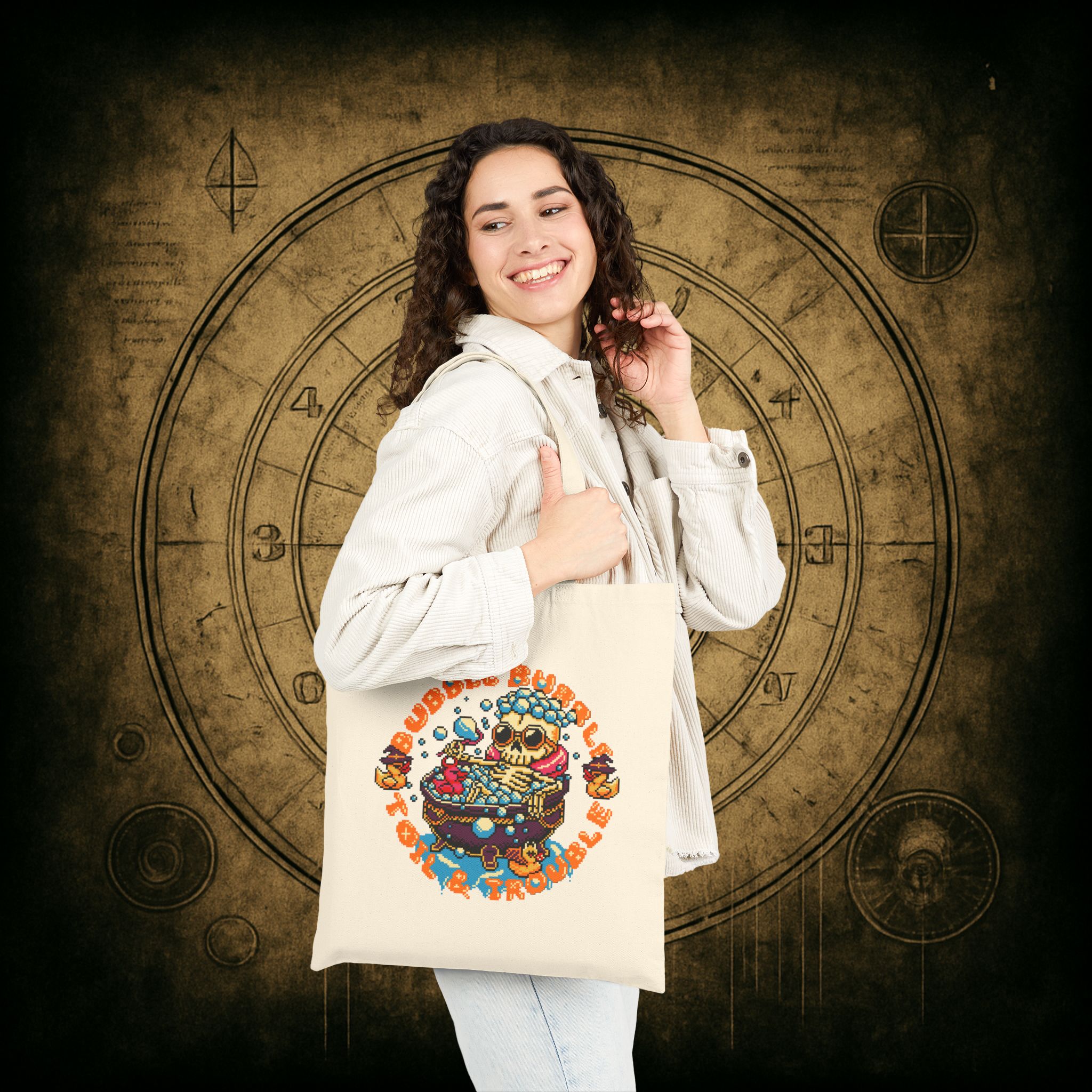 Bathtime brews and bubbly doom, the Bubble Bubble Tote Bag brings skeleton chic straight to your daily grind. Featuring a bone babe soaking in a cauldron of mischief, bubbles, and possibly stolen spells, this tote is ideal for witches who believe in self-care and summoning. Whether you’re headed to the potion shop, spa, or just carrying your emotional baggage in style, this bag’s got you covered.