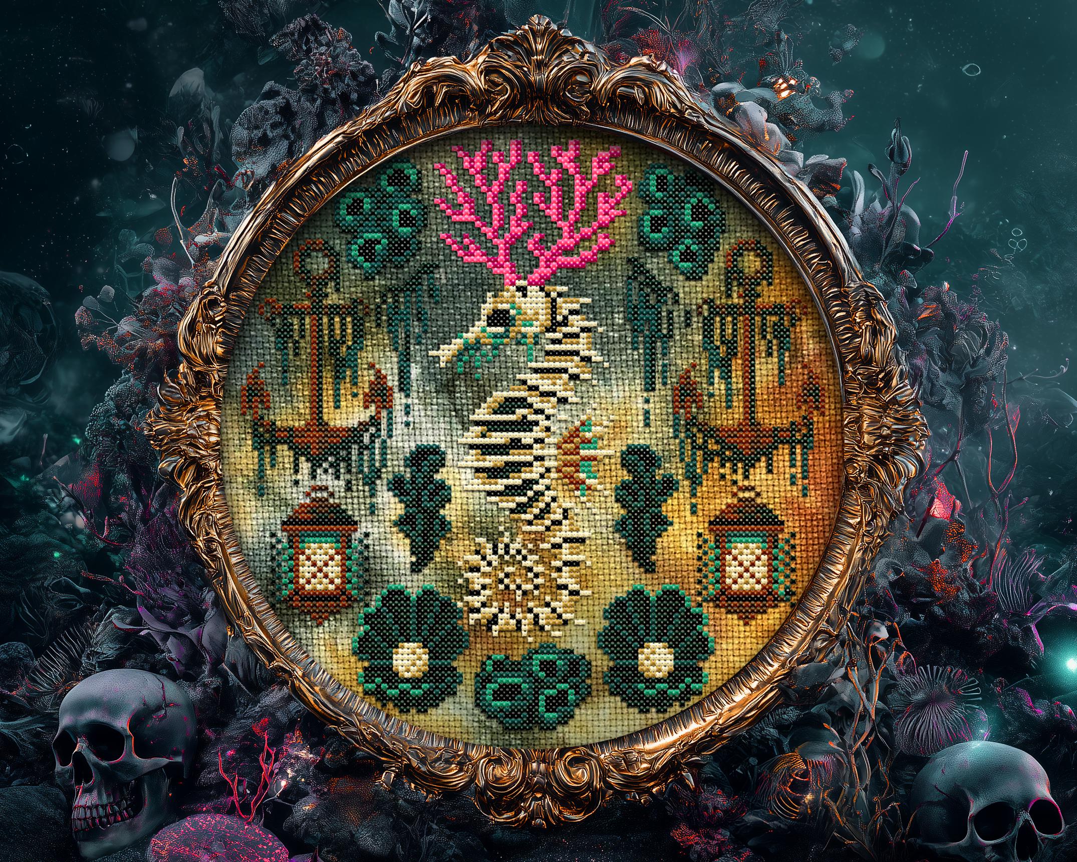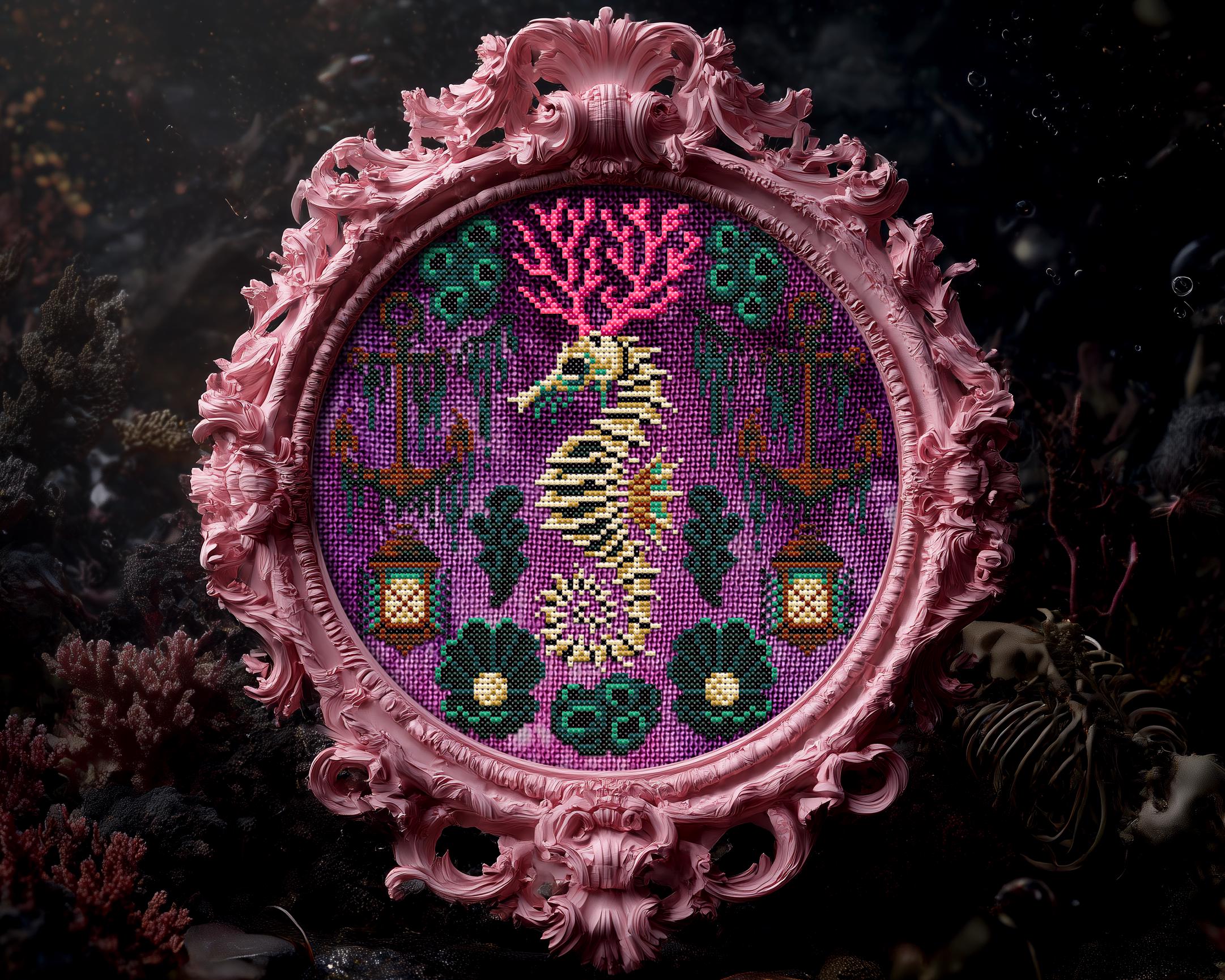 moody. It’s salty. It’s a full-blown dark cross stitch séance under the sea. And yes, it’s also a