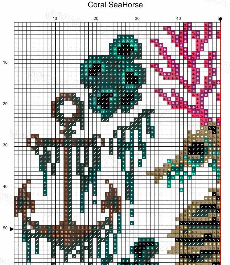 Coral Seahorse Cross Stitch Pattern