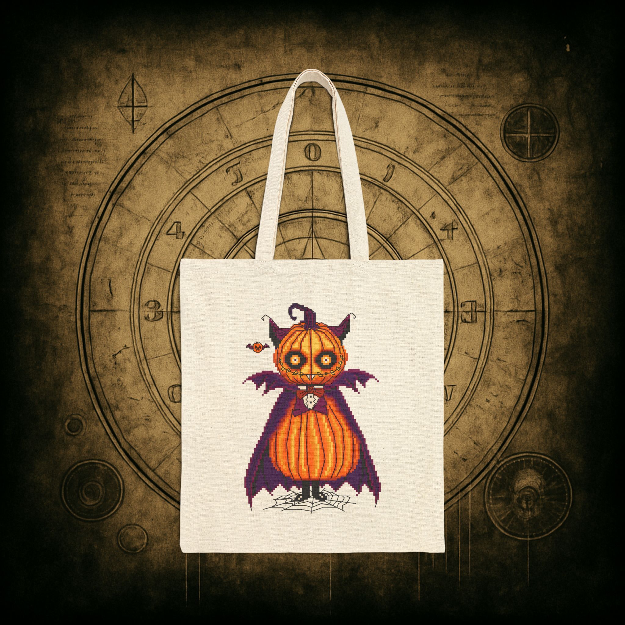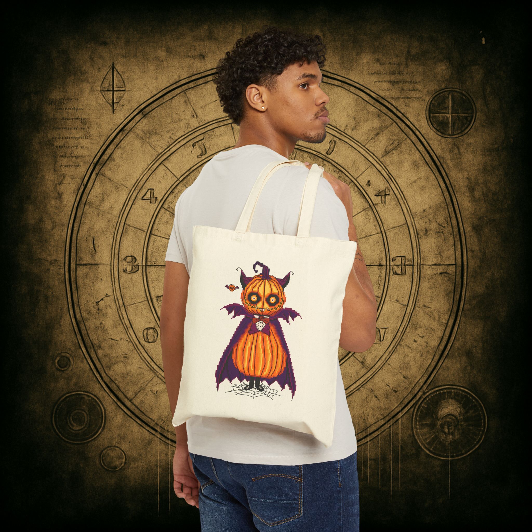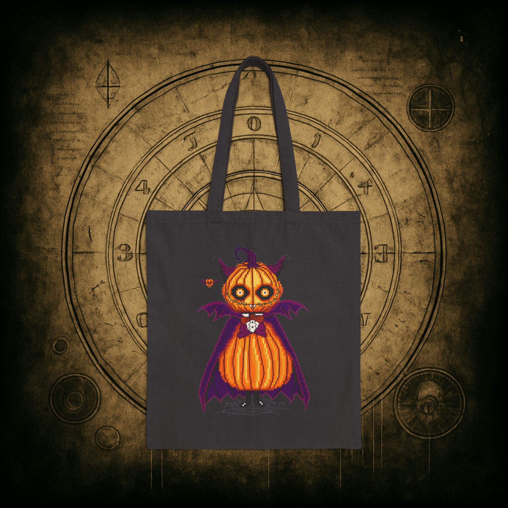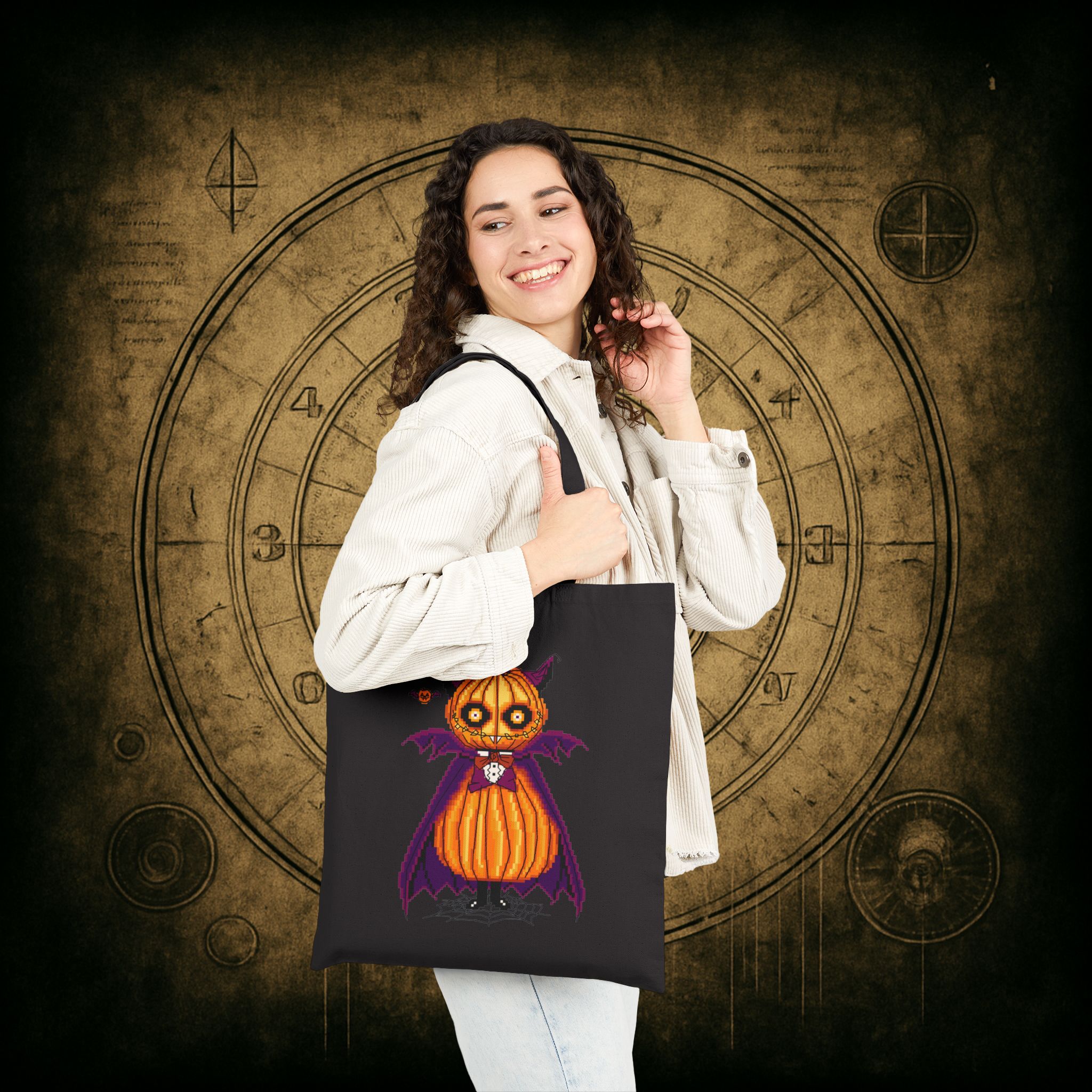 Sink your fangs into spooky season with the Count Pumpcula Tote Bag, stitched in the deepest crypts of style and sass. Whether you’re out gathering candy, curses, or just your everyday groceries, this vampkin companion adds bite to any mundane mission.