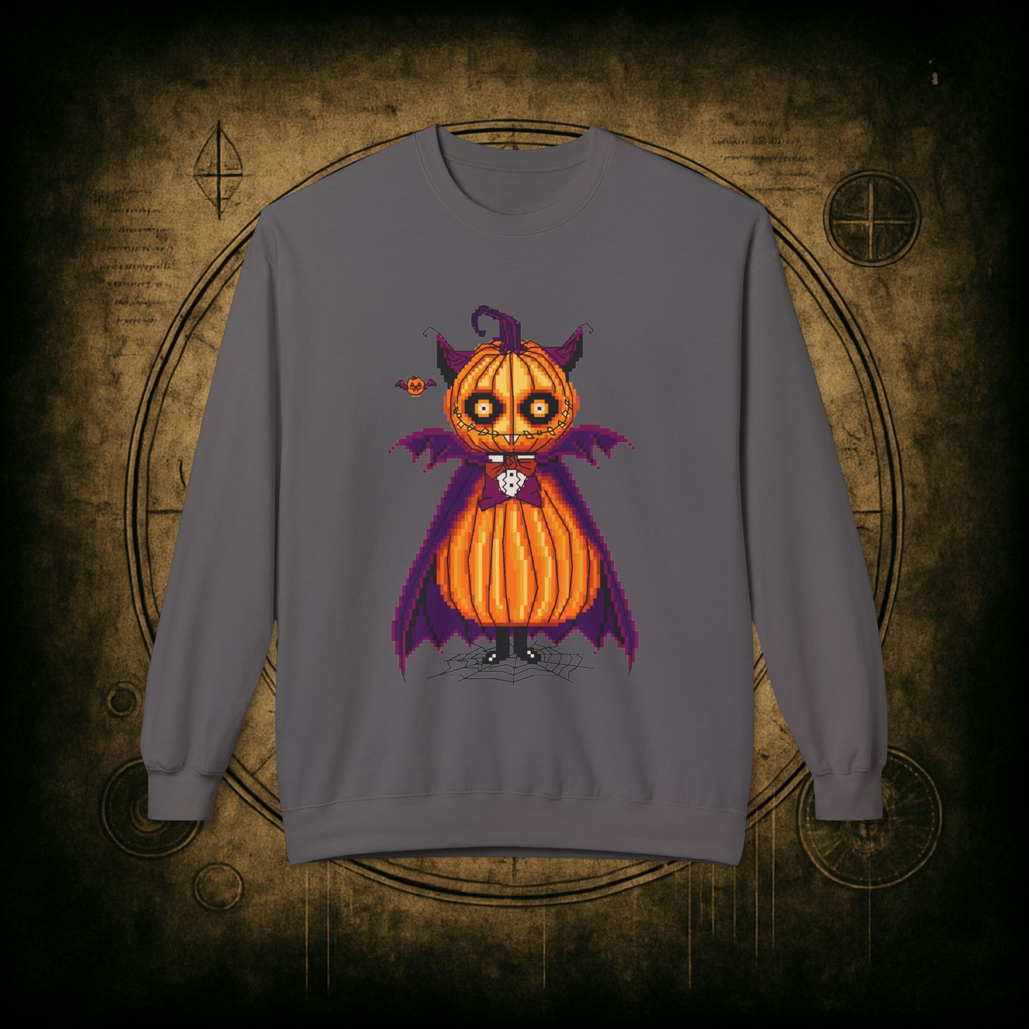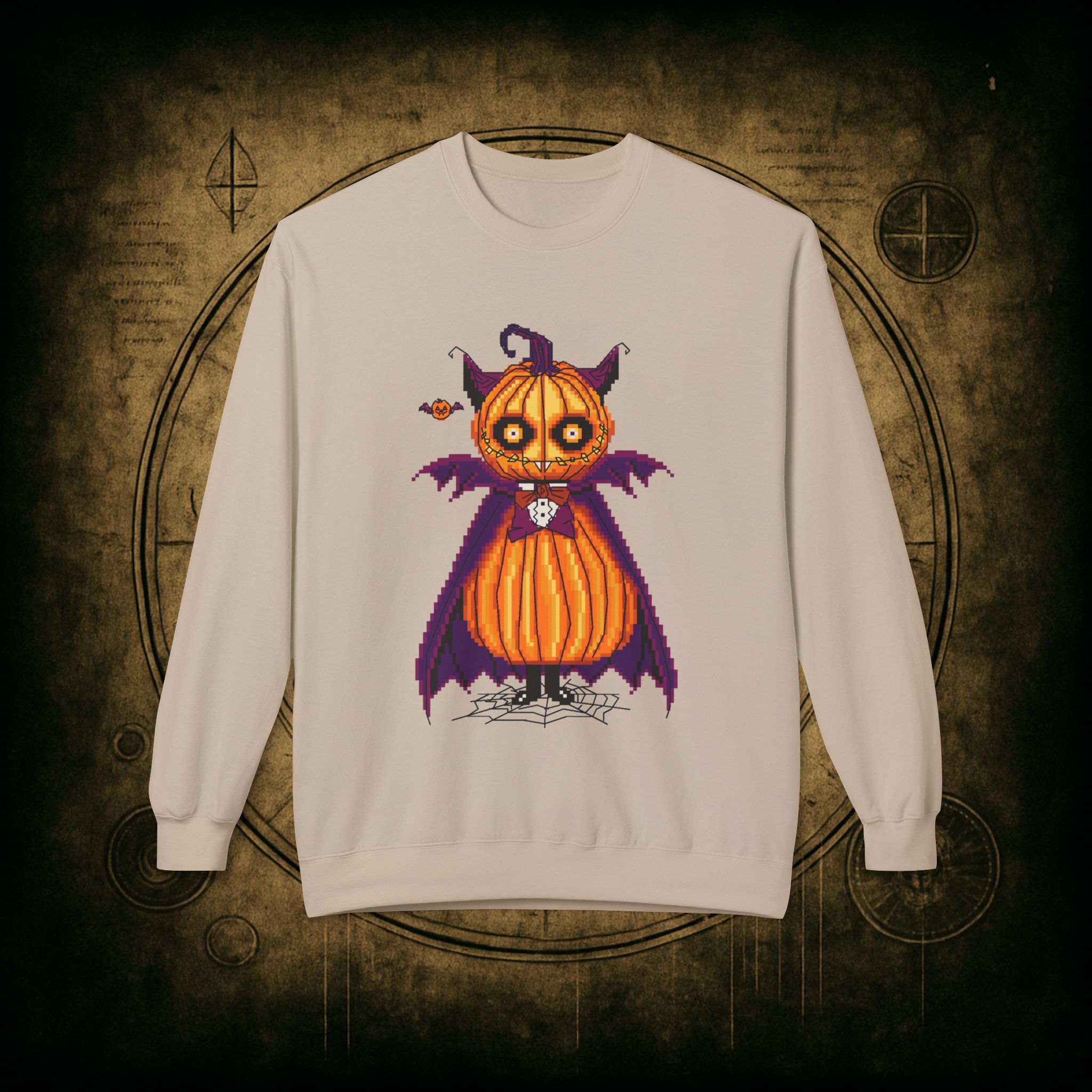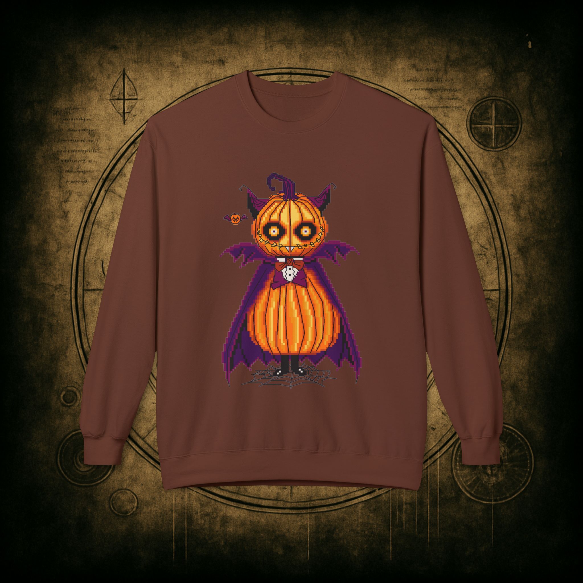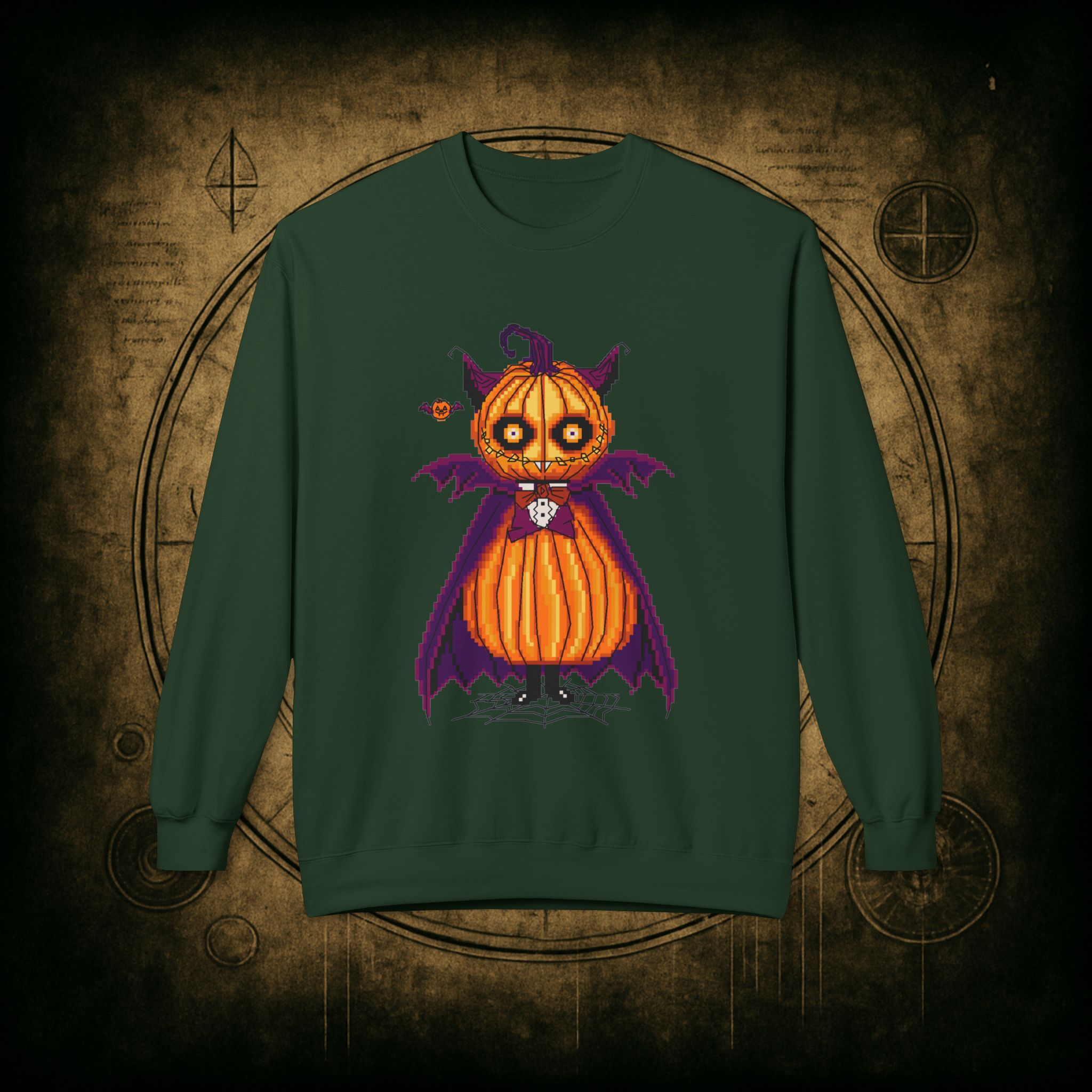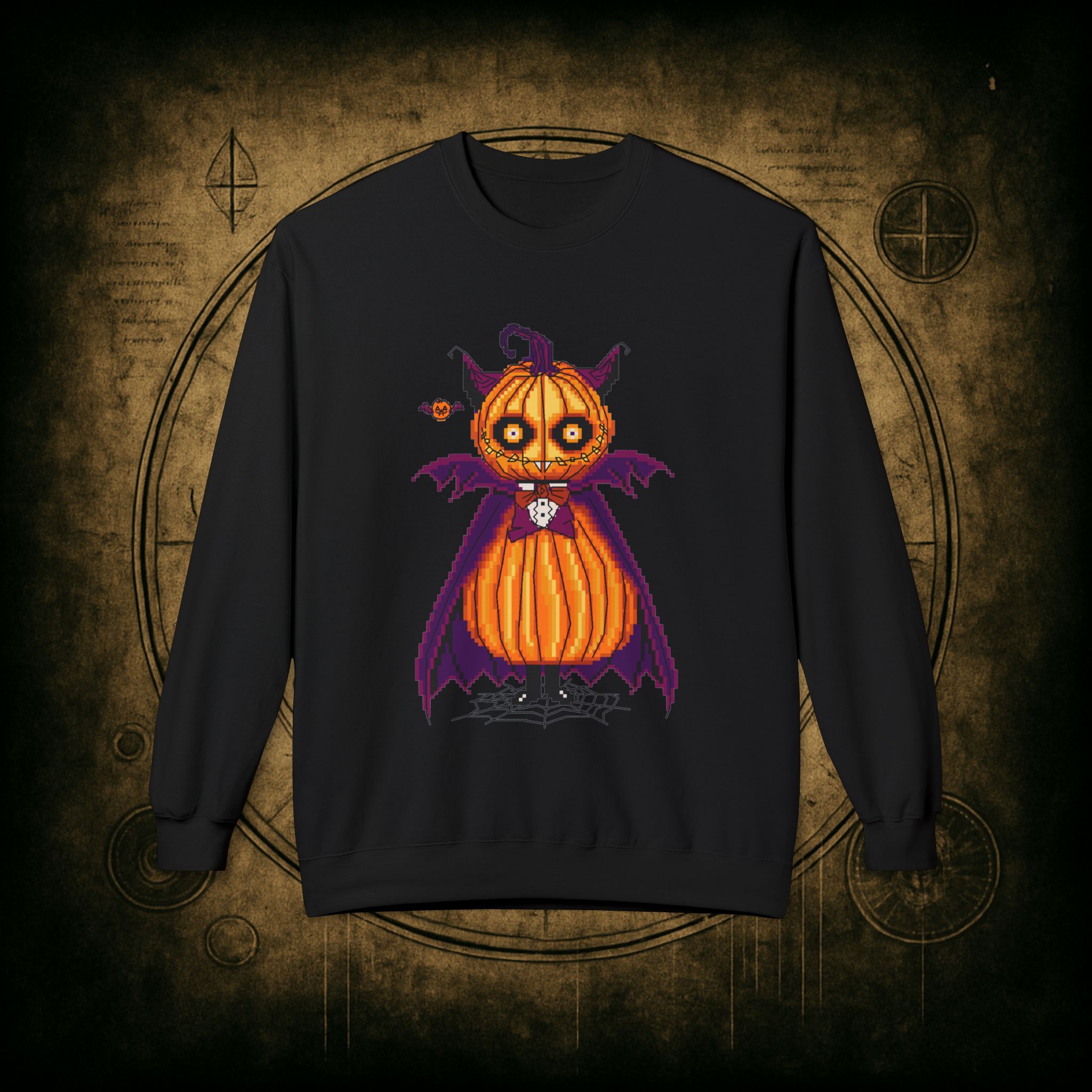 Straight out of the cursed pumpkin patch and into your gothic wardrobe comes Count Pumpcula, our favorite seed-sipping, fang-flashing squash lord. With pixel-perfect retro vibes and eyes that say “I vant to stitch your soul,” this cape-swirling creeper is ready for spooky season all year long.