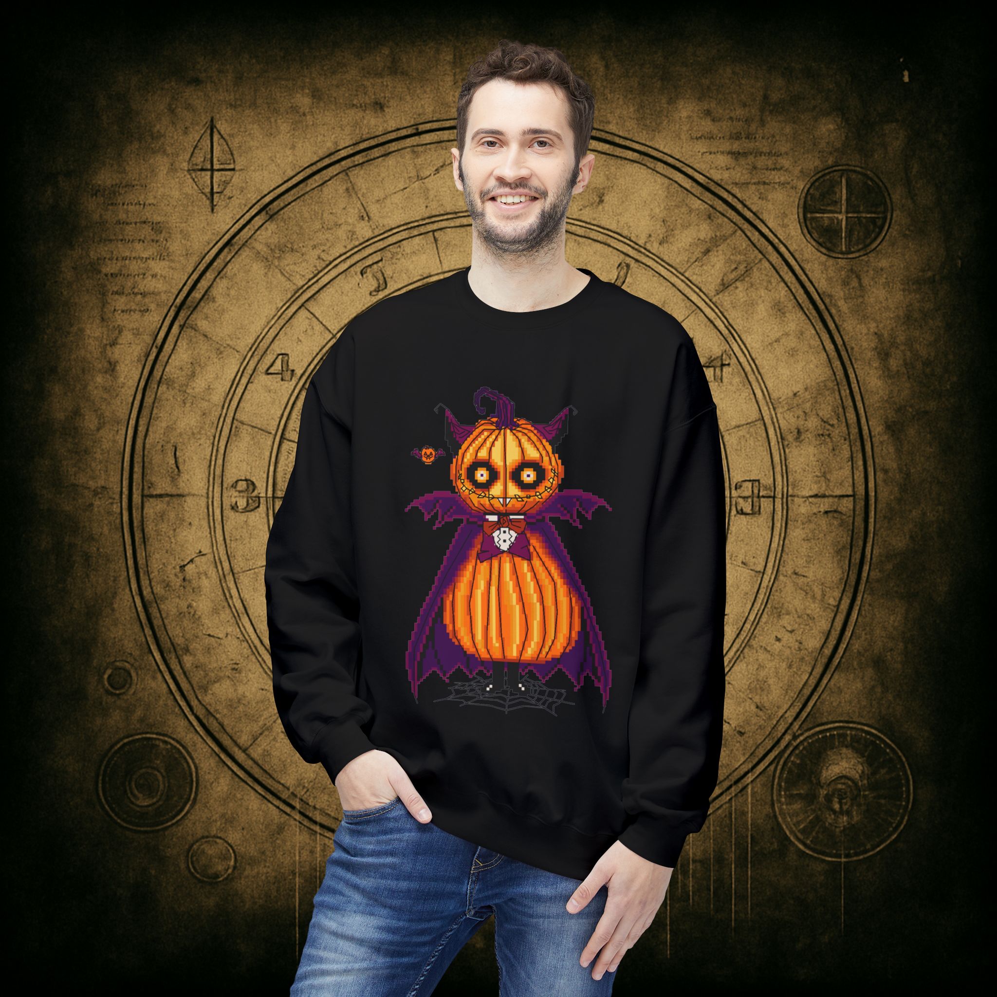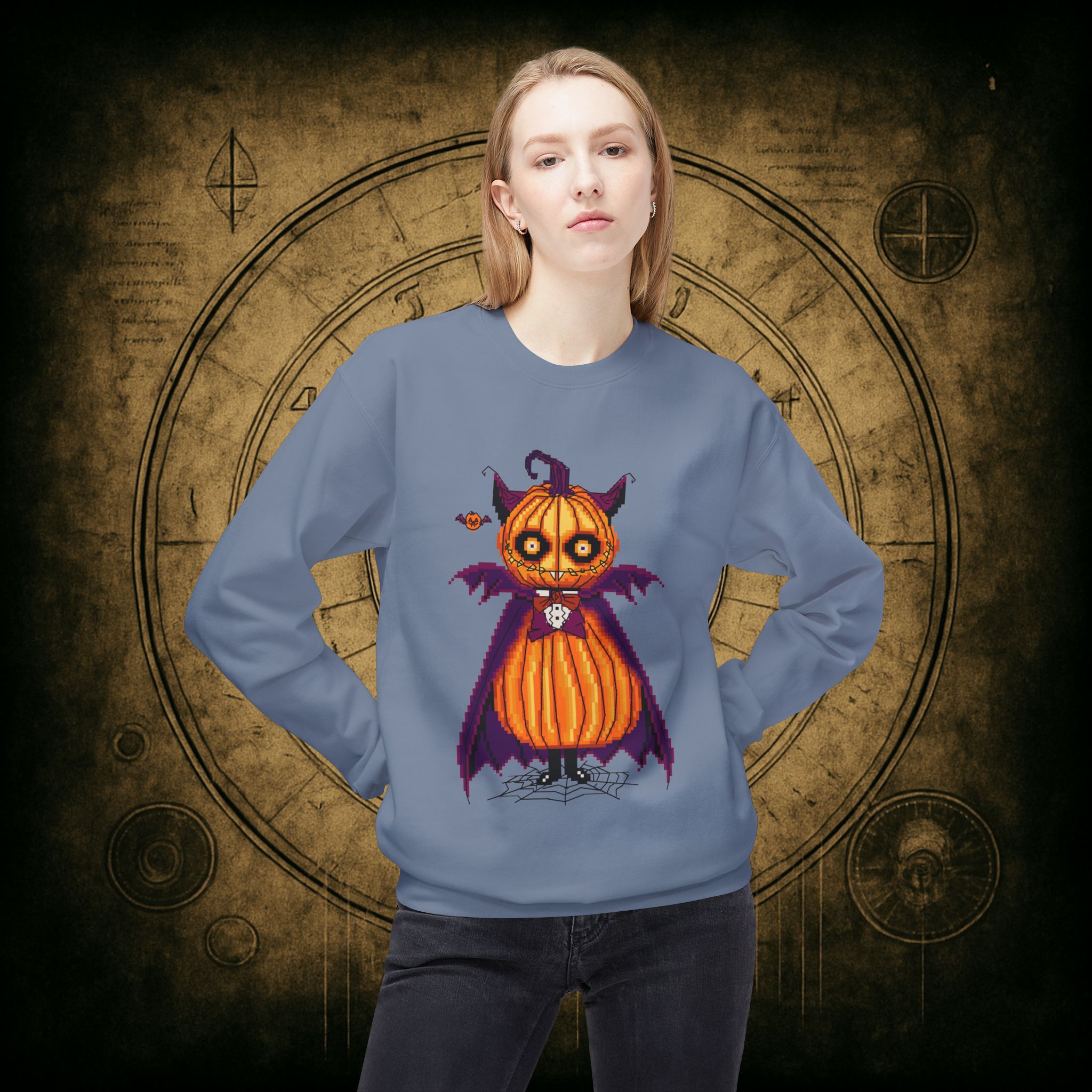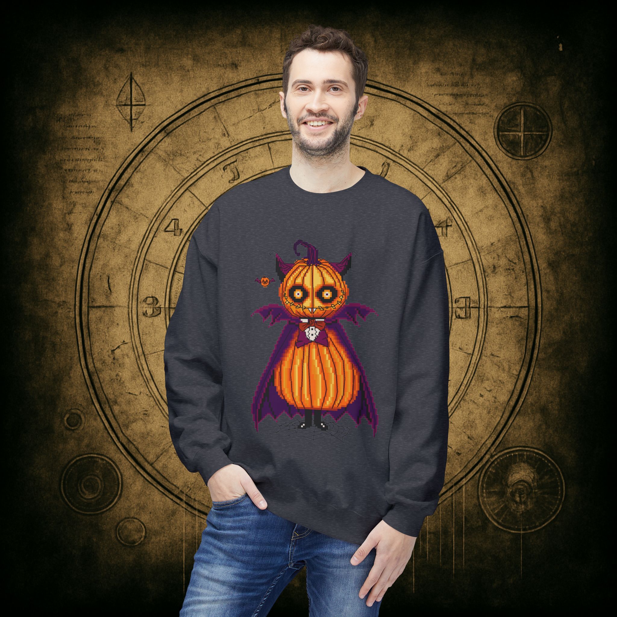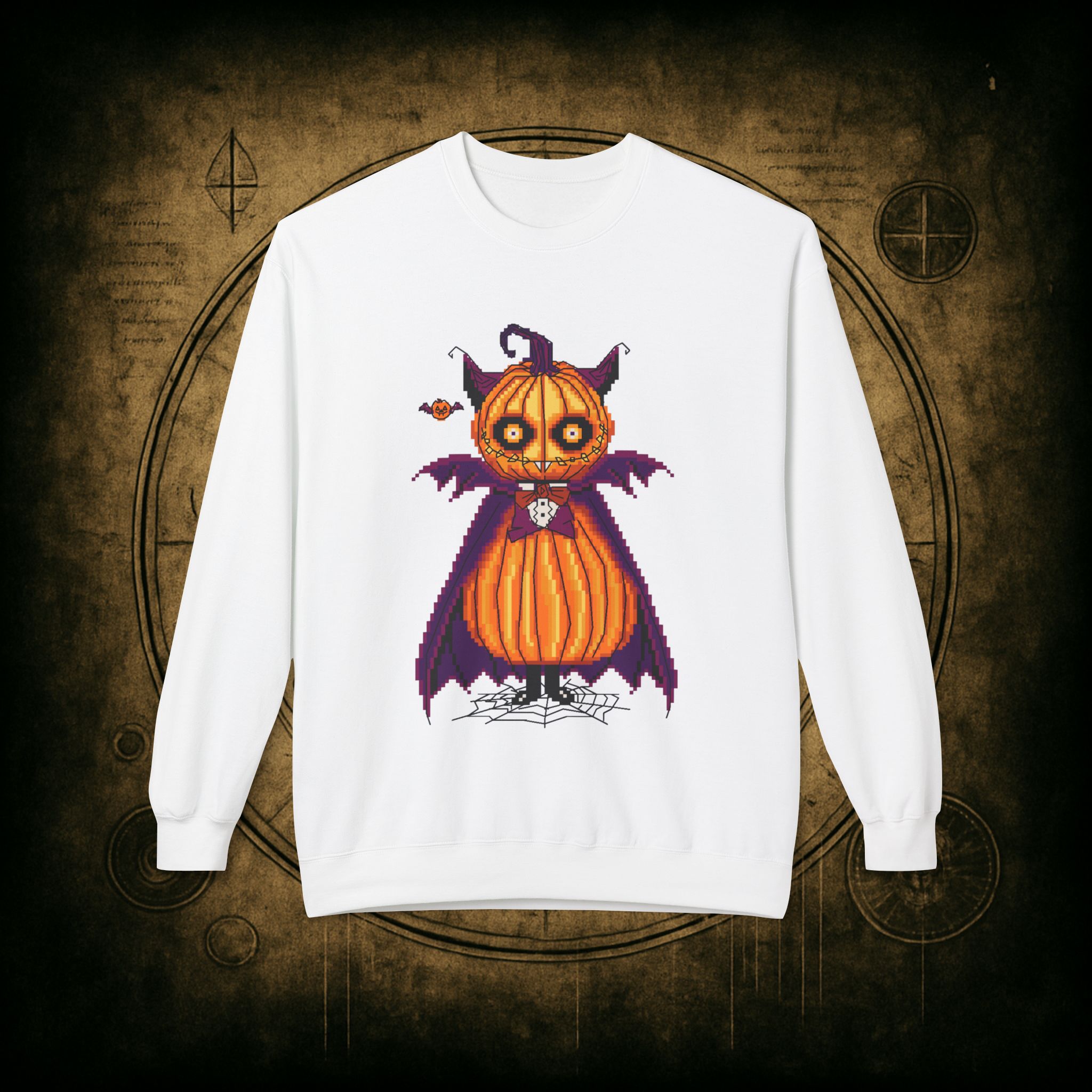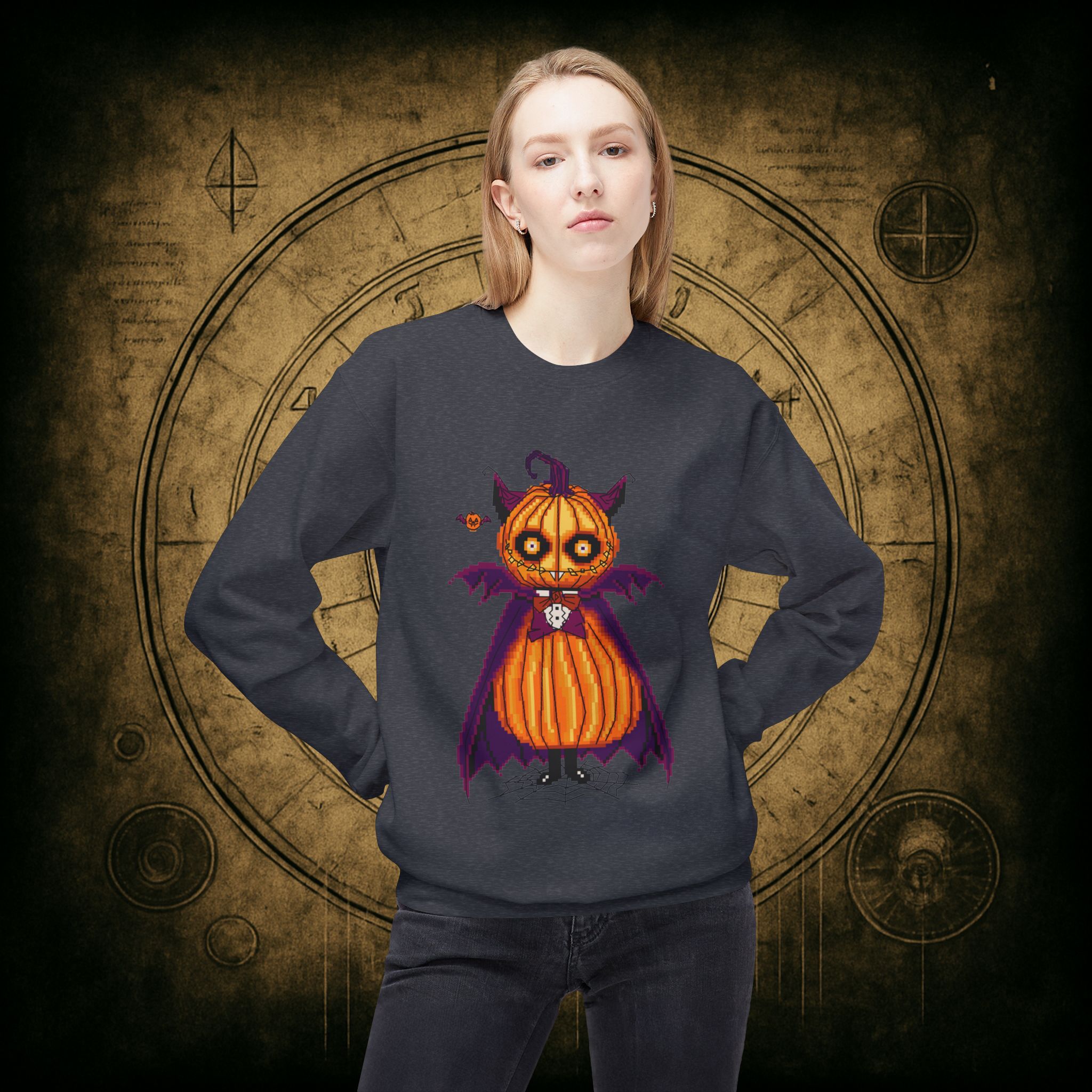 Straight out of the cursed pumpkin patch and into your gothic wardrobe comes Count Pumpcula, our favorite seed-sipping, fang-flashing squash lord. With pixel-perfect retro vibes and eyes that say “I vant to stitch your soul,” this cape-swirling creeper is ready for spooky season all year long.