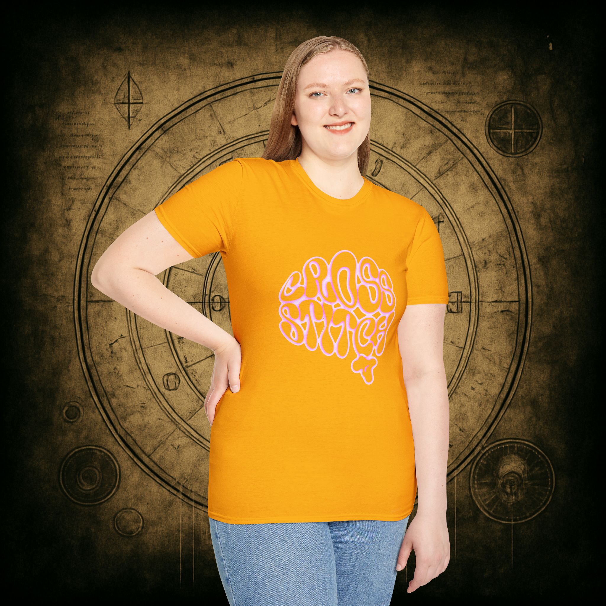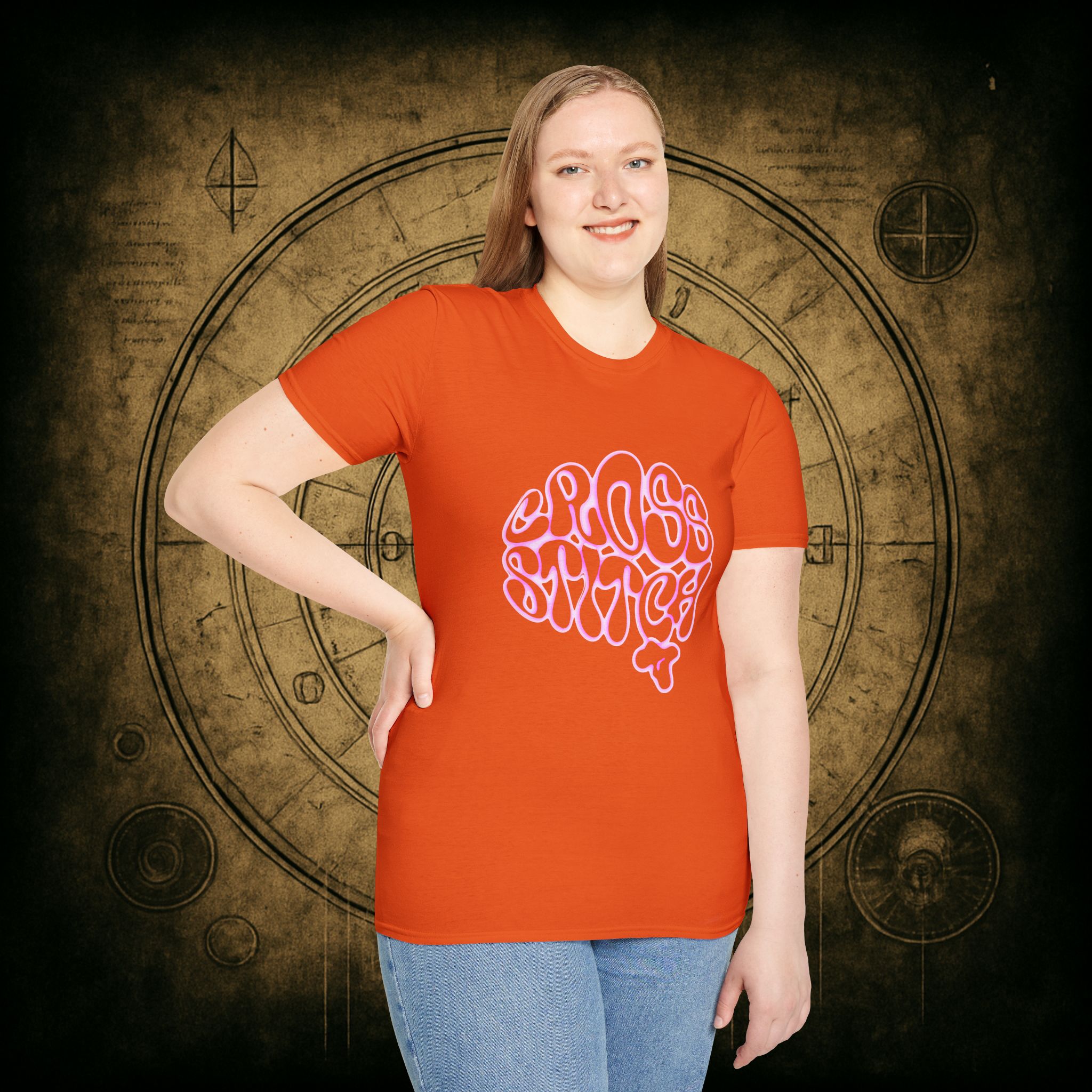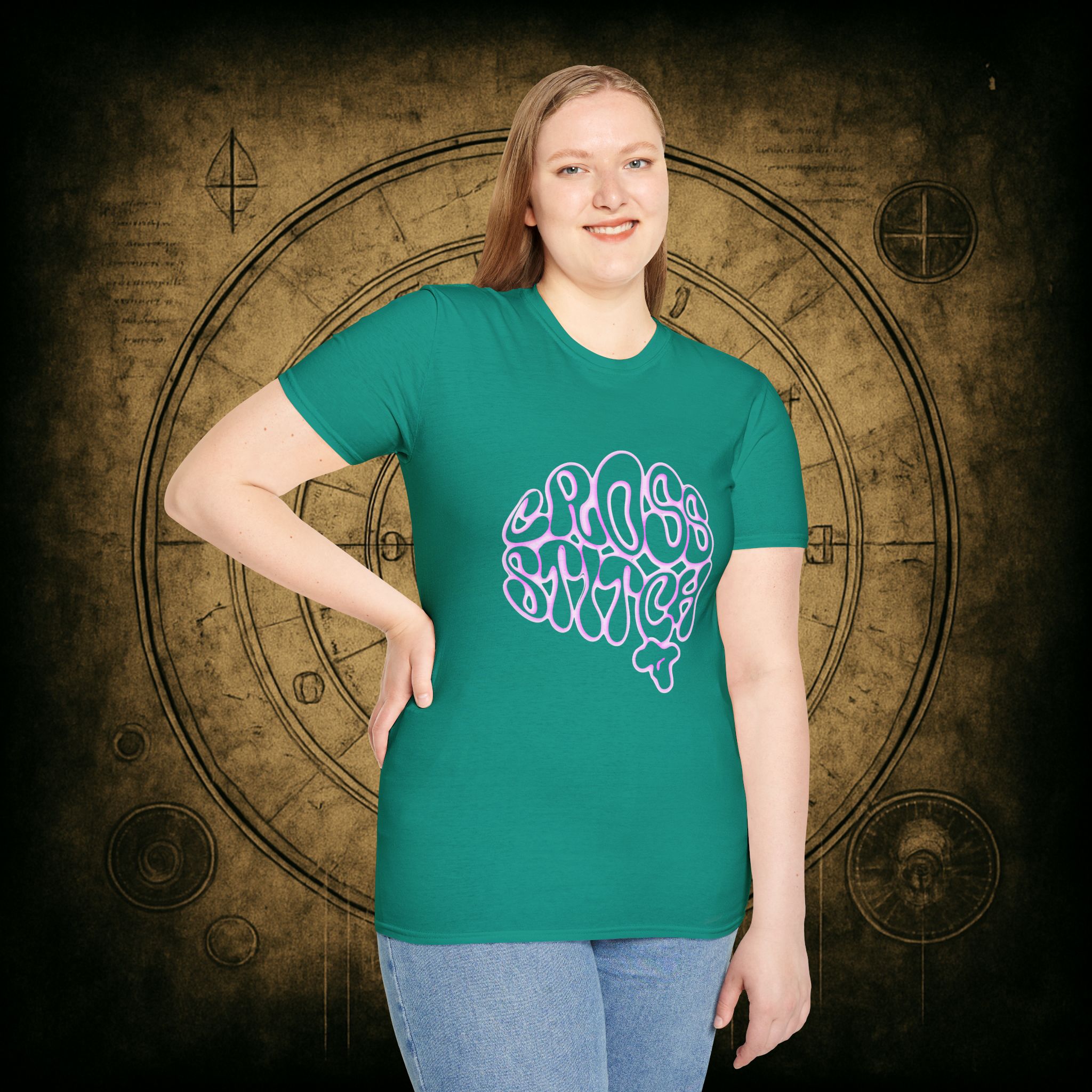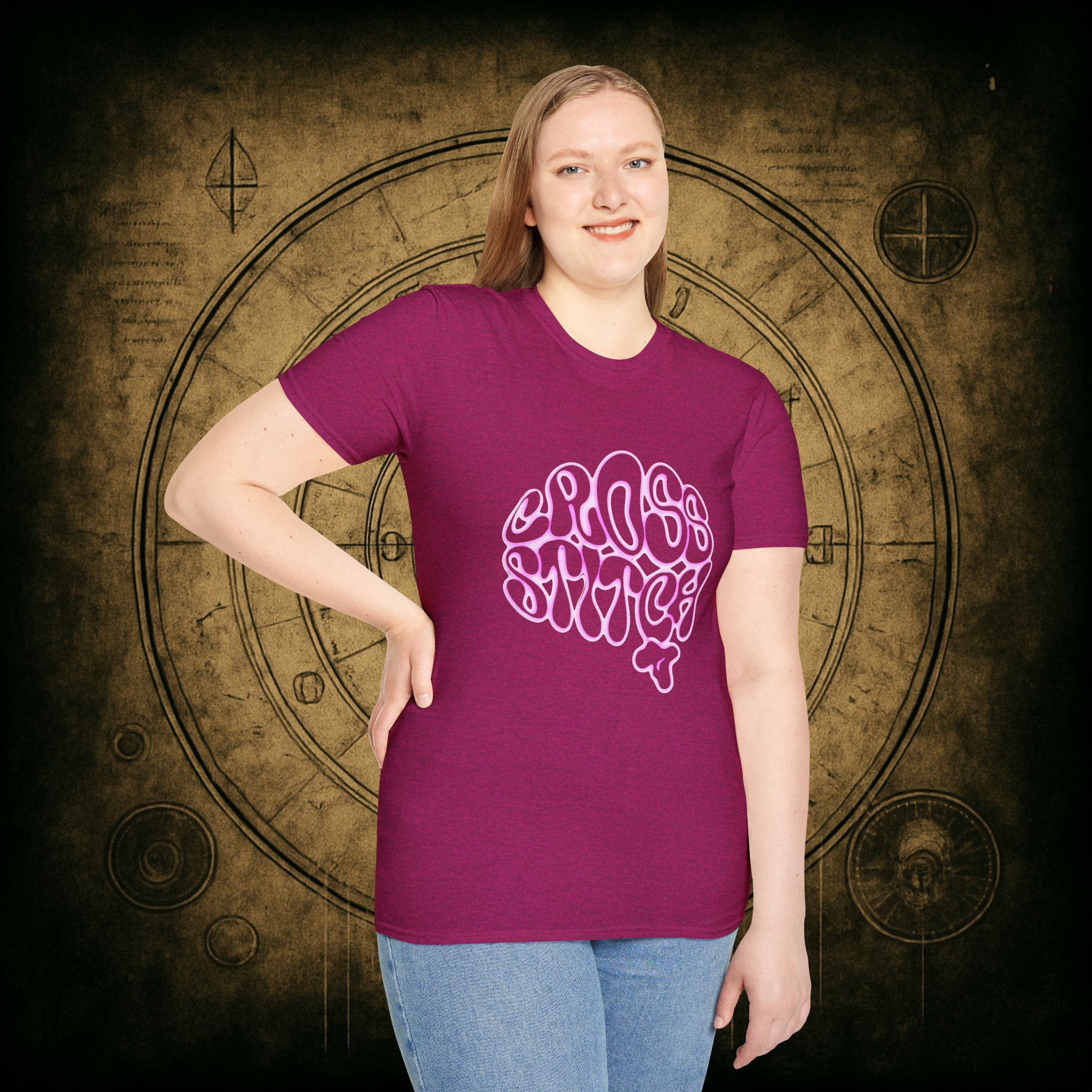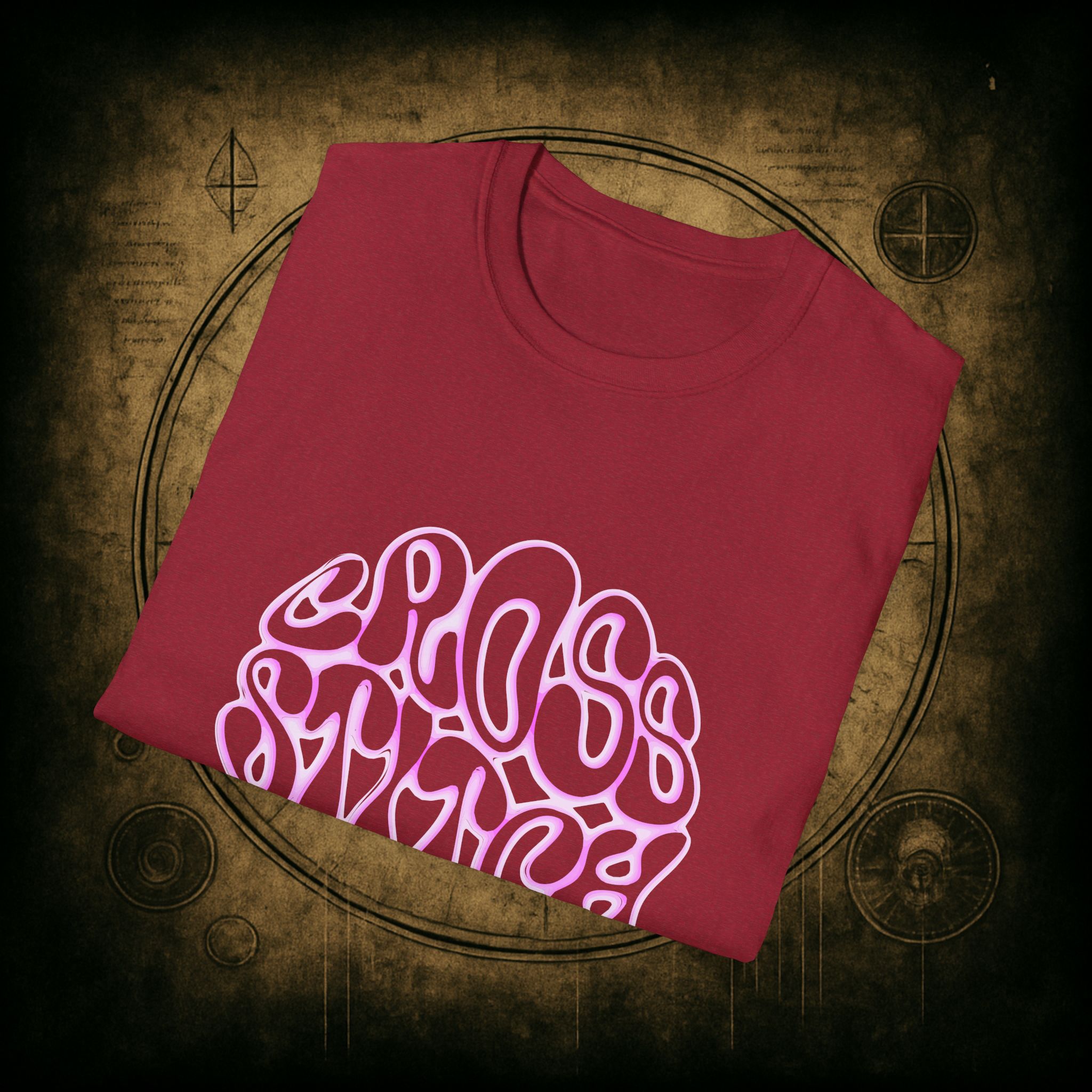 Shaped like a brain, filled with the words we live by, and glowing with deliciously witchy bubblegum energy, this tee is a love letter to the overthinkers, the thread counters, and the beautiful chaos of craft-obsessed minds.
