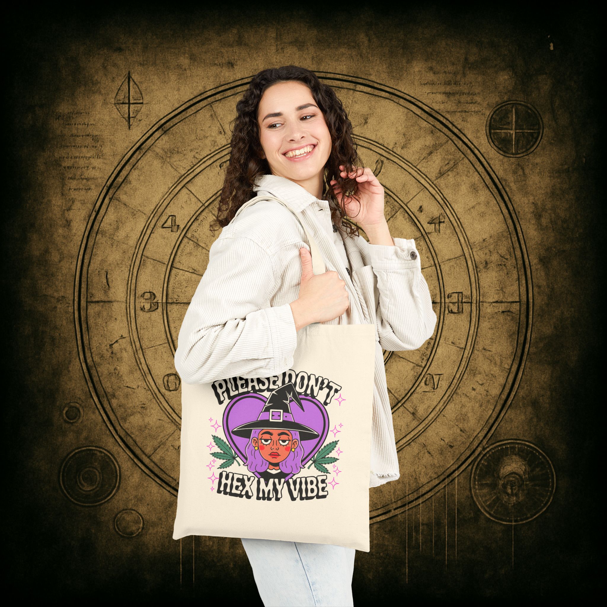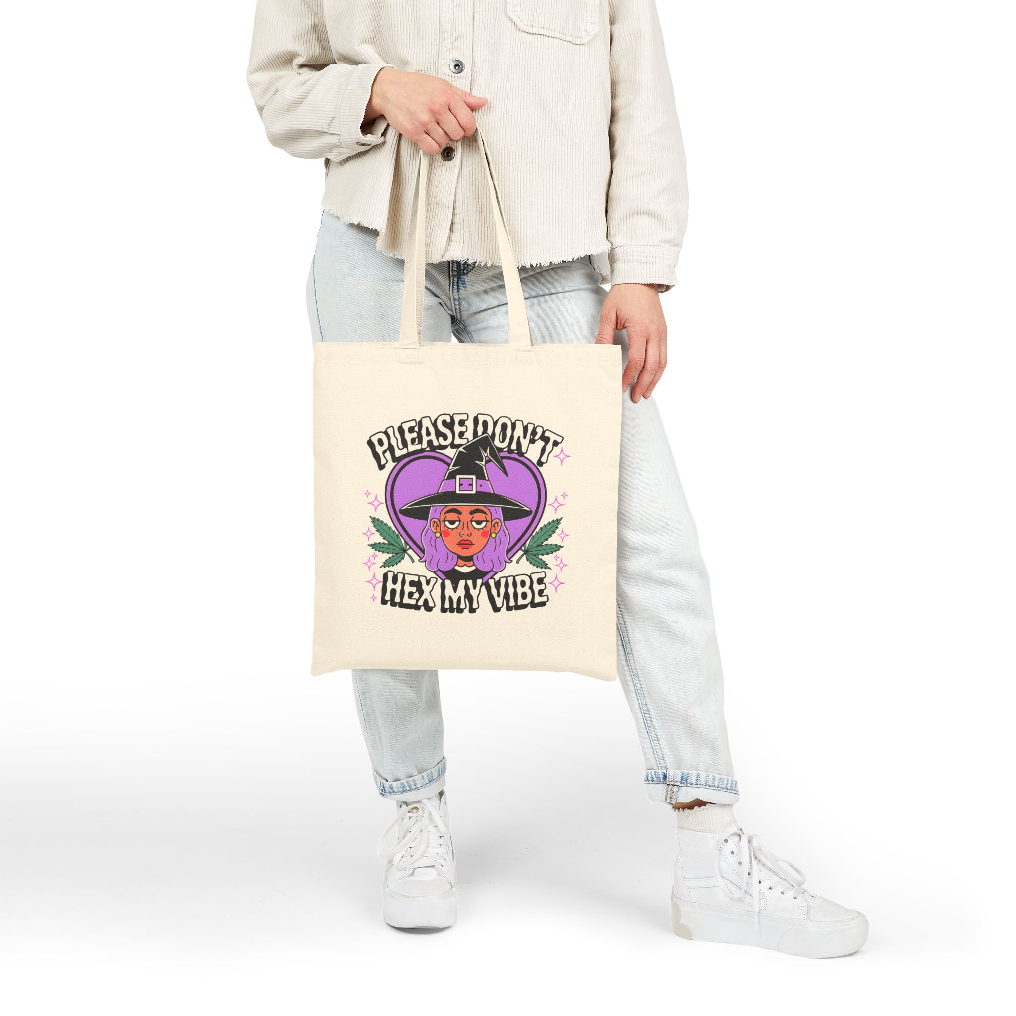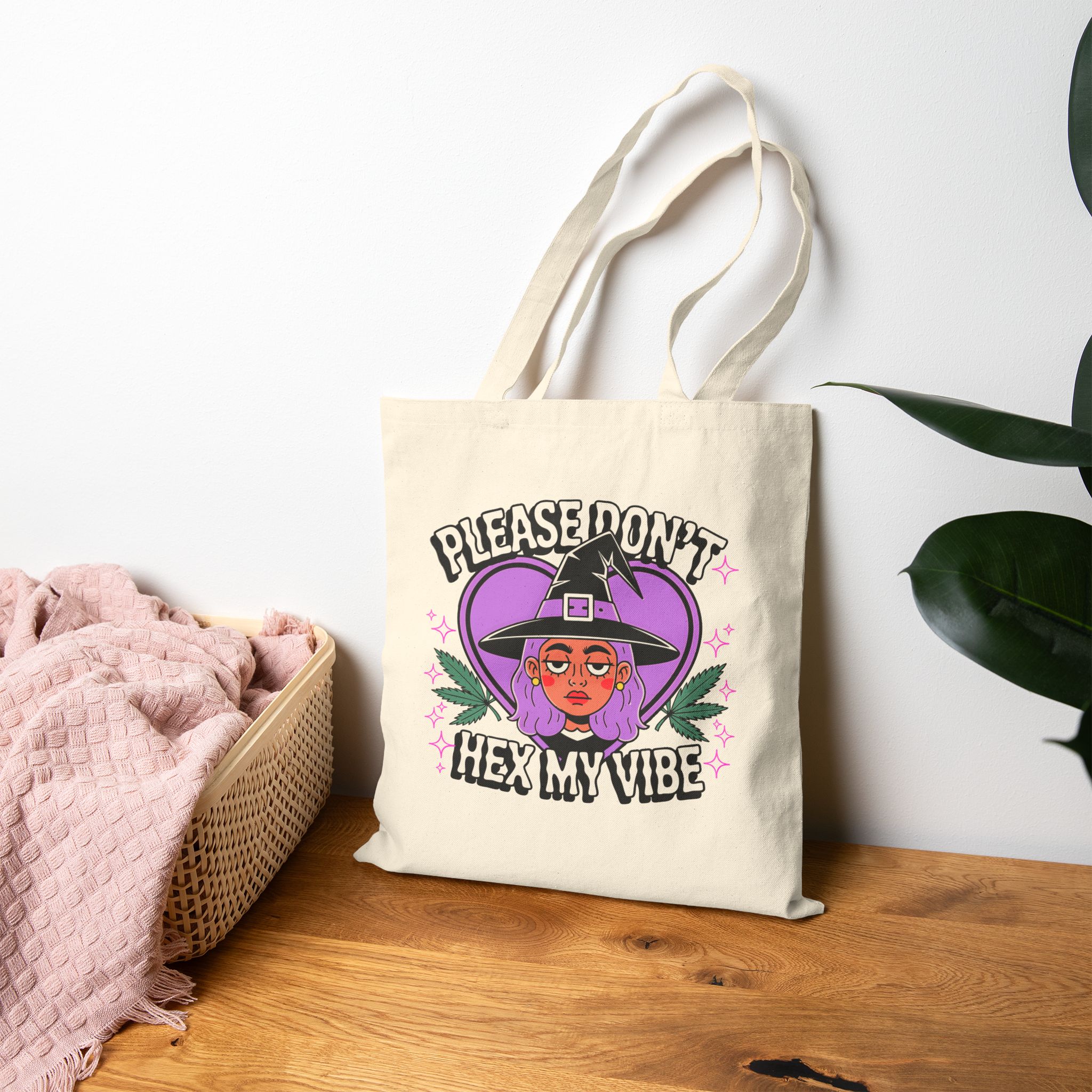 For the witch who’s just trying to vibe in peace, the Don’t Hex My Vibe Tote Bag is your spiritual buffer and sass shield in one. With a pastel-haired enchantress giving major “don’t test me” energy, this charming carryall deflects bad juju, side-eyes, and unsolicited opinions with ease. Whether you’re off to the apothecary, the farmer’s market, or a dramatic moonlit stroll, your aura’s protected and your snacks are packed.