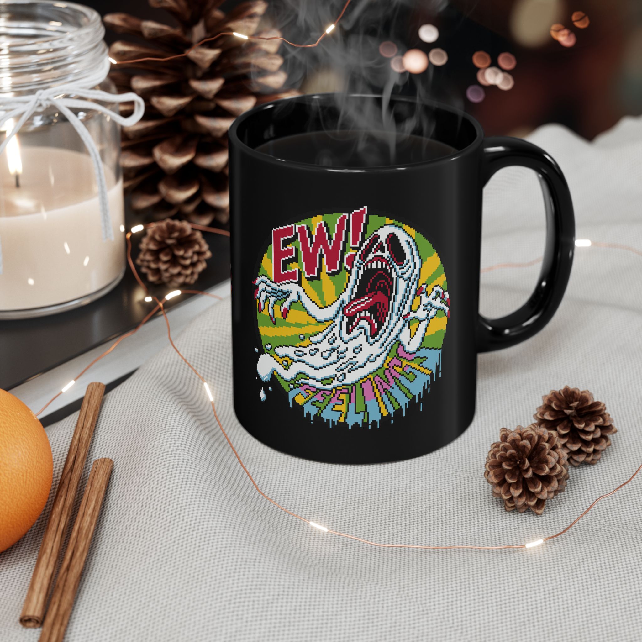 Introducing the perfect vessel for your emotional avoidance rituals. Whether you’re sipping your morning coffee or your enemies’ tears (served hot or iced), this mug is here to scream EW! FEELINGS on your behalf.