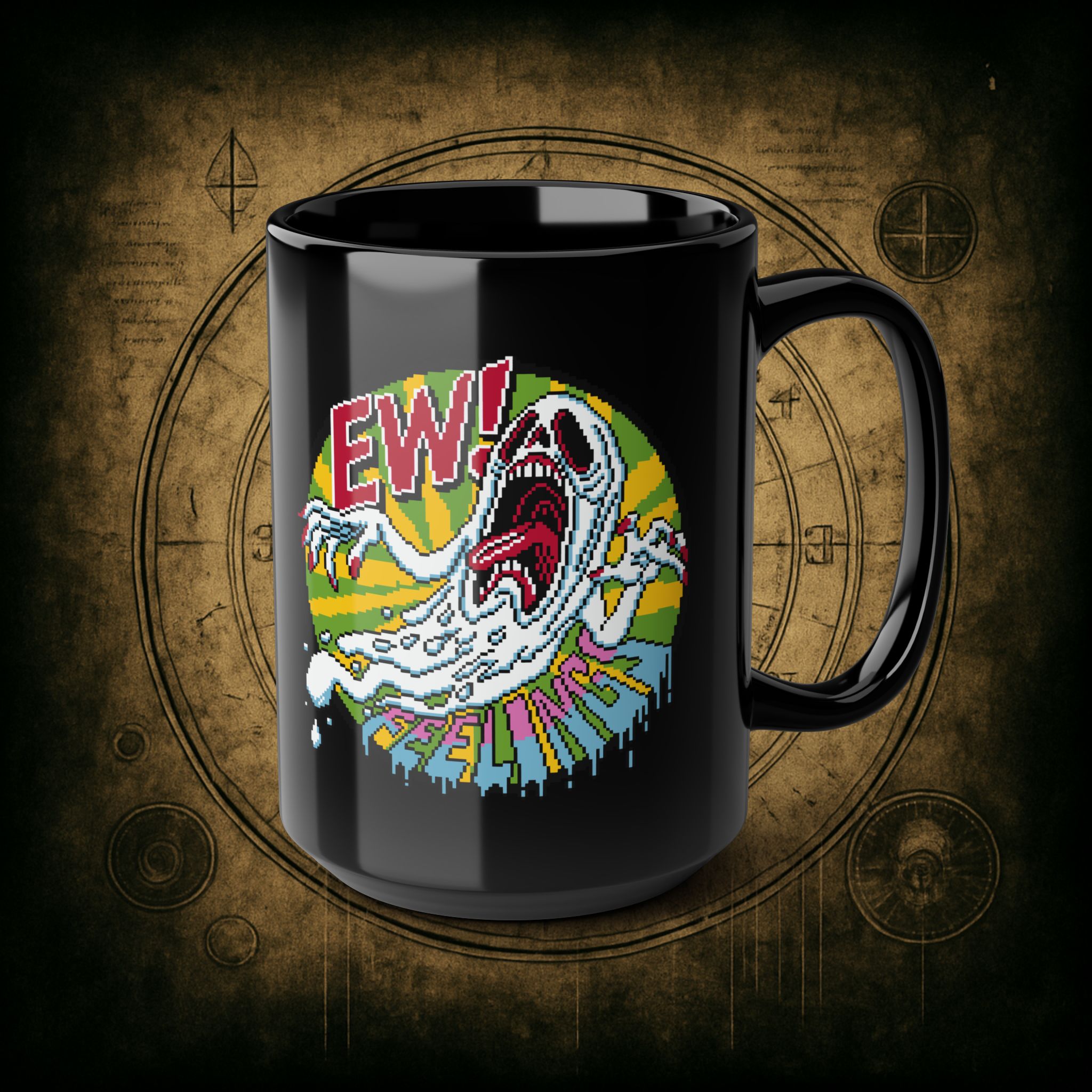 Featuring a pixelated meltdown monster mid-existential crisis, it’s a mood in mug form. Ideal for introverts, overthinkers, and anyone who’s ever texted “I’m fine” while dissociating into space.