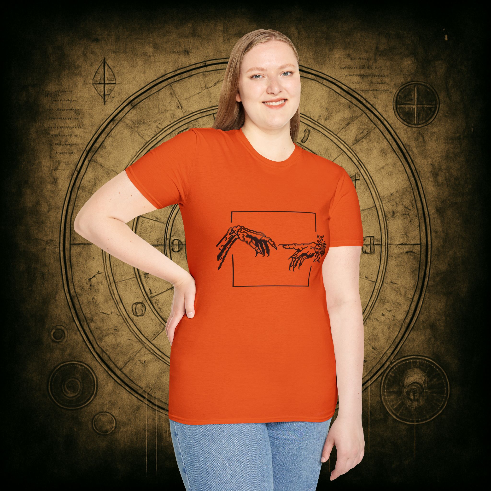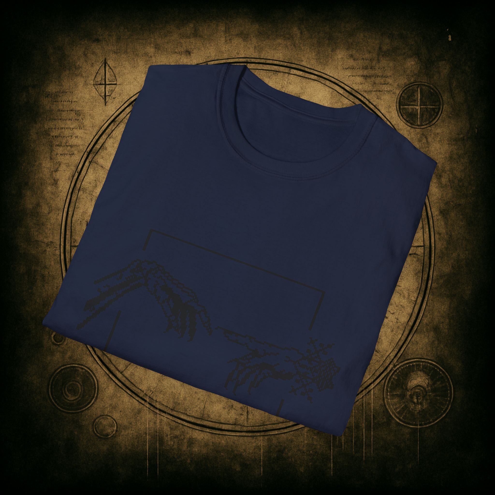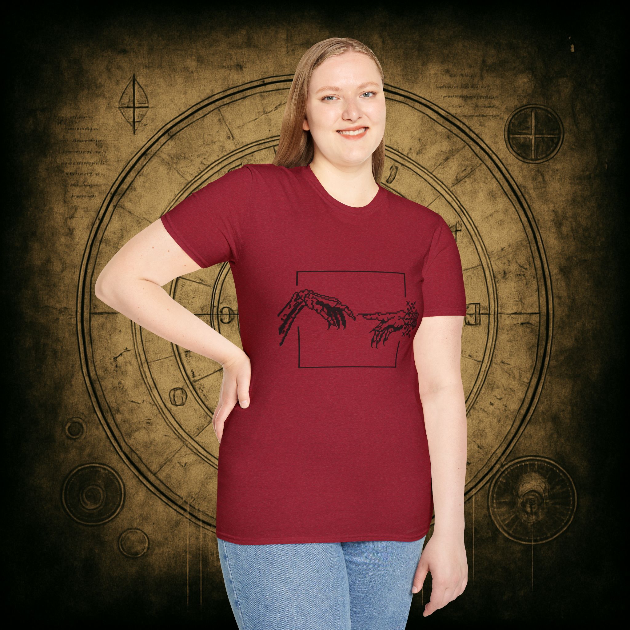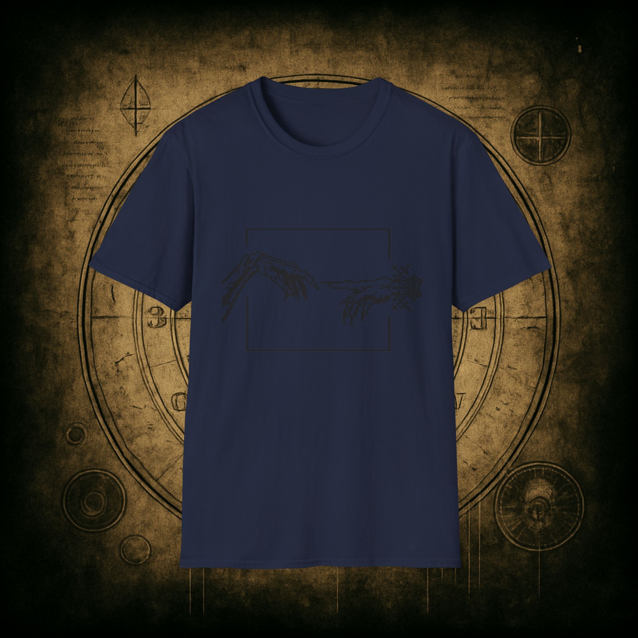 The Creation of Lilith Unisex T-shirt, inspired from creation of adam painting with a gothic twist. This t-shirt gives off a dark and mysterious vibe, perfect for those who love the occult and artistic interpretations. Ideal for Halloween, witchcraft enthusiasts, and those who appreciate unique and edgy fashion.