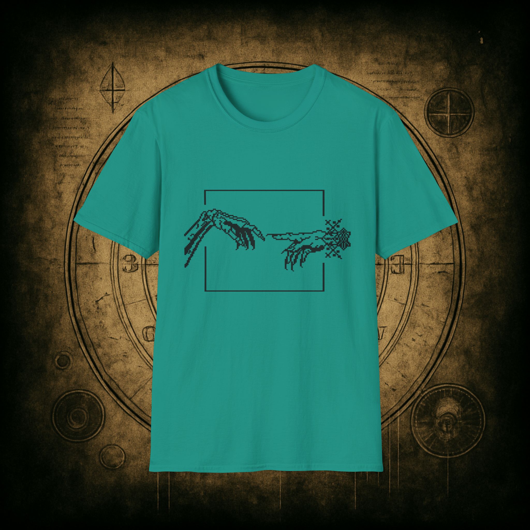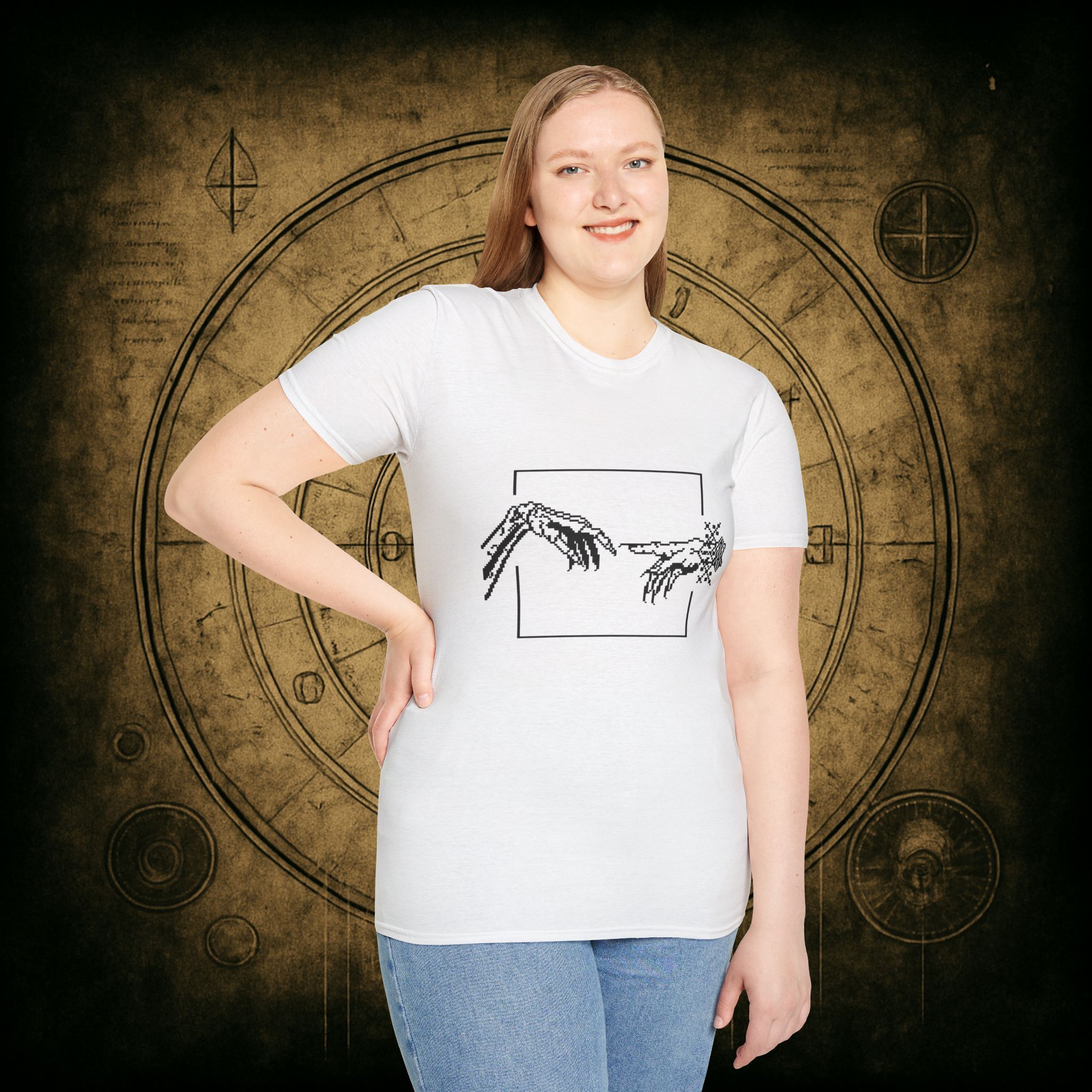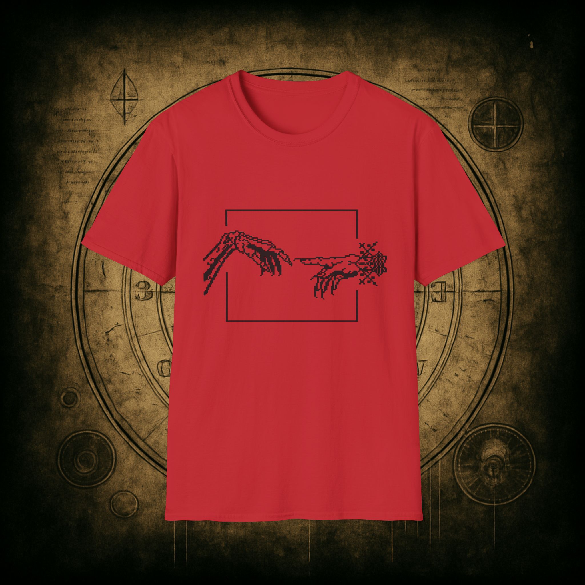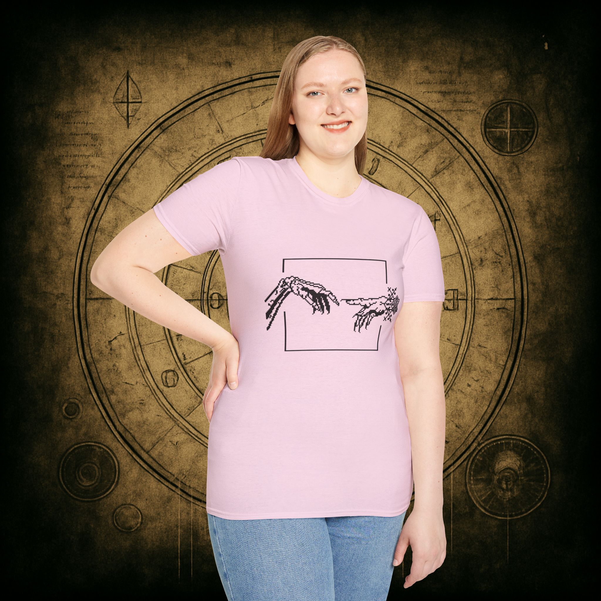 The Creation of Lilith Unisex T-shirt, inspired from creation of adam painting with a gothic twist. This t-shirt gives off a dark and mysterious vibe, perfect for those who love the occult and artistic interpretations. Ideal for Halloween, witchcraft enthusiasts, and those who appreciate unique and edgy fashion.