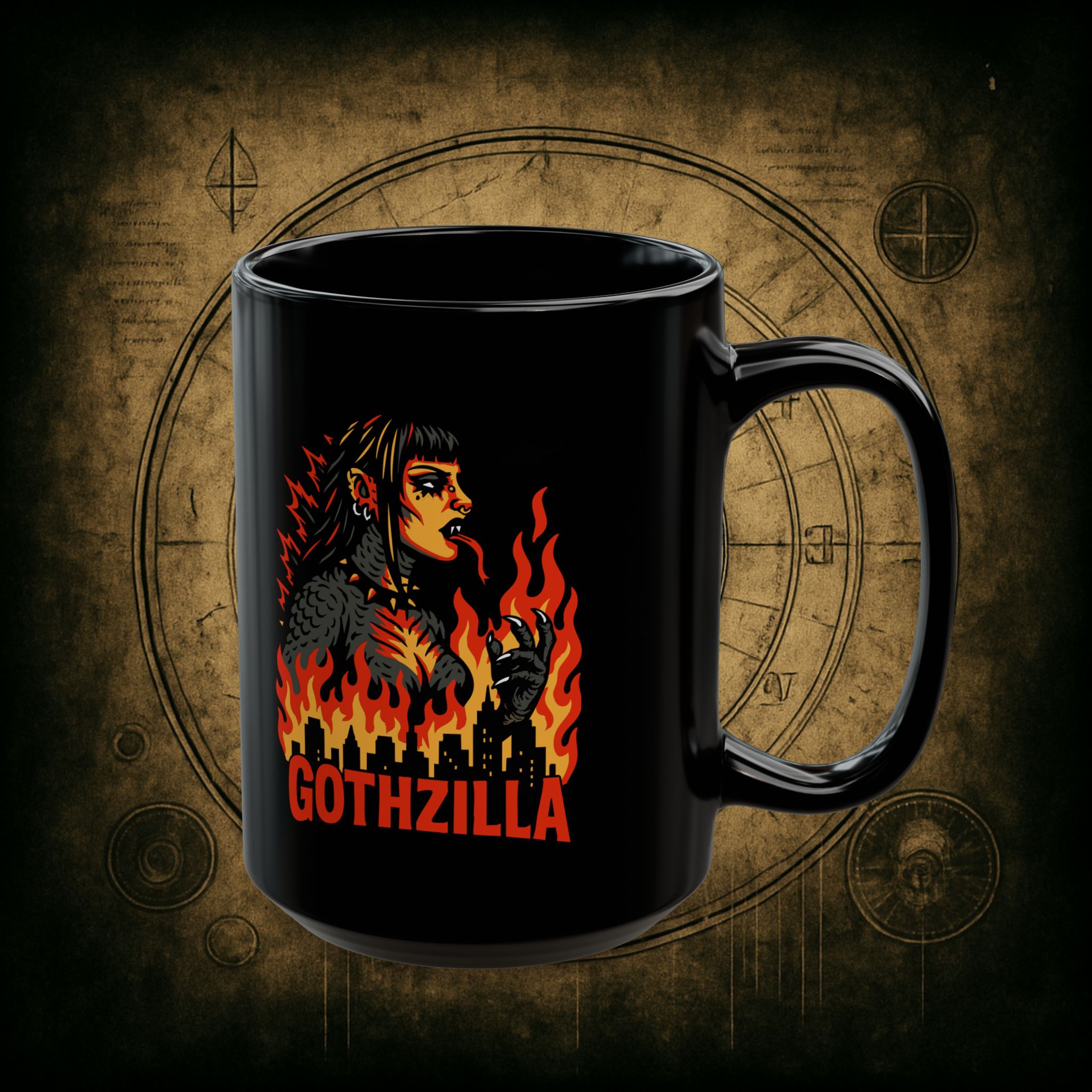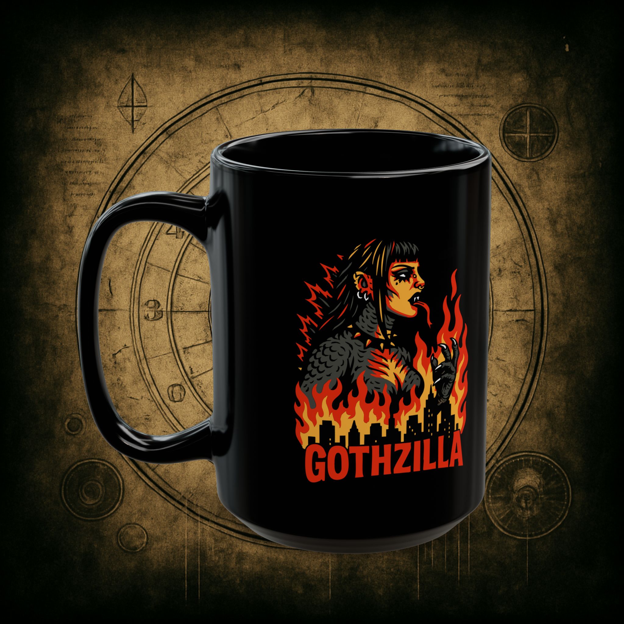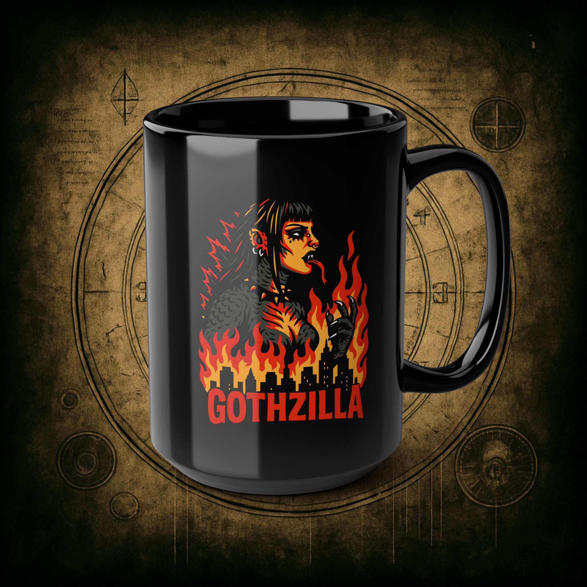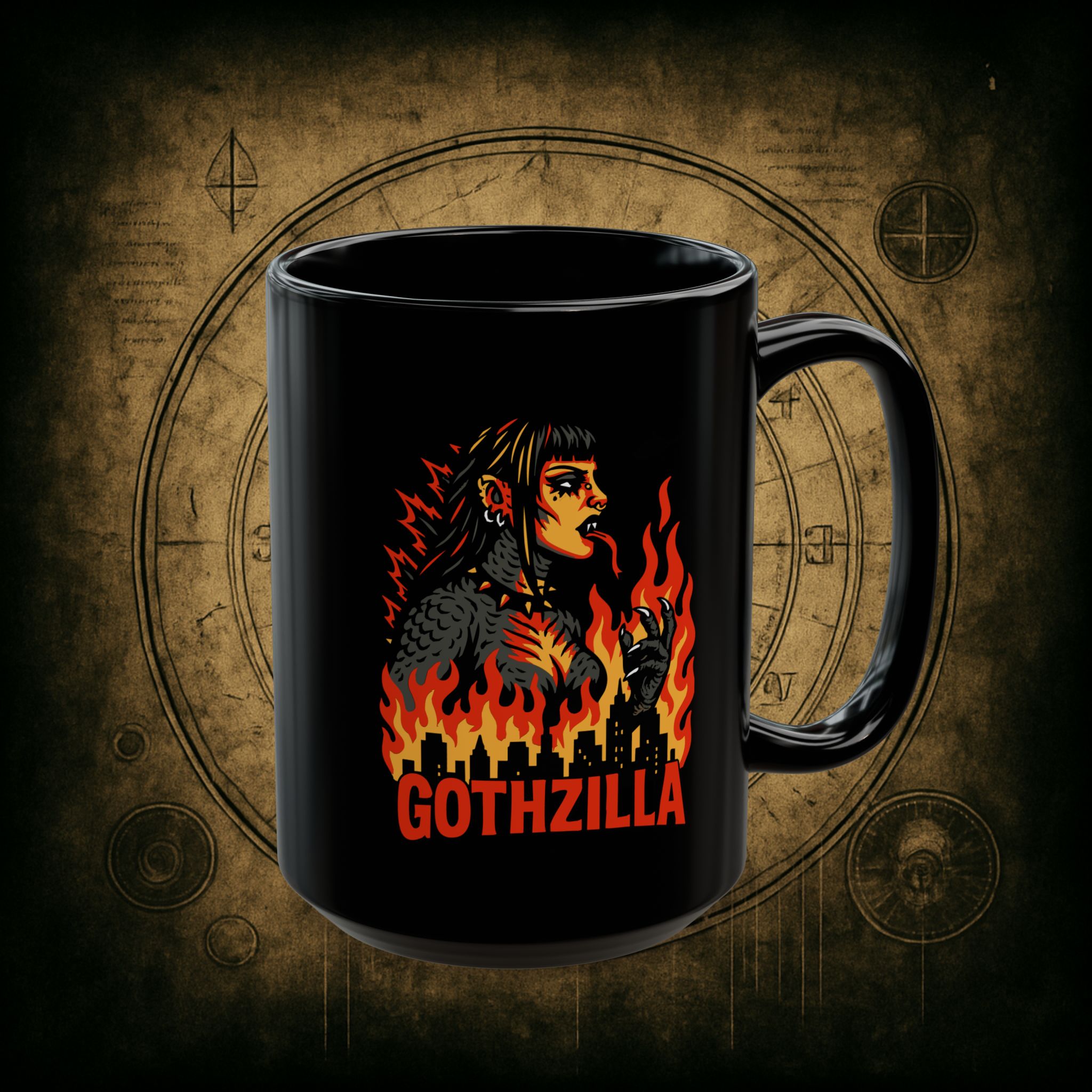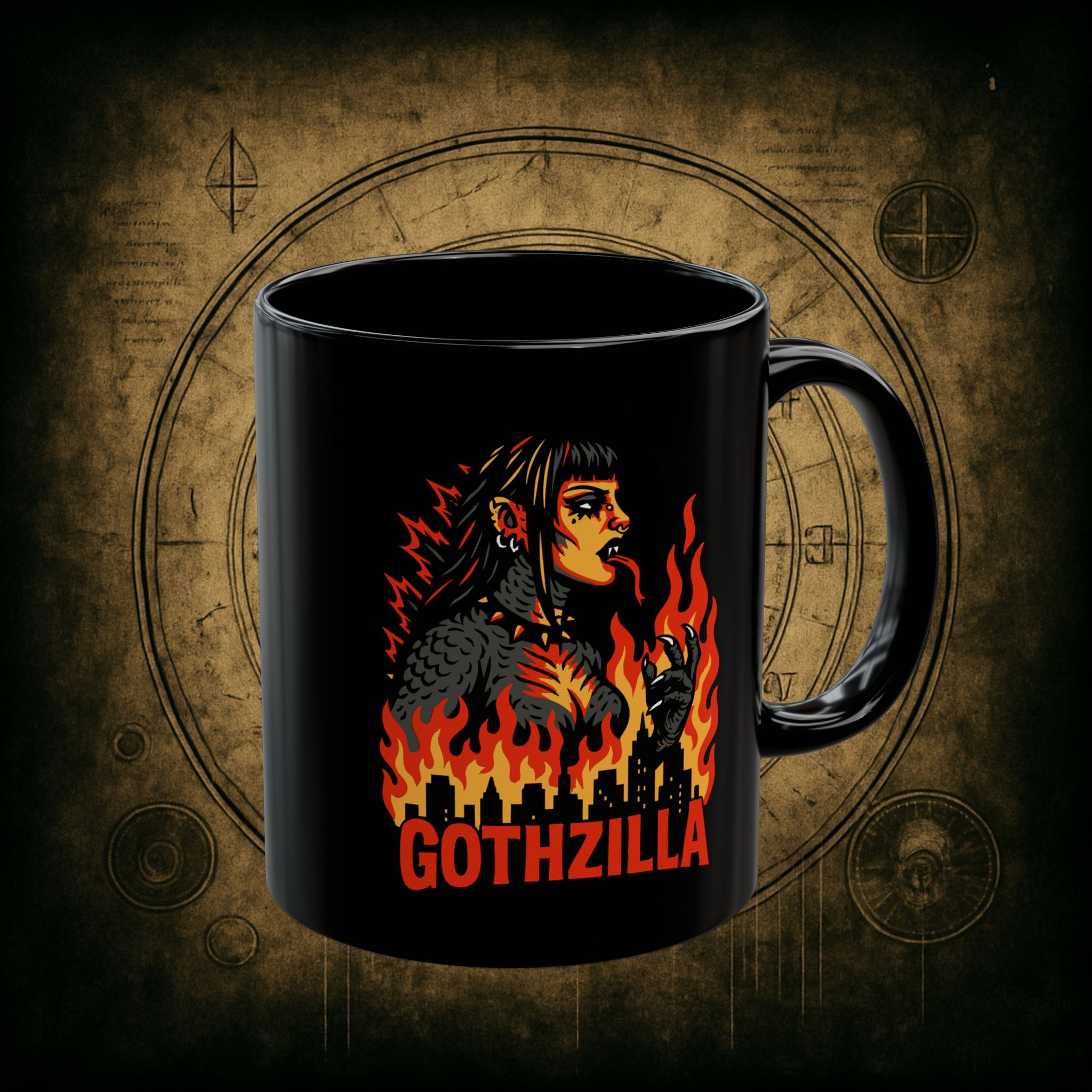 She’s beauty, she’s grace, she’ll melt your city with her flame-soaked face. This version of Gothzilla trades in her shadows for firelight and chaos, and she’s still not taking anyone’s crap before coffee.