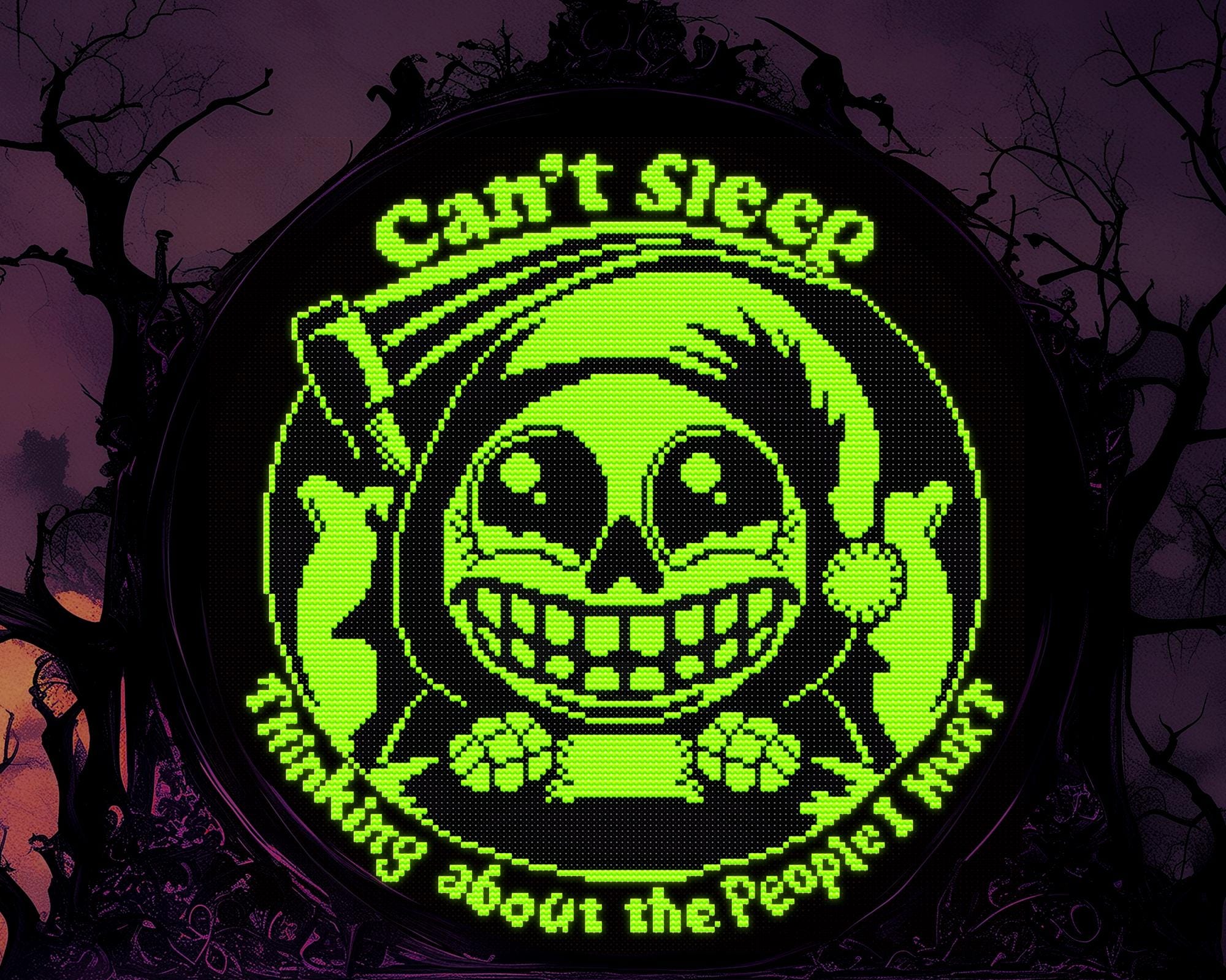 Put it above your bed, in your occult cross stitch corner, or gift it to that one friend who has definitely thought, “Oops, my bad” at least once in their life. Because if you’re going to be haunted, you might as well have fun with it. 🖤