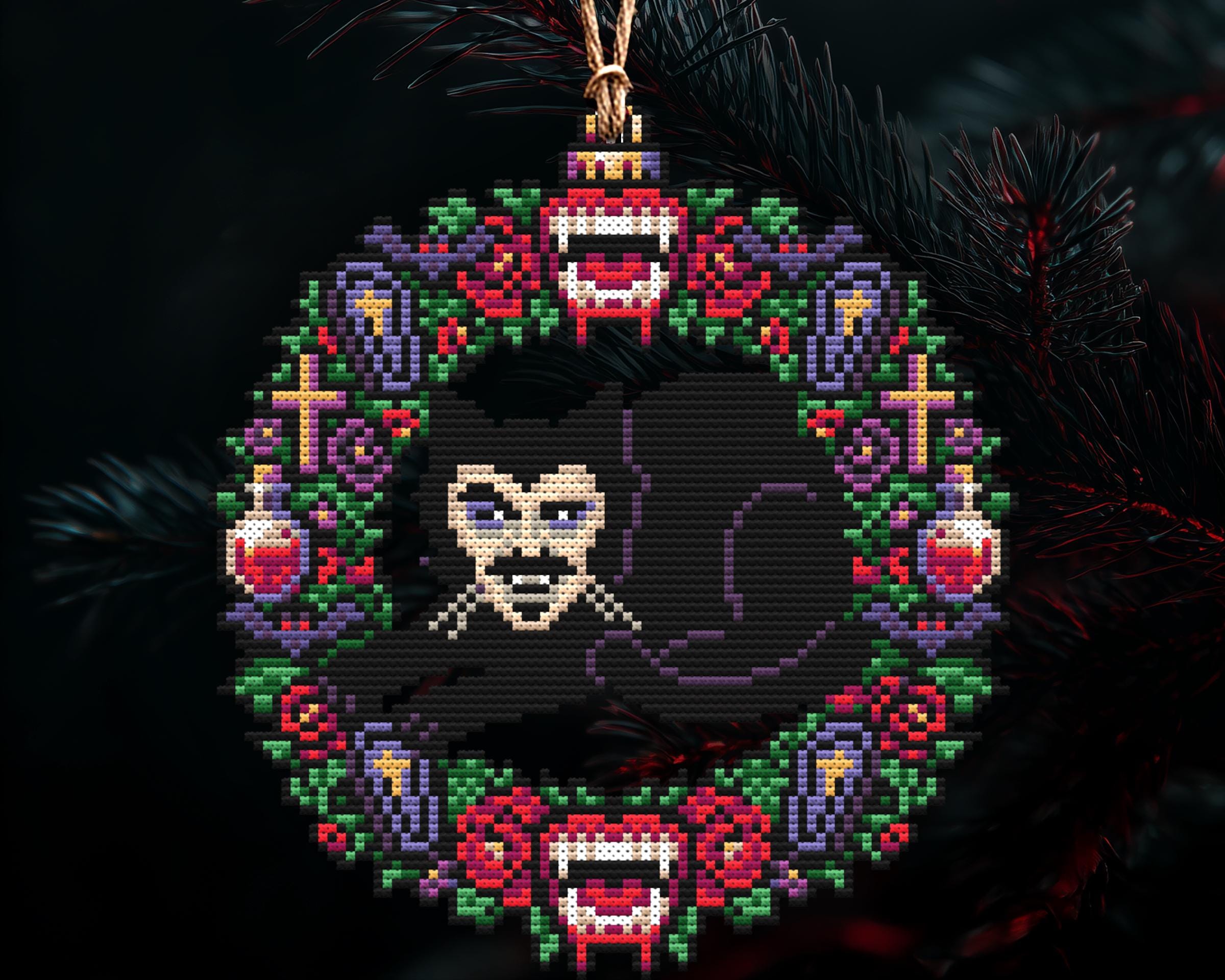 This WWDITS inspired gothic cross stitch is basically a tiny holiday hostage situation disguised as Halloween cross stitch. If you like your wreaths with fangs, this spooky cross stitch doubles as a vampire cross stitch. It stitches up like a bite-sized modern cross stitch that still behaves like a cursed Christmas Ornament. The vibe is equal parts witchy cross stitch and occult cross stitch, like someone left their spellbook on the tree overnight. Every bead of attitude screams creepy cross stitch while quietly plotting horror cross stitch levels of drama. Keep it moody with dark cross stitch energy and a pinch of Wiccan cross stitch mischief. And yes, it plays nice with your stash, because xstitch chaos should be the fun kind.