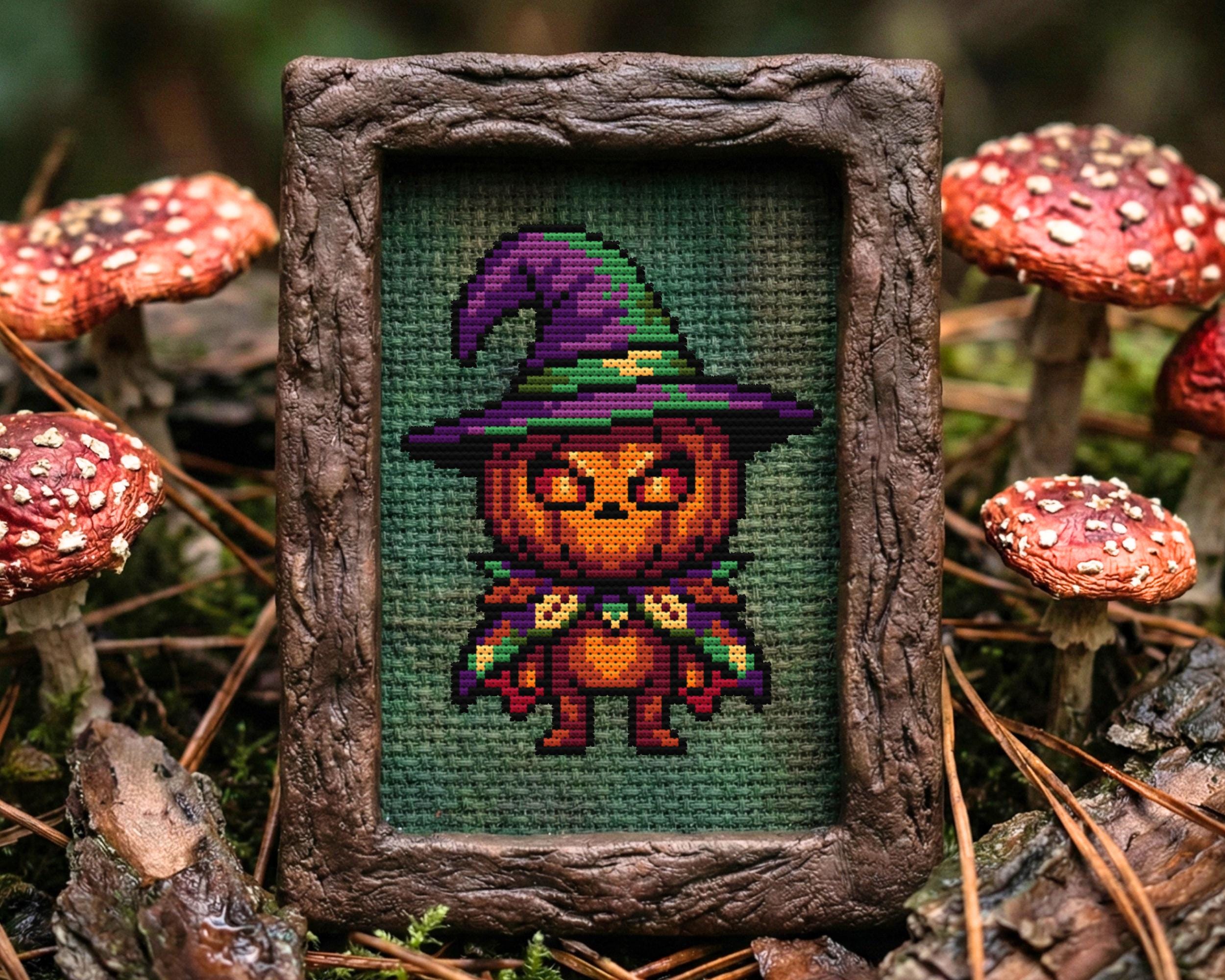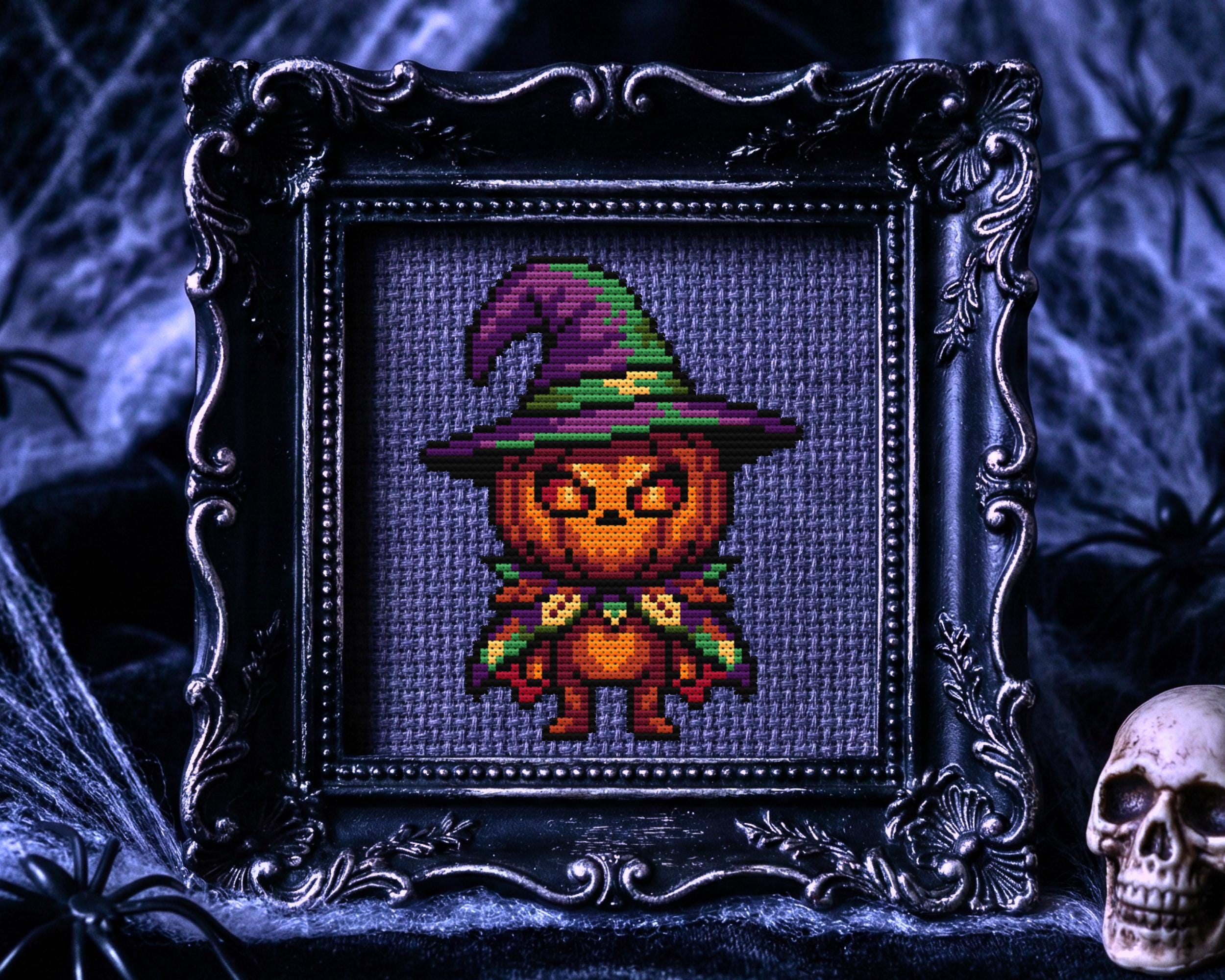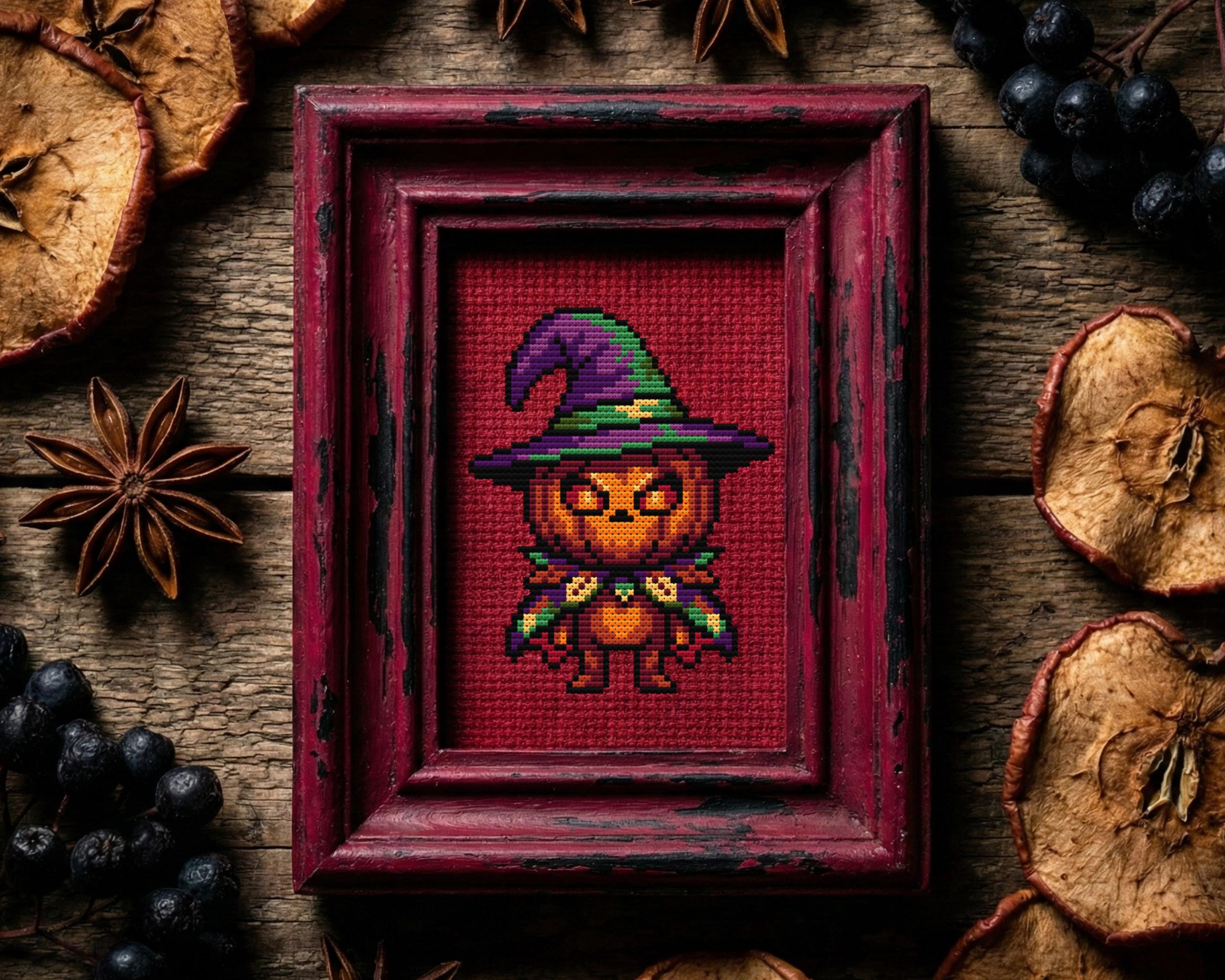 Get ready to stitch up the cutest little wizard to ever haunt a hoop! If you are looking for a Halloween cross stitch that is more adorable than terrifying, this pumpkin-headed friend is exactly what you need. He s rocking a purple hat and a cape, bringing a totally modern cross stitch vibe to your seasonal decor. Even if you don’t usually do fright night themes, this spooky cross stitch is charming enough to stay on your wall all year round. Honestly, who can resist a smiling jack o lantern cross stitch that looks this dapper? We all need a break from massive, complex projects, which makes this easy cross stitch perfect for a relaxing weekend. Since it fits the definition of a mini cross stitch, you can easily finish it while binge-watching your favorite scary movies. It brings a colorful touch of whimsical cross stitch magic to your collection without taking months to complete. Just look at those big glowing eyes; it is the absolute peak of kawaii cross stitch mixed with pumpkin spice energy. Even if your home aesthetic runs a bit darker, this design fits right in as a soft gothic cross stitch piece. It definitely scratches that itch for a witchy cross stitch project without actually summoning any demons in your living room. I love designs that have a bit of personality, almost like a snarky cross stitch that knows exactly how cute it is. It makes for a funny cross stitch addition to a gallery wall that might be taking itself too seriously. If you enjoy horror cross stitch but want something a little more lighthearted for a change, this is the one. Grab your needle and floss, and get your xstitch on!