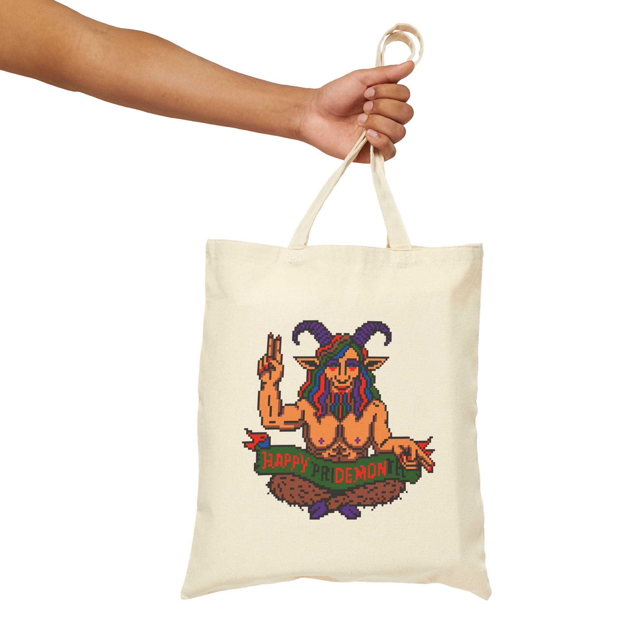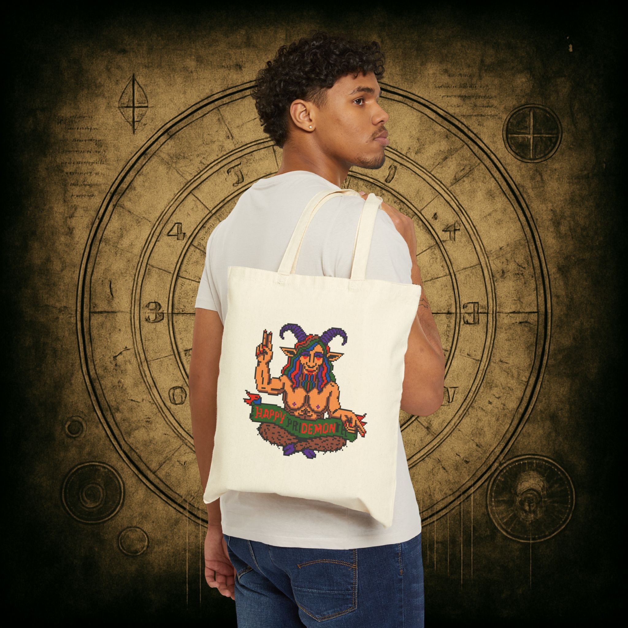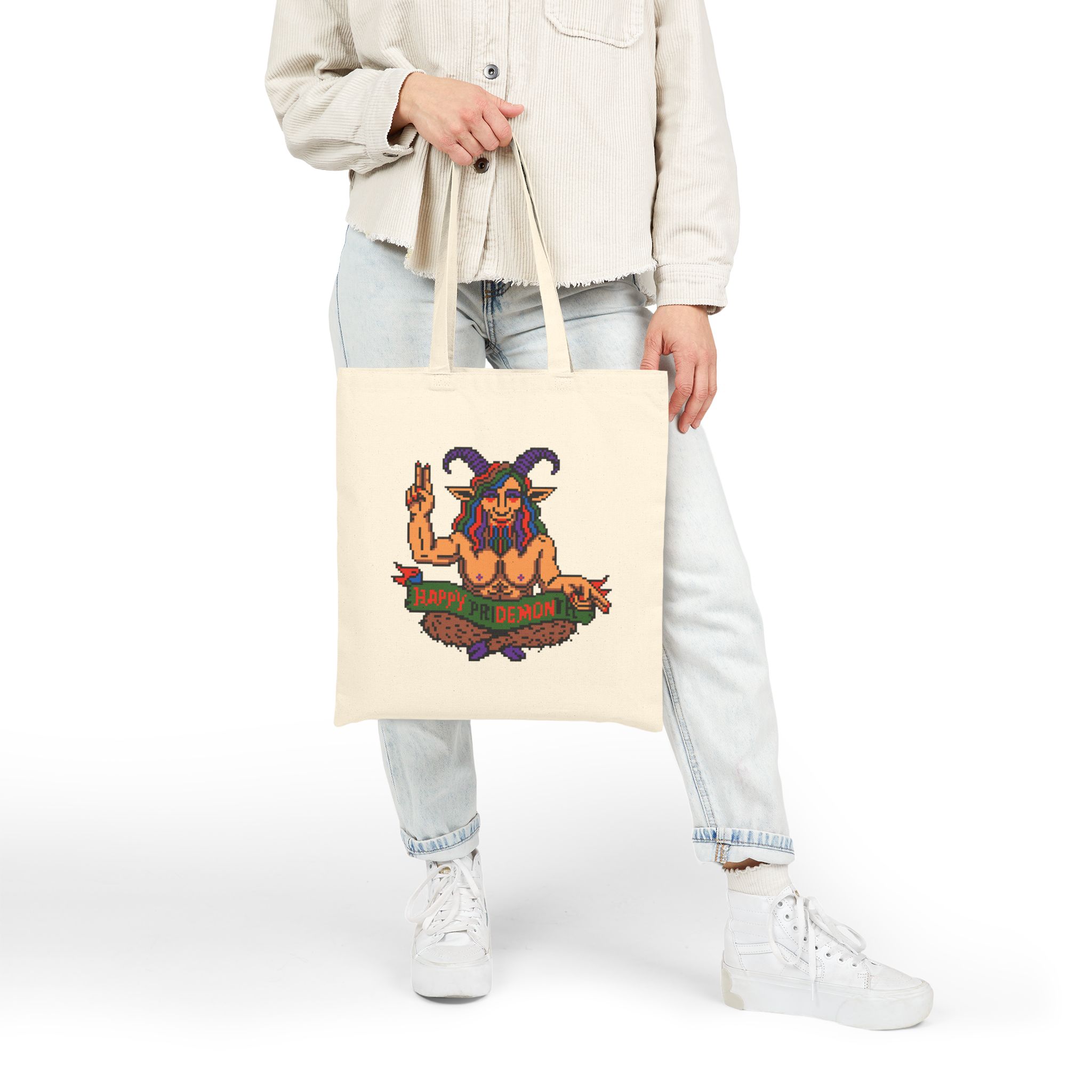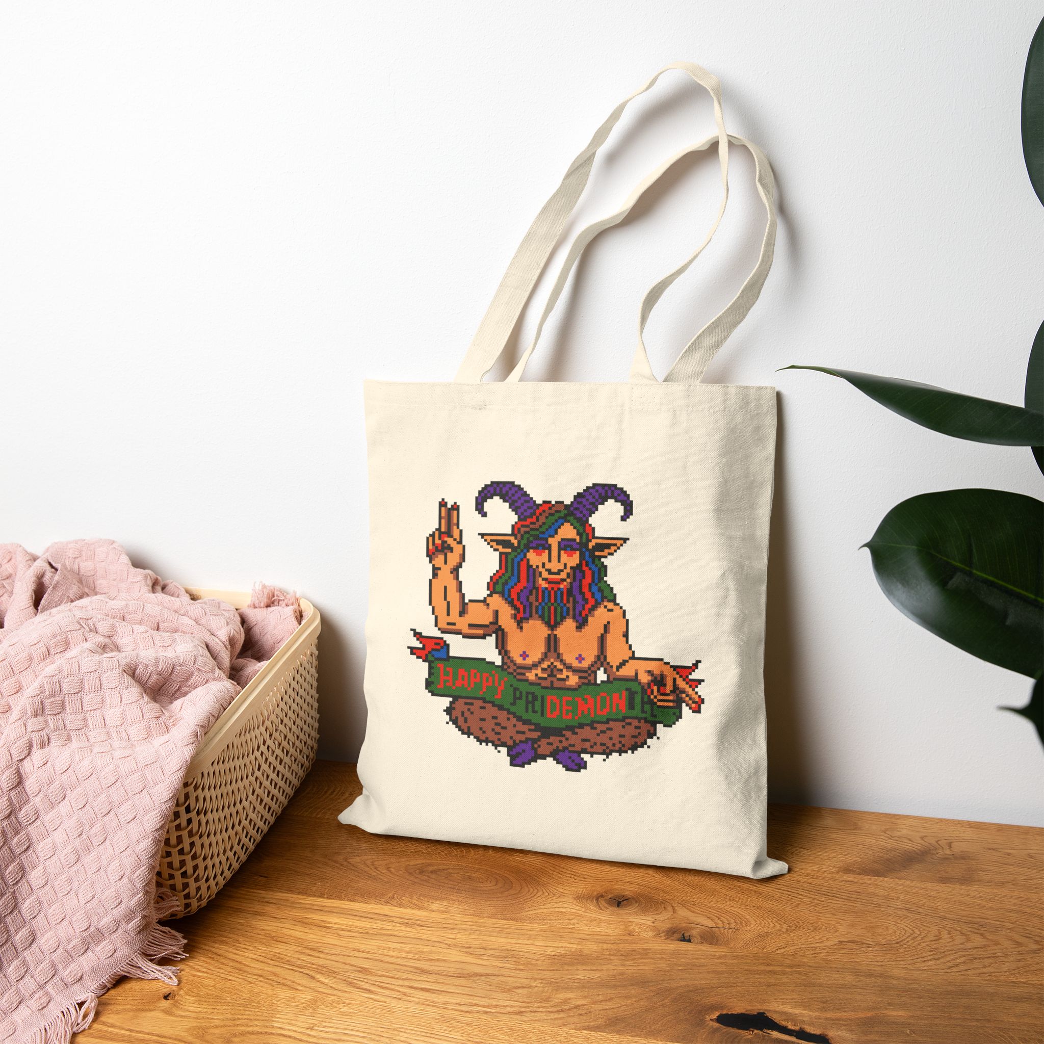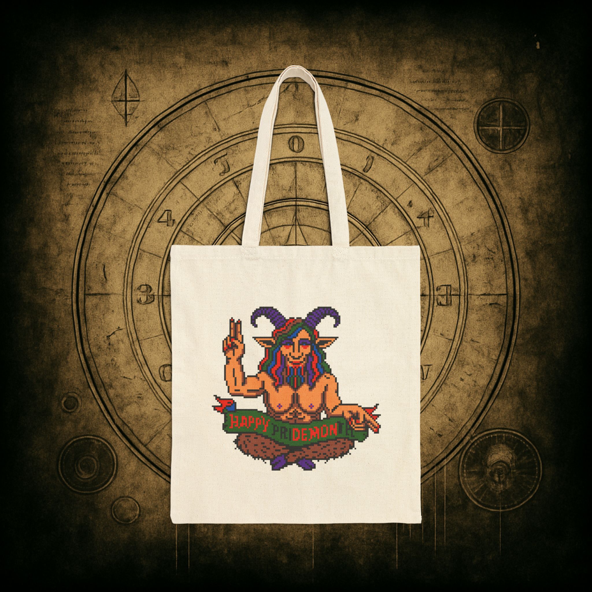 Celebrate queerness, chaos, and a little bit of campy infernal energy with the Happy PRiDE MONth Tote Bag because nothing says “love is love” like a rainbow-horned demon throwing peace signs. Whether you’re storming the gates of heteronormativity or just heading to the farmer’s market, this bag has your back.