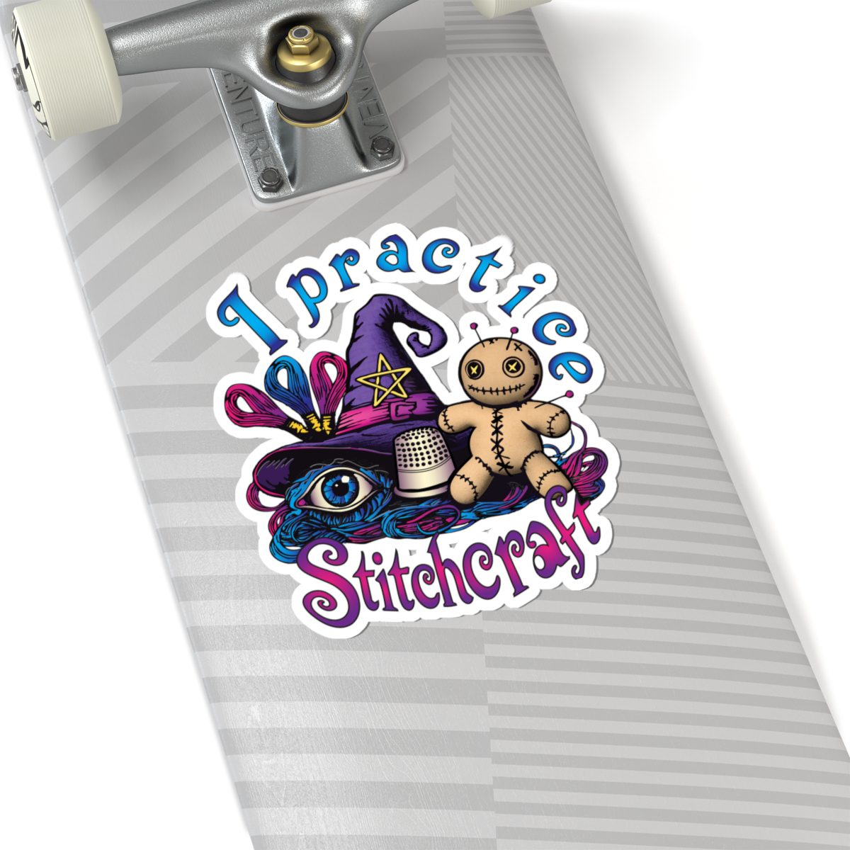 For the witch who threads her needle with intention and a tiny bit of spite, the I Practice Stitchcraft Kiss-Cut Sticker is your official badge of crafty mischief. Featuring mystical floss, a very well-loved voodoo doll and the thimble of destiny, this sticker screams don’t test me, I’m counting AND conjuring.