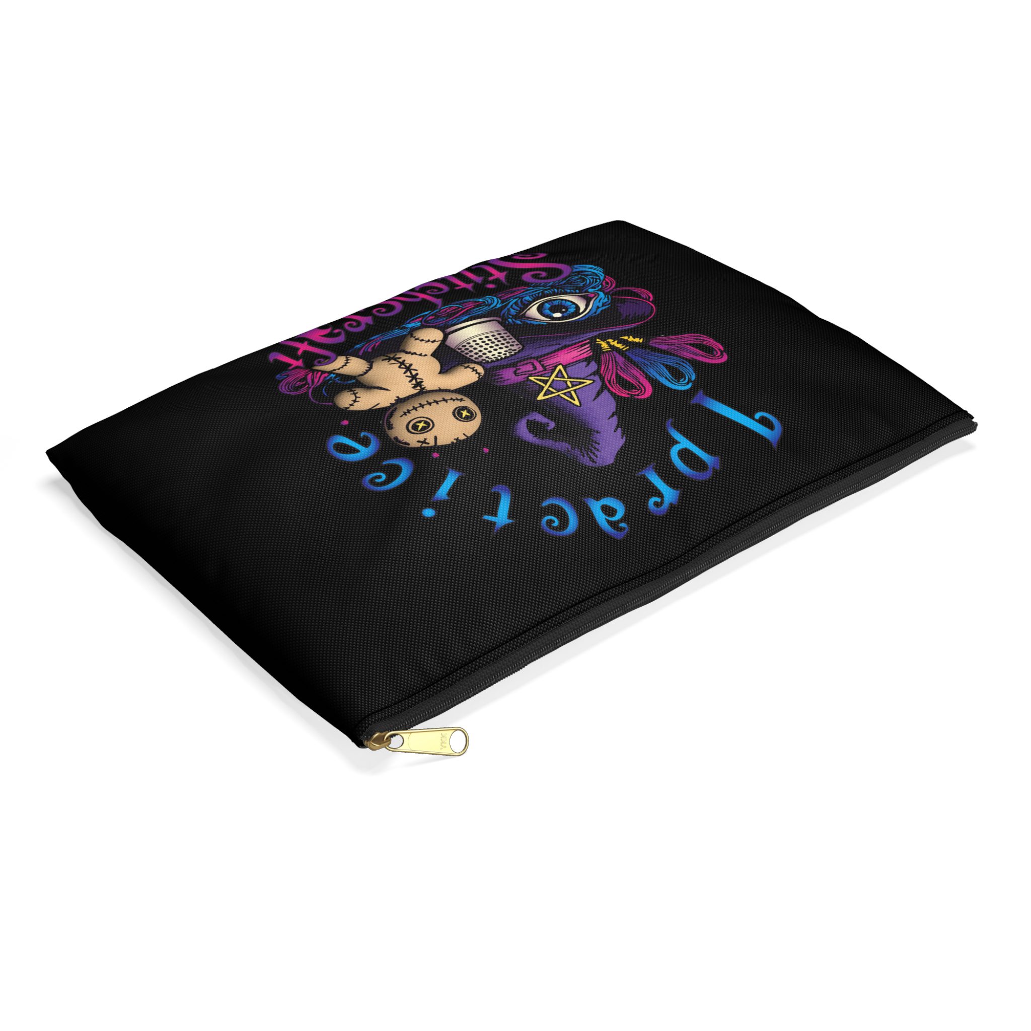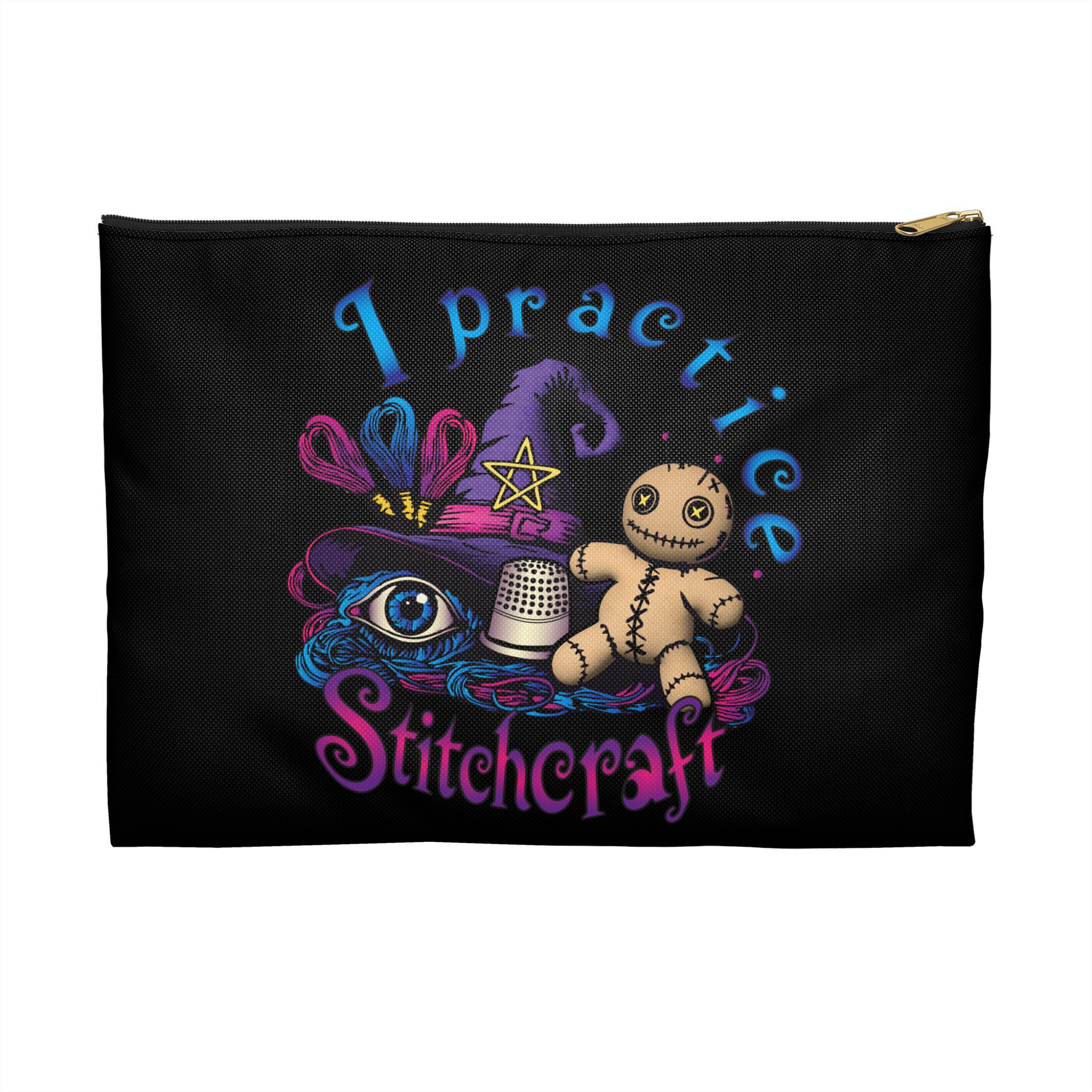 With a wide-eyed familiar, a thimble chalice, enchanted floss bundles, and that adorable voodoo dolly who definitely knows your secrets, this bag turns your stitchy tools into magical relics.