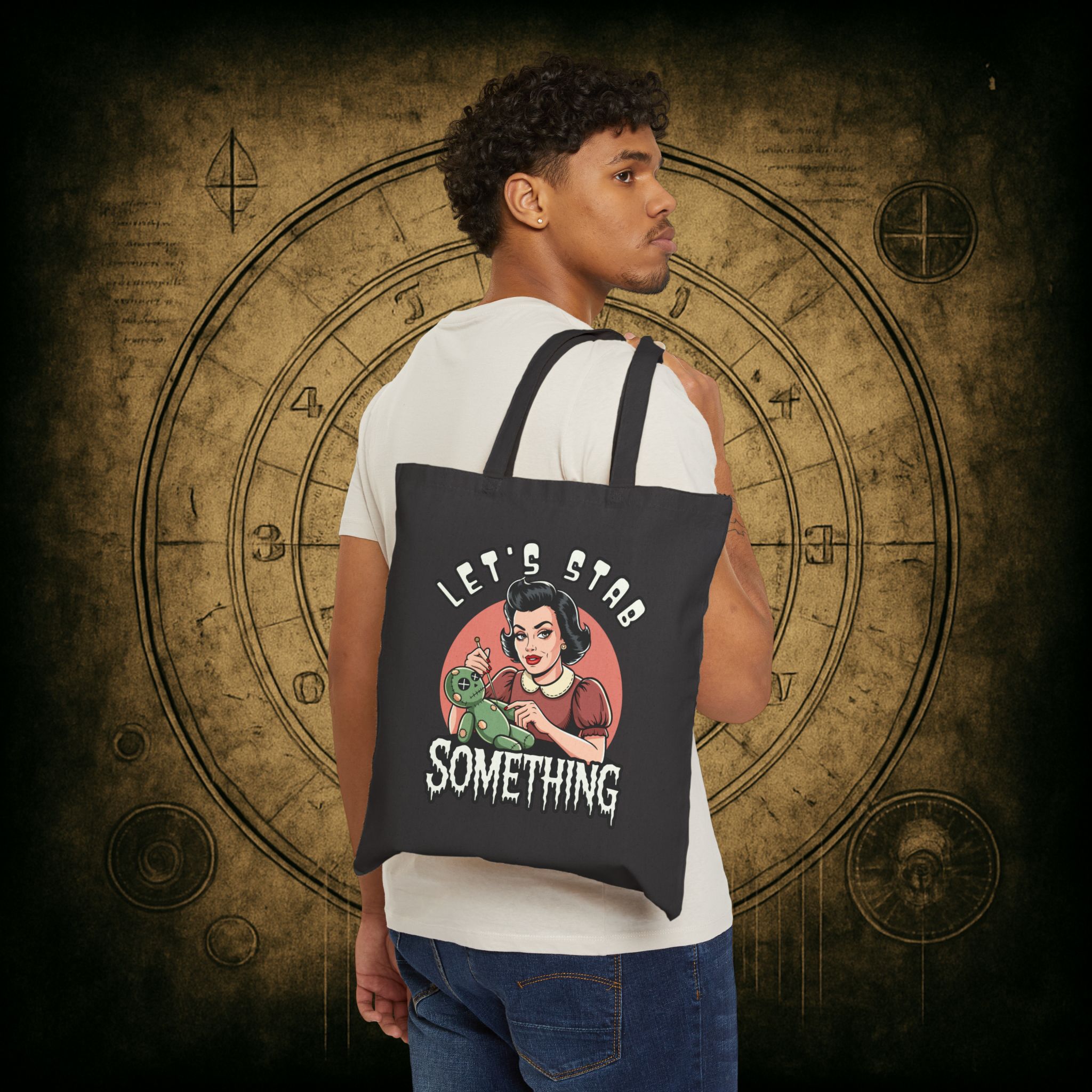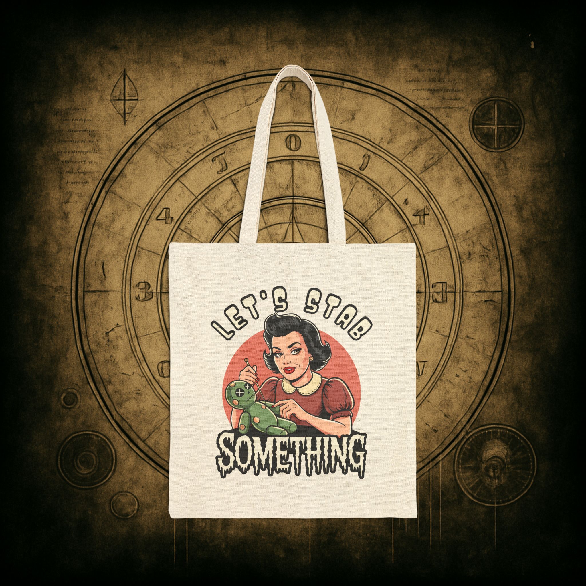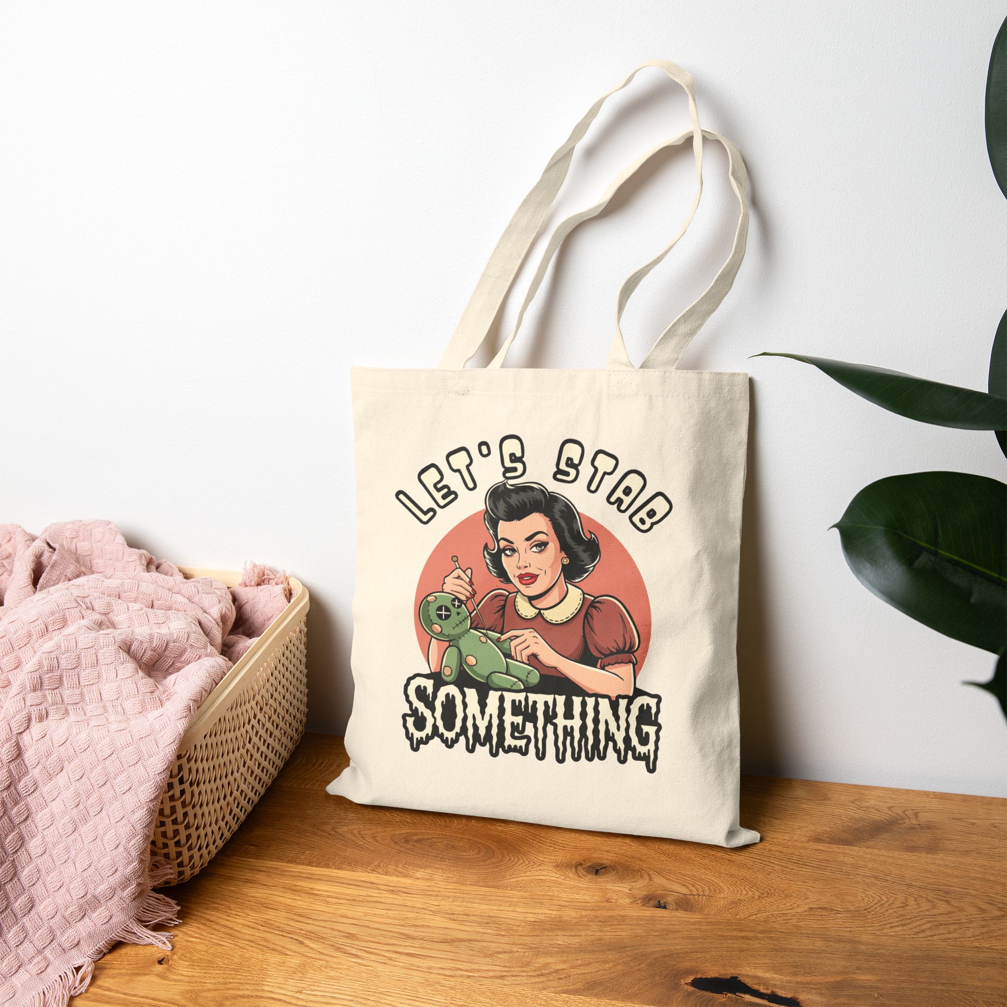 Bad day? Annoying coworker? Moon in retrograde again? The Let’s Stab Something Tote Bag is here to help you carry your emotional baggage, with a side of chaos. Featuring a retro enchantress and her very unlucky voodoo doll, this wickedly playful tote screams “therapy who?” while still holding your planner, potion kit, or just some extra pins (you know, for reasons). It’s cute. It’s cursed. It’s cathartic.