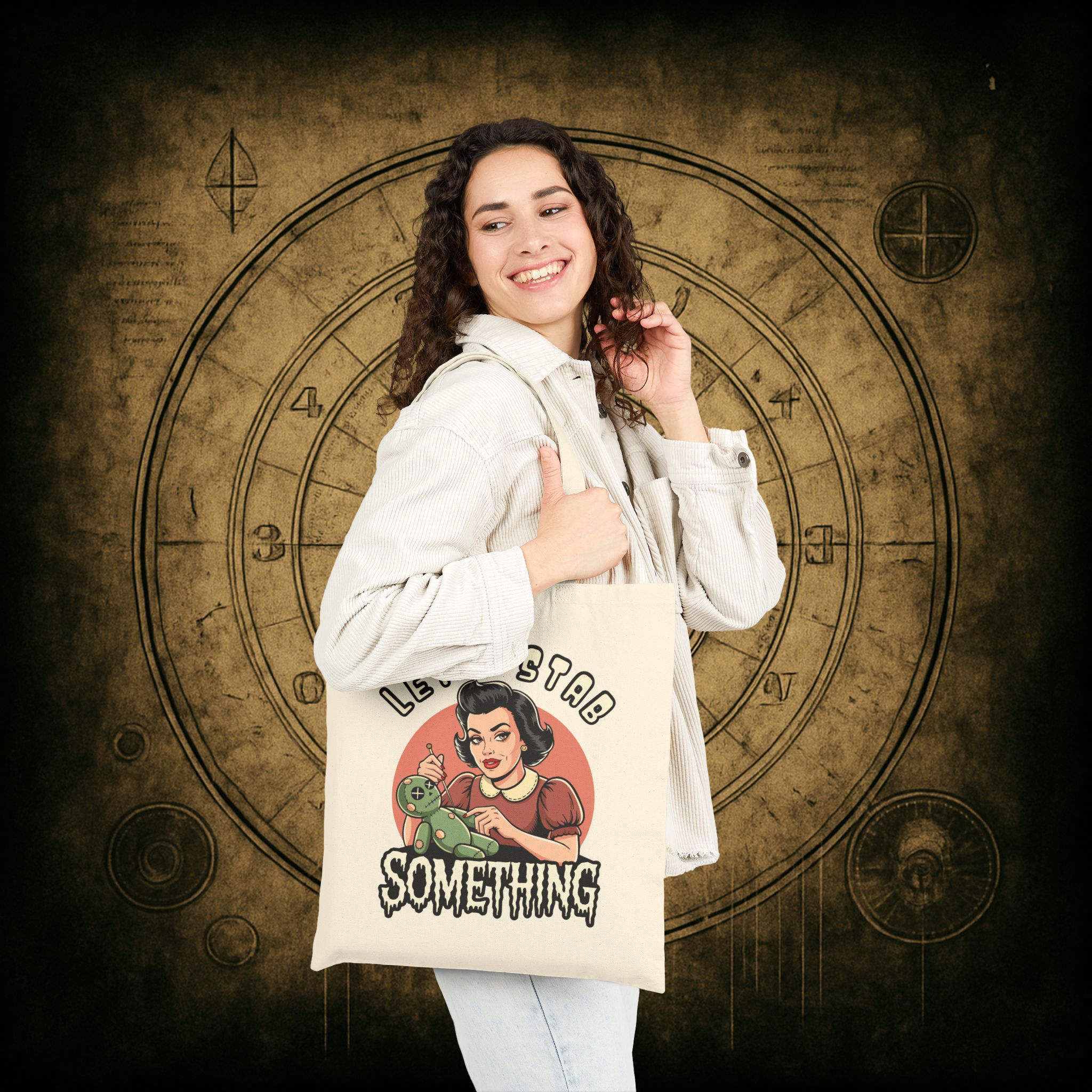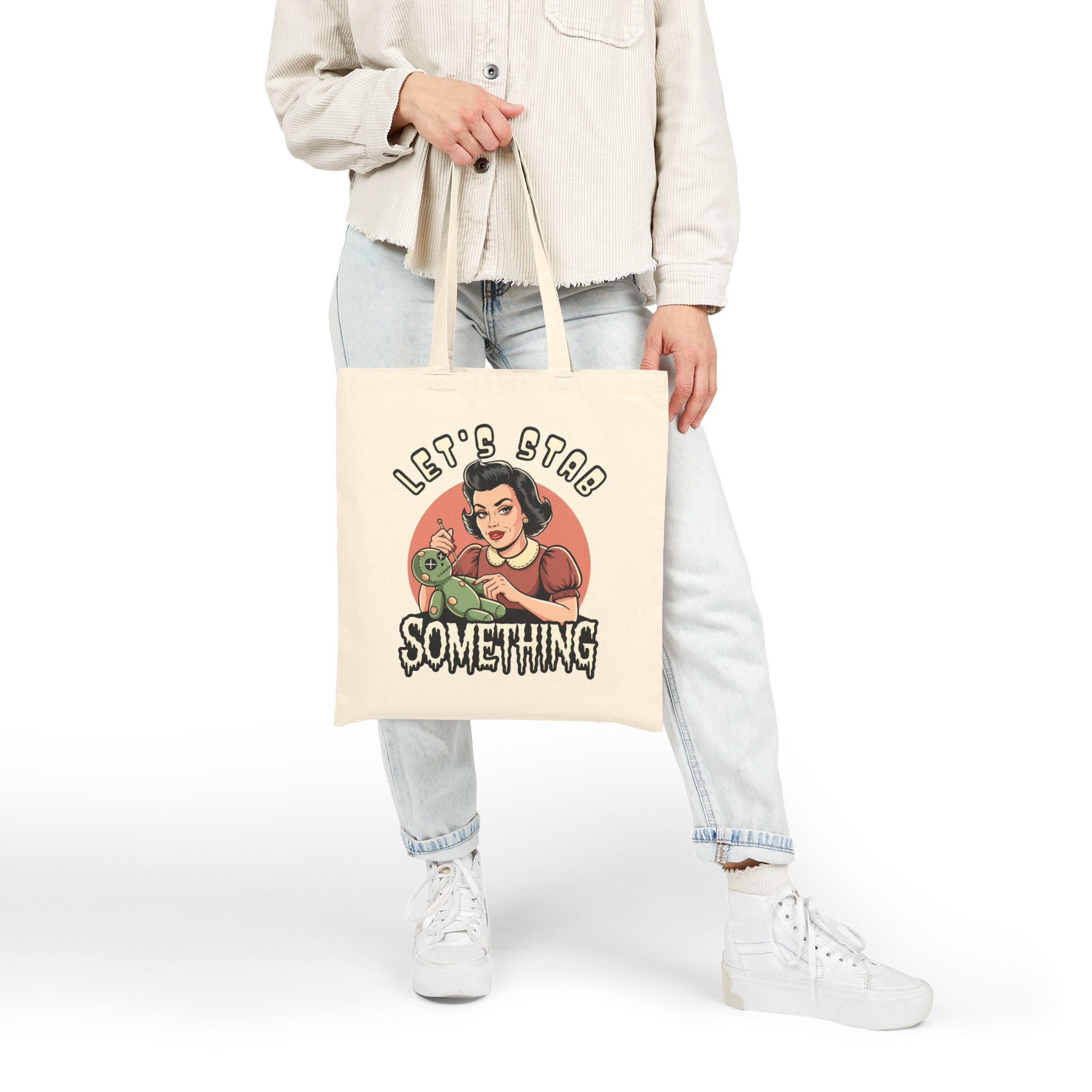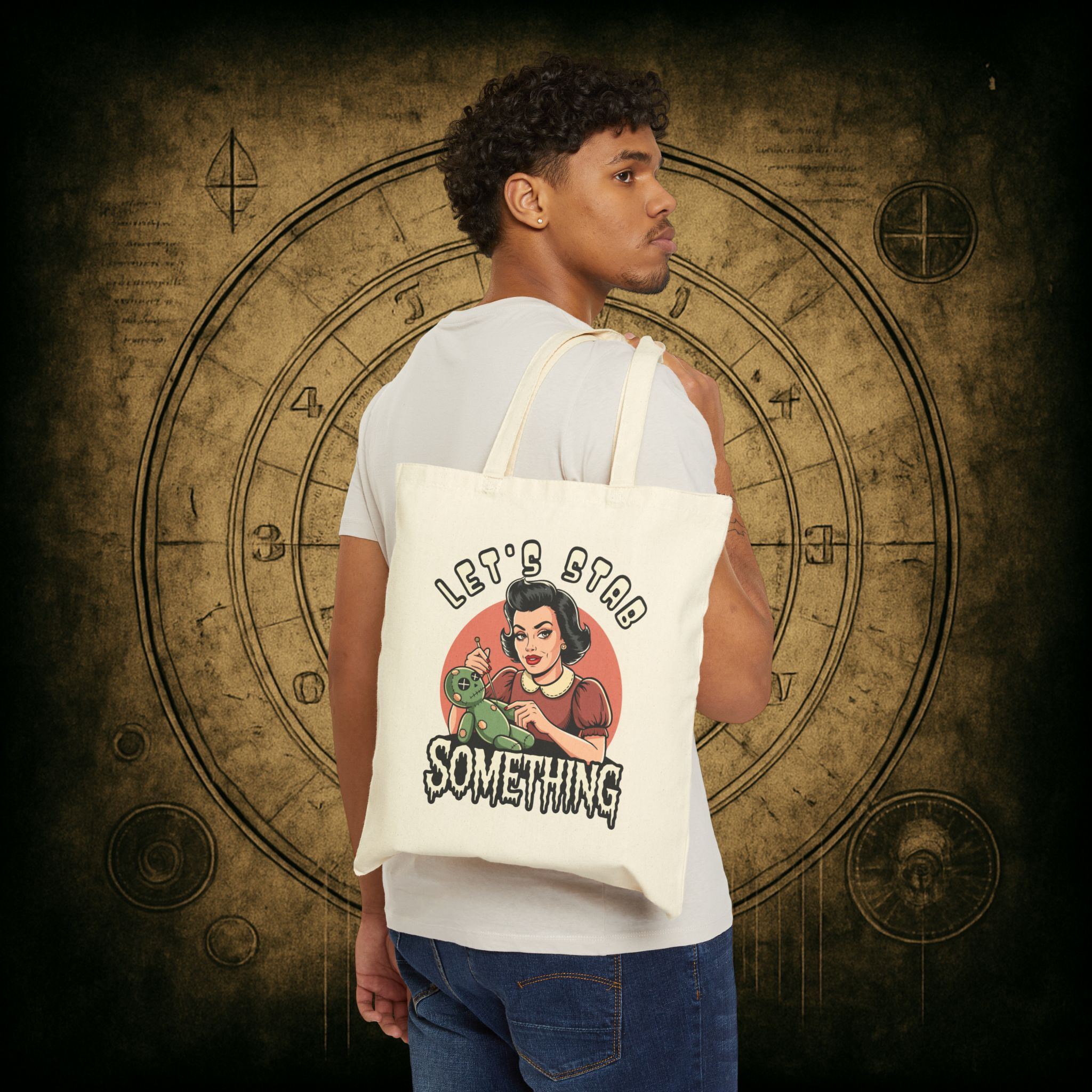 Bad day? Annoying coworker? Moon in retrograde again? The Let’s Stab Something Tote Bag is here to help you carry your emotional baggage, with a side of chaos. Featuring a retro enchantress and her very unlucky voodoo doll, this wickedly playful tote screams “therapy who?” while still holding your planner, potion kit, or just some extra pins (you know, for reasons). It’s cute. It’s cursed. It’s cathartic.