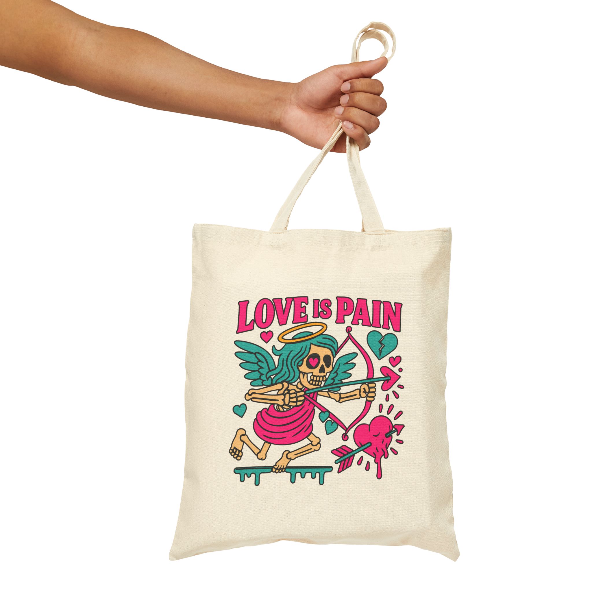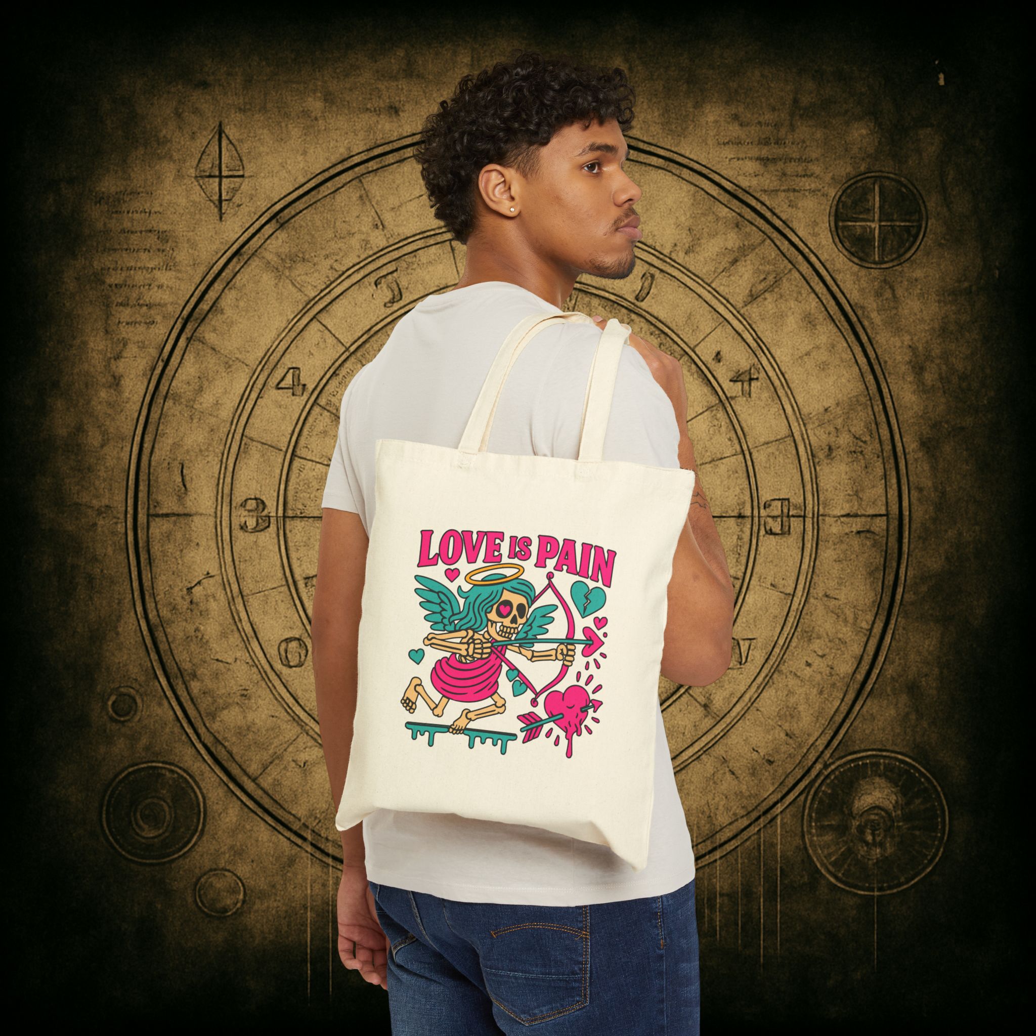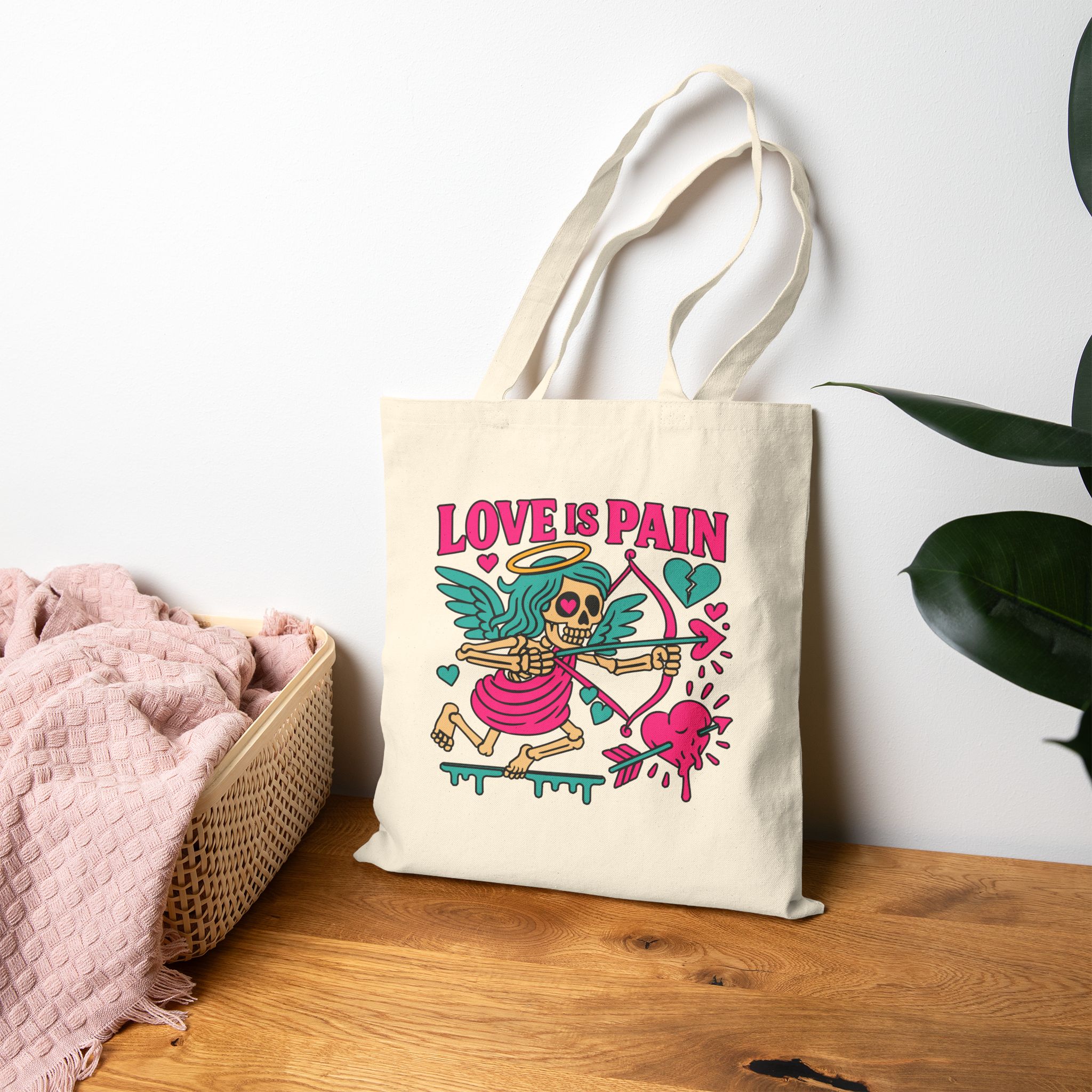 Behold the Love Is Pain Tote Bag, perfect for romantic rituals, anti-Valentine declarations, or just carrying the weight of your emotional damage (and snacks). With a skeleton cupid shooting heartbreak arrows and rocking a halo like she meant to cause chaos, this neon-splashed beauty is for those who love hard, break harder, and still look fabulous in the fallout. Ideal for cursed love letters, tarot decks, or your third emergency chocolate stash.