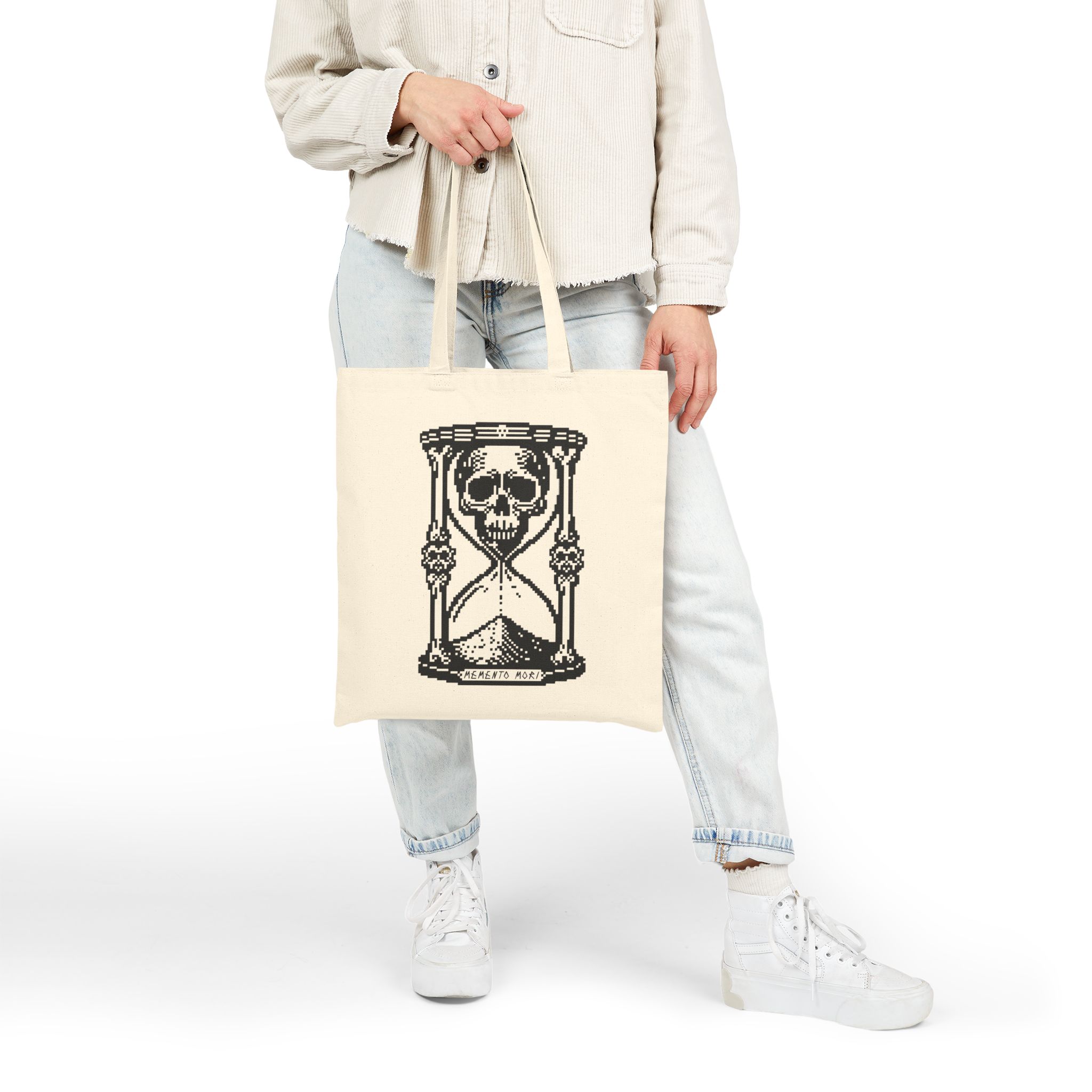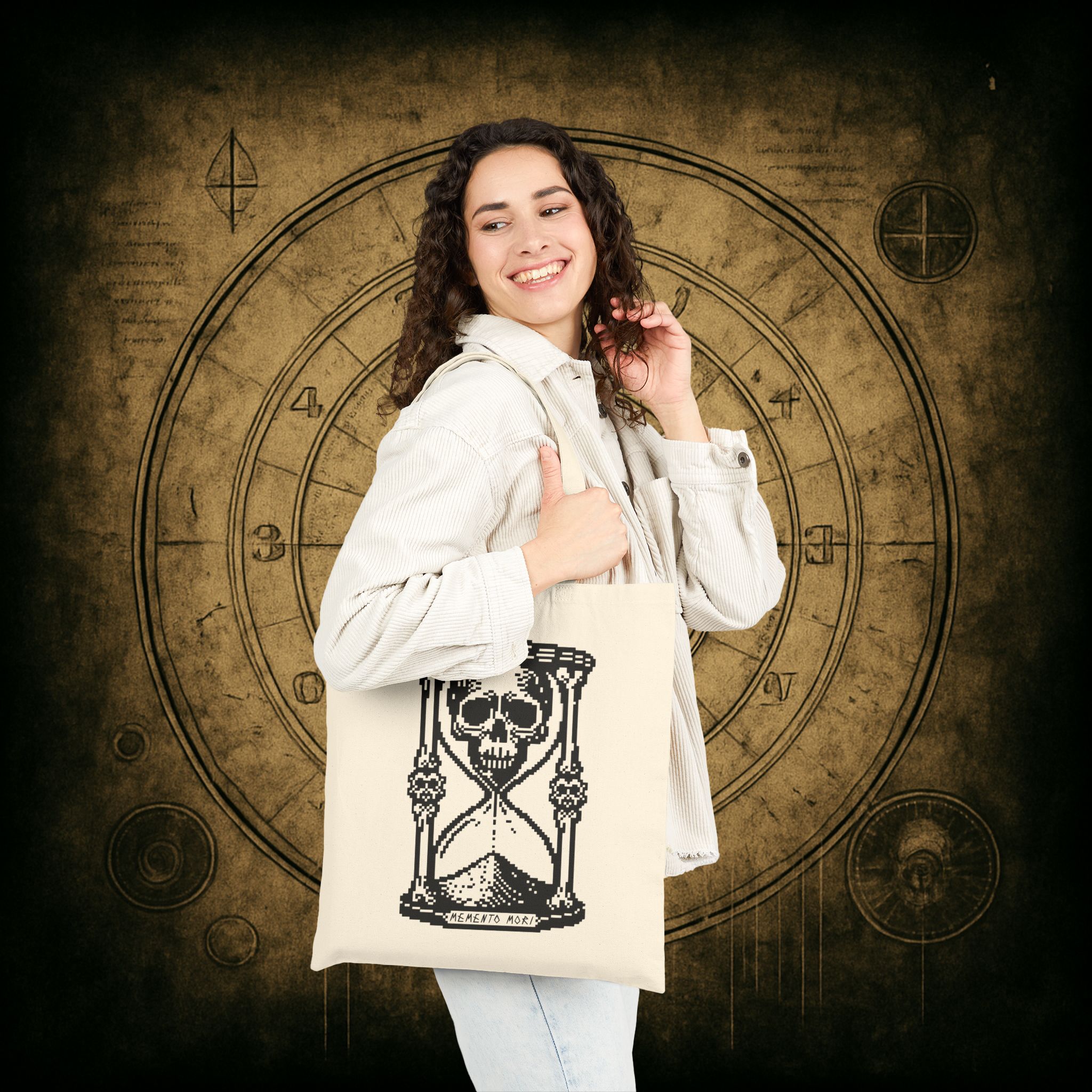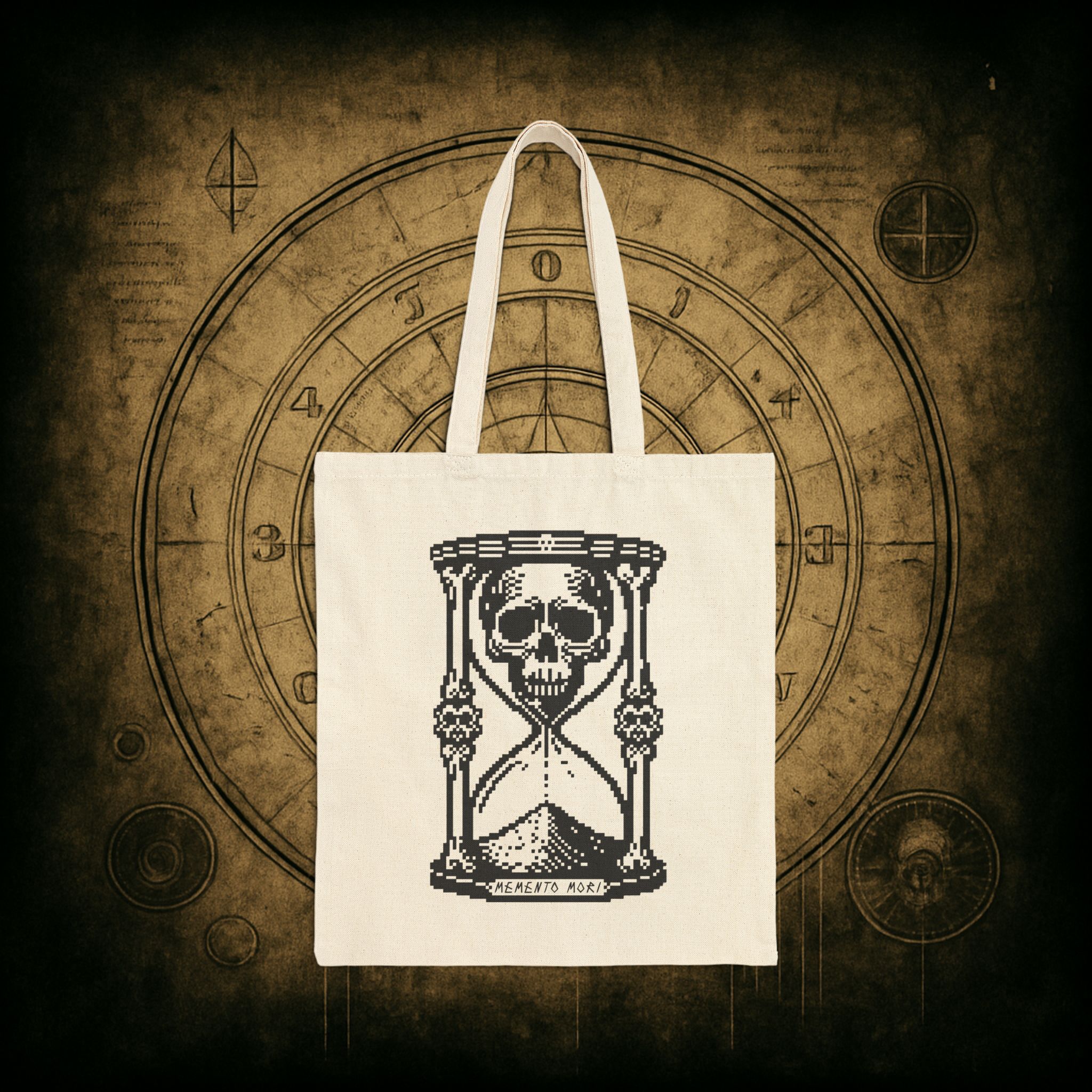 Darling, time is but a haunted whisper, so you might as well carry your essentials like a cursed queen. The Memento Mori Tote Bag features a pixel-etched skull locked in a gothic hourglass, reminding all who dare glance your way that the sands are slipping… and you’ve got errands to run. Ideal for toting your witchy wares, midnight musings, or the occasional forbidden text plucked from a haunted library shelf.