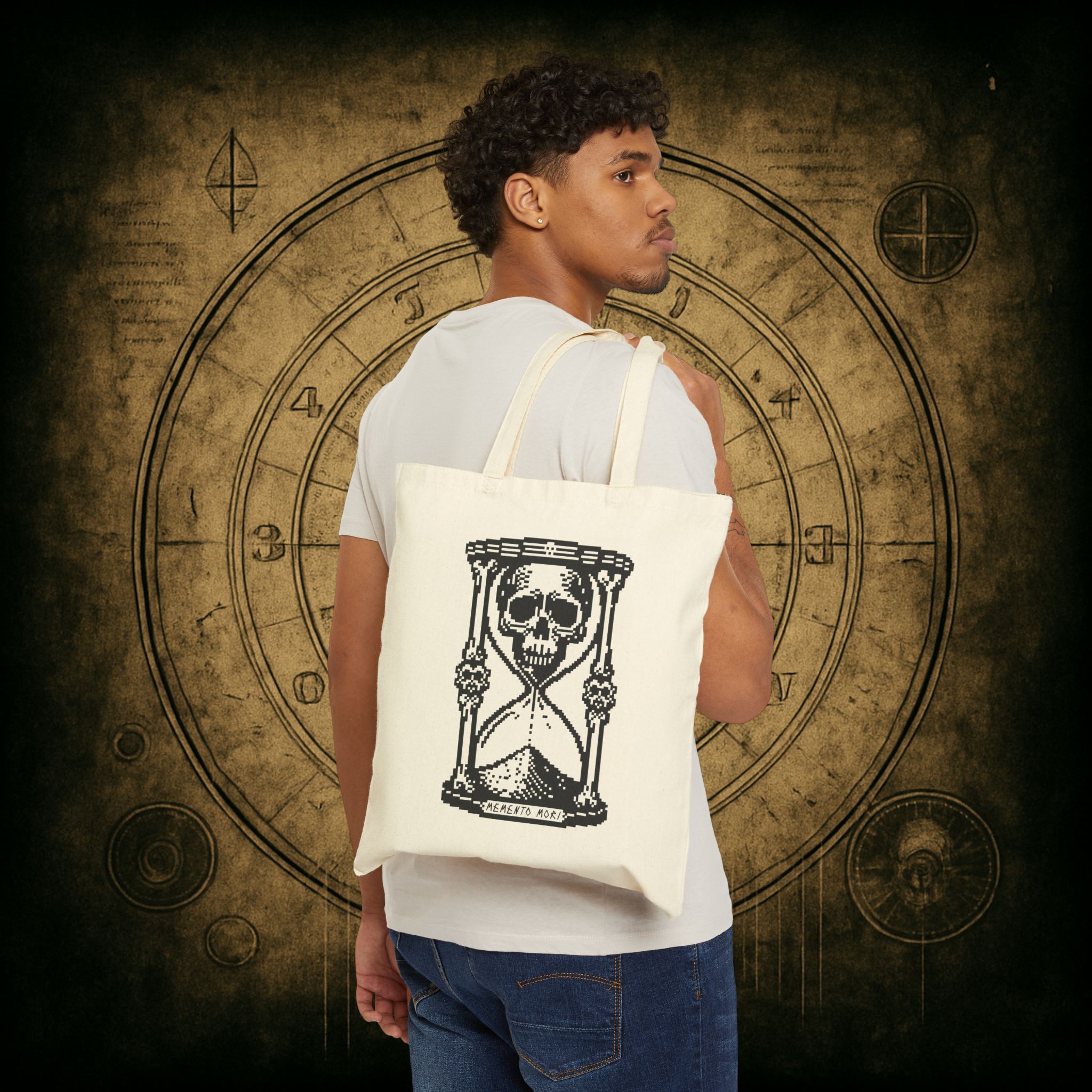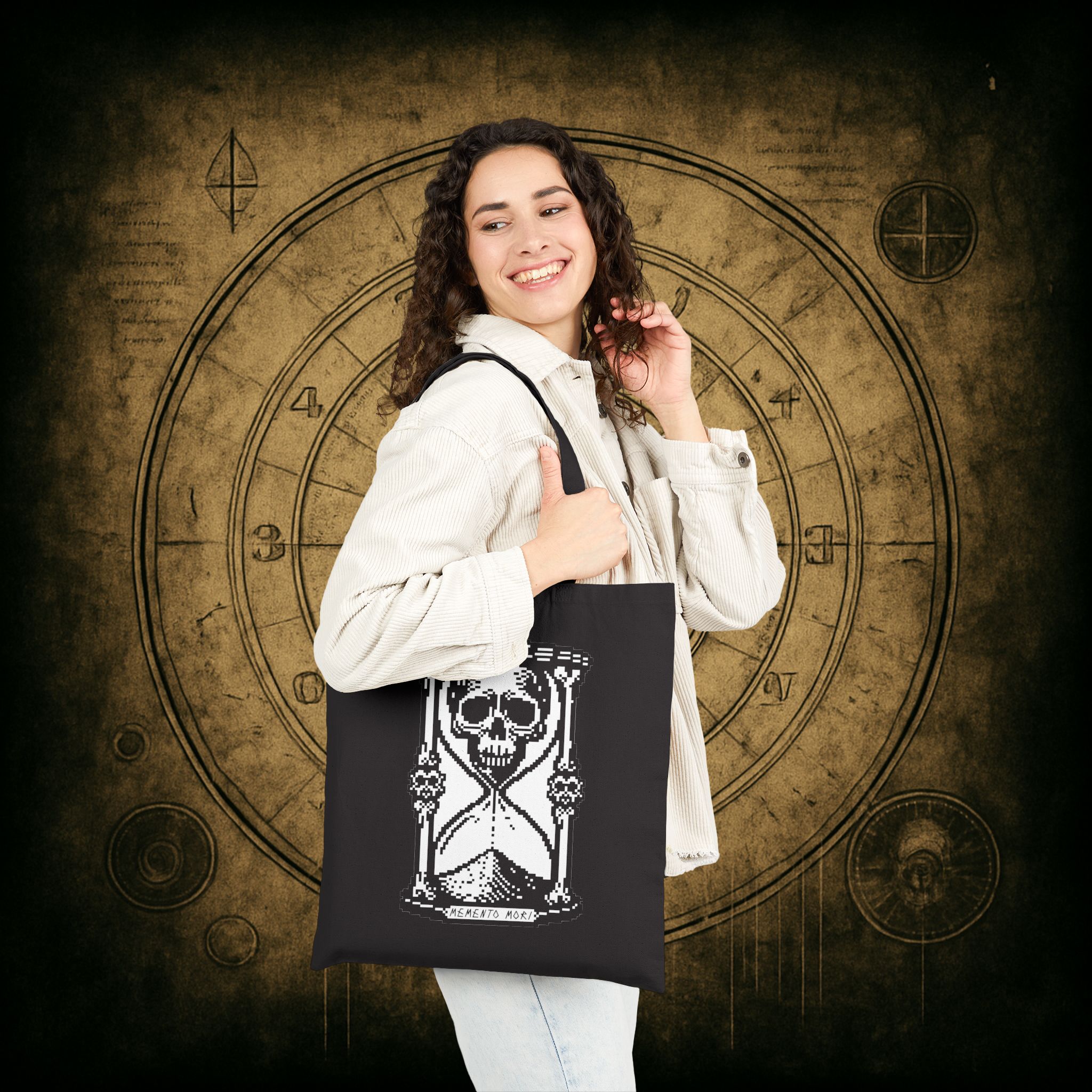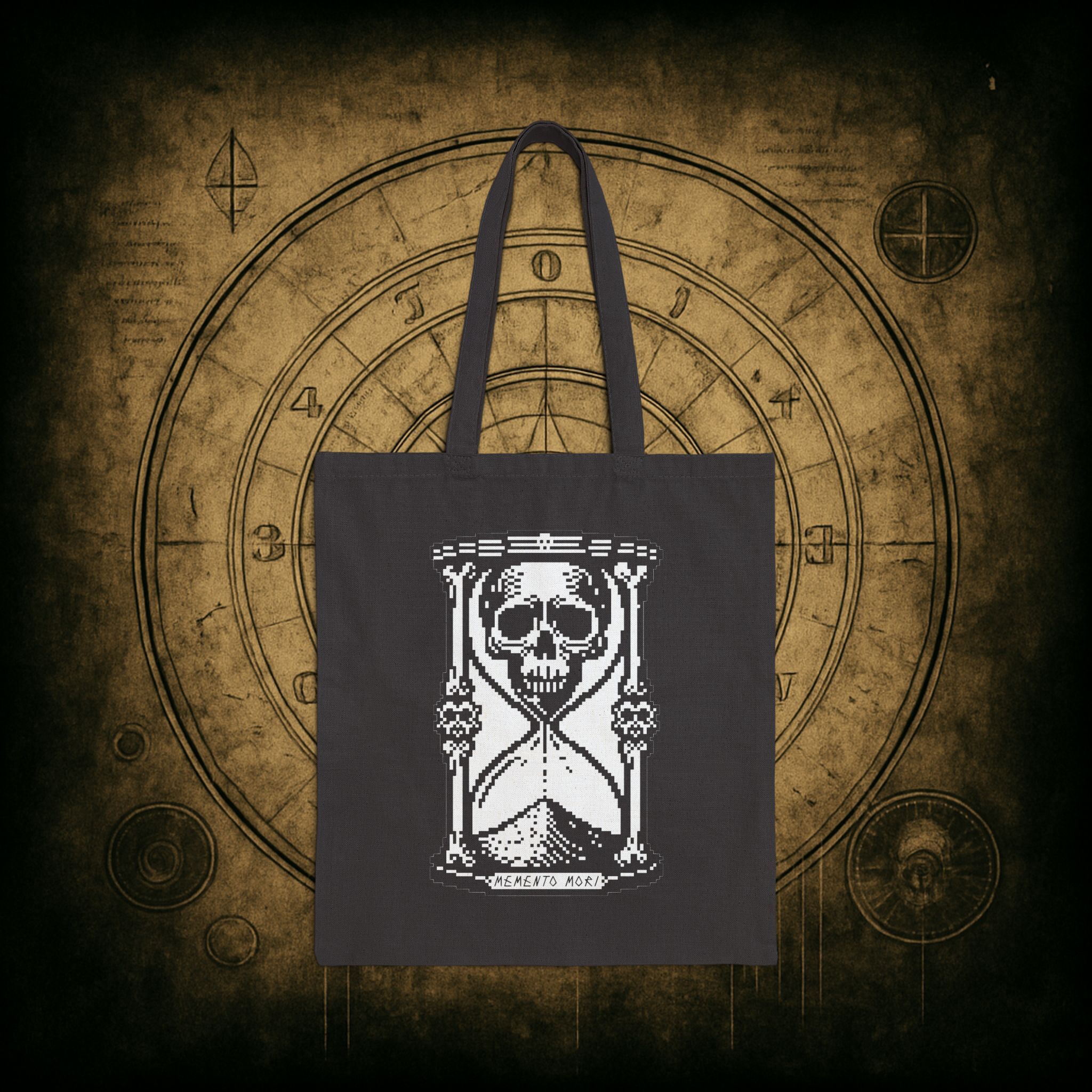 Darling, time is but a haunted whisper, so you might as well carry your essentials like a cursed queen. The Memento Mori Tote Bag features a pixel-etched skull locked in a gothic hourglass, reminding all who dare glance your way that the sands are slipping… and you’ve got errands to run. Ideal for toting your witchy wares, midnight musings, or the occasional forbidden text plucked from a haunted library shelf.