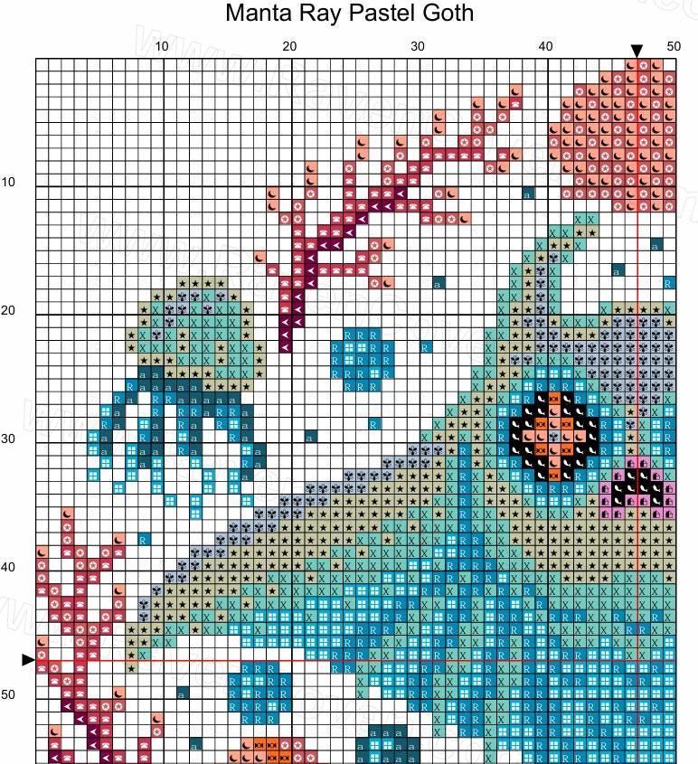 Pastel Goth Manta Ray Cross Stitch Pattern