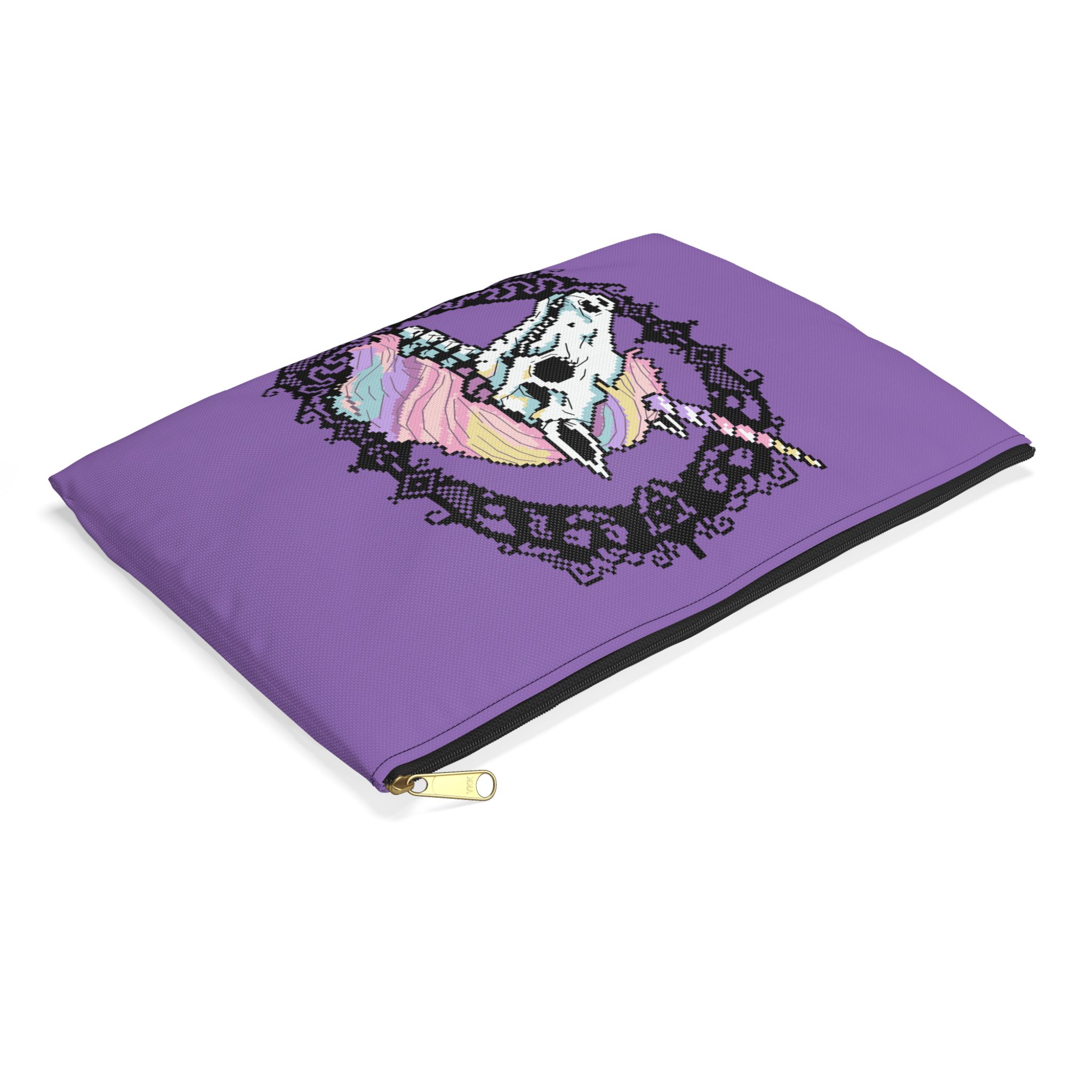 Soft, spooky, and serving full crypt-core fantasy, the Pastel Goth Skeleton Unicorn Project Bag is here to gallop through your stash with rainbow rot and bone-deep sass. Featuring a unicorn skull with candy-floss hair and dead-eyes that have seen things, this bag is equal parts magical and morbid.