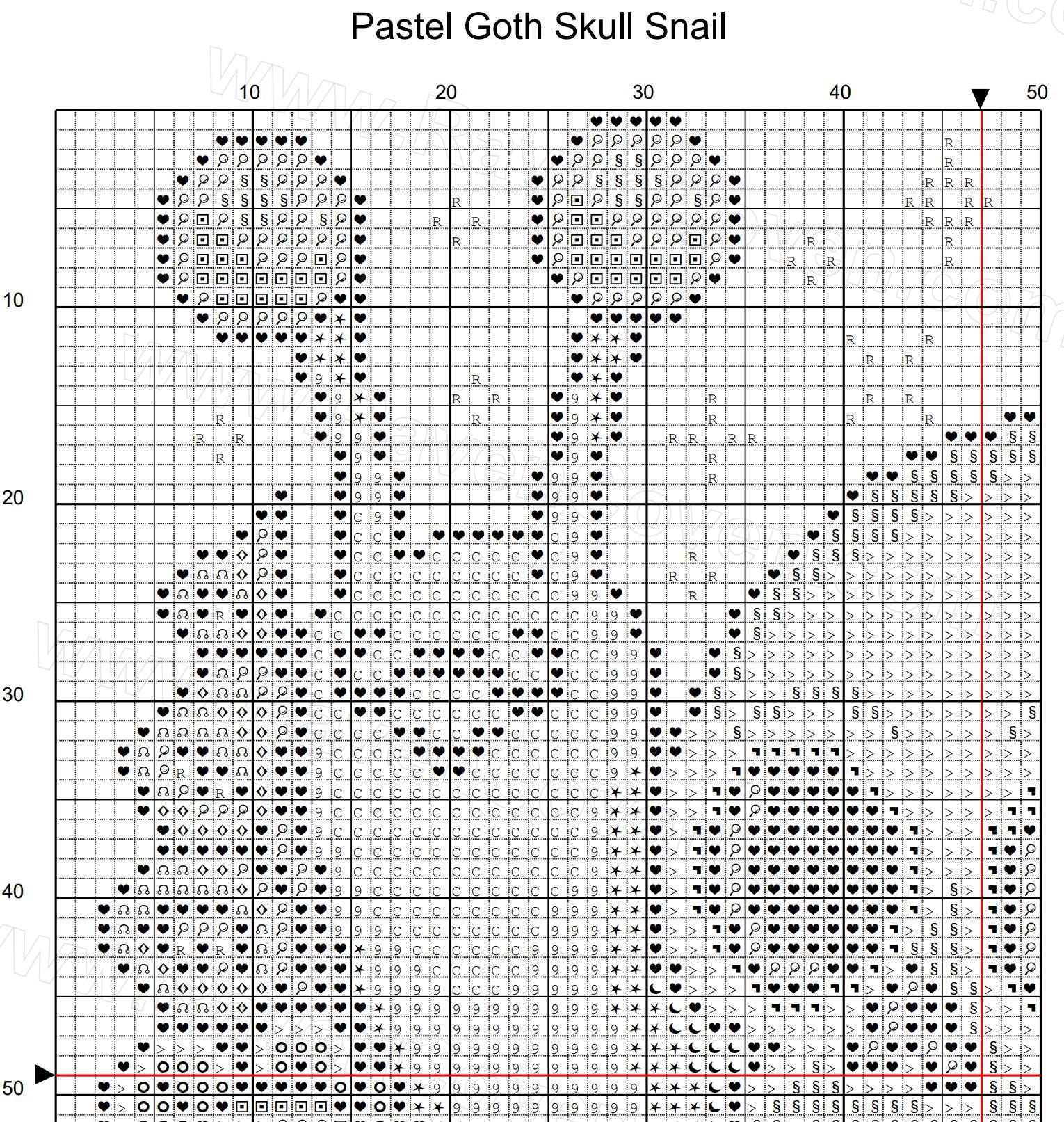 Pastel Goth Snail Skull Cross Stitch Pattern