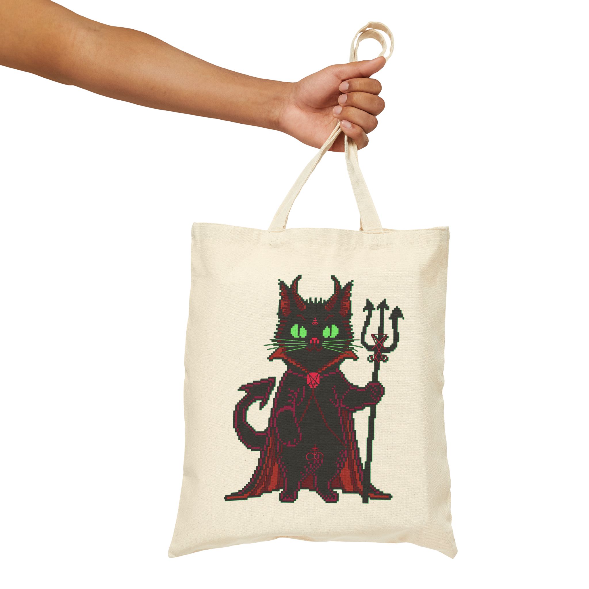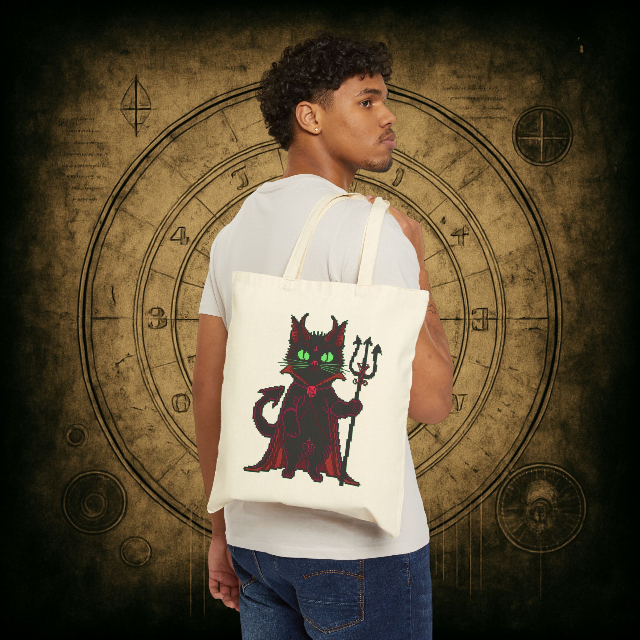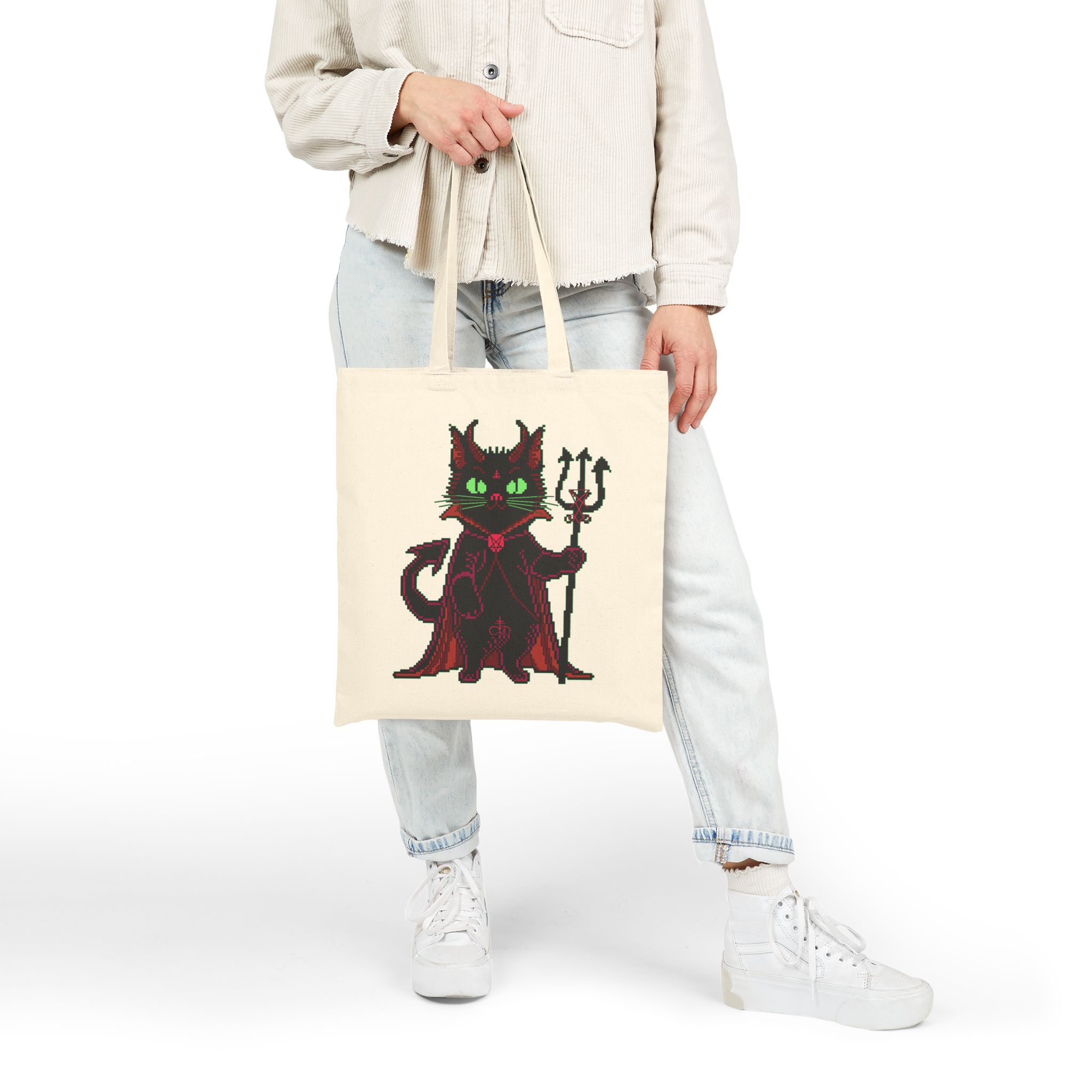 Whether you’re raiding the farmers’ market or escaping your mortal obligations with a dramatic cape swoosh, the Puscifer Tote Bag is your ultimate chaotic sidekick. Adorned with a pixel-perfect infernal kitty, complete with glowing green eyes, a trident, and just enough sass to start a cult, this bag isn’t just a carrier, it’s a whole attitude. Perfect for unholy errands, forbidden spellbooks, or smuggling snacks into coven meetings.