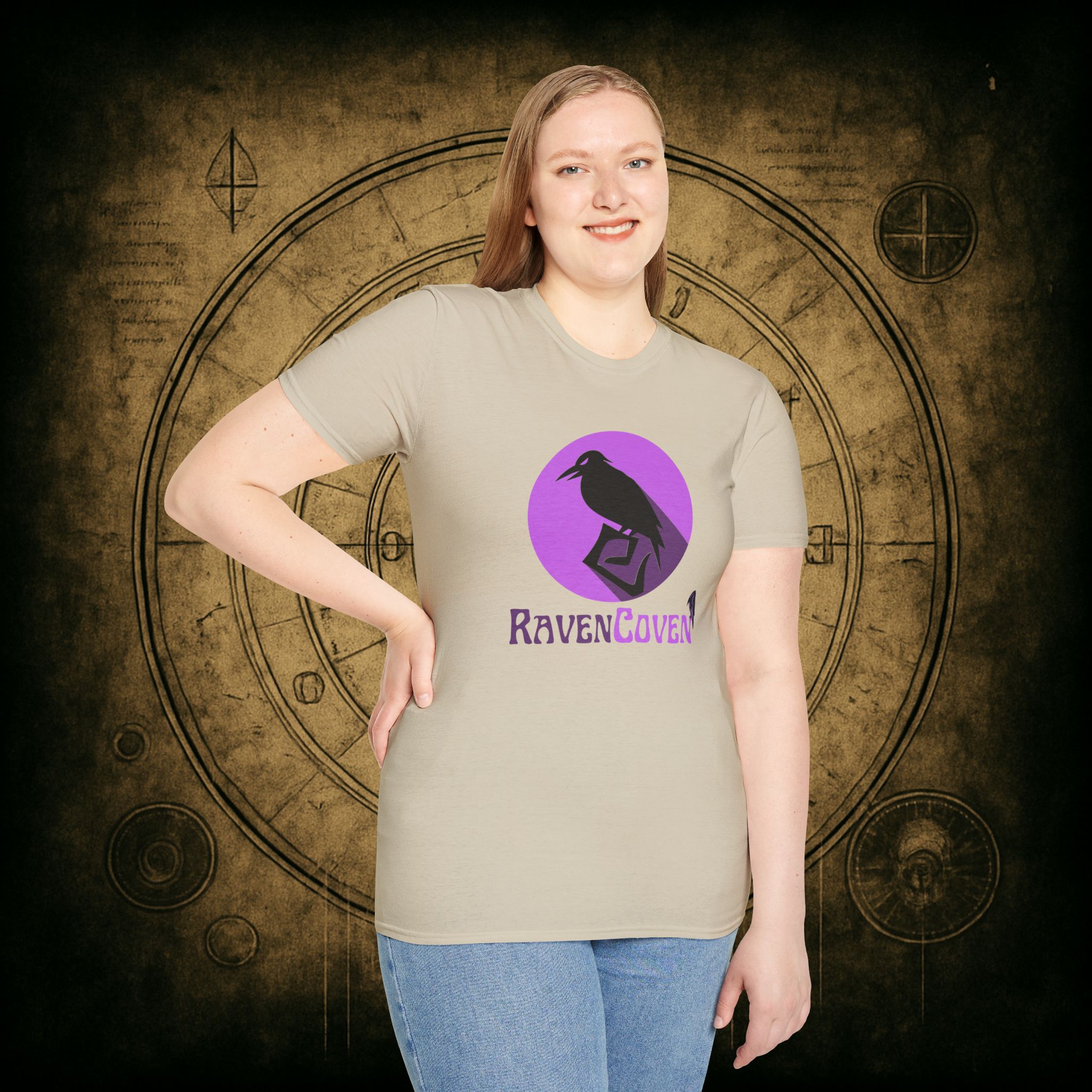 Embrace the mystical atmosphere with the Raven Coven Logo T-Shirt. This unisex t-shirt is made from durable and smooth fabric, perfect for printing. Ideal for ravens who are part of our coven. Suitable for wearing during Conjuring our designs, Halloween, Wiccan celebrations, and everyday occult vibes.