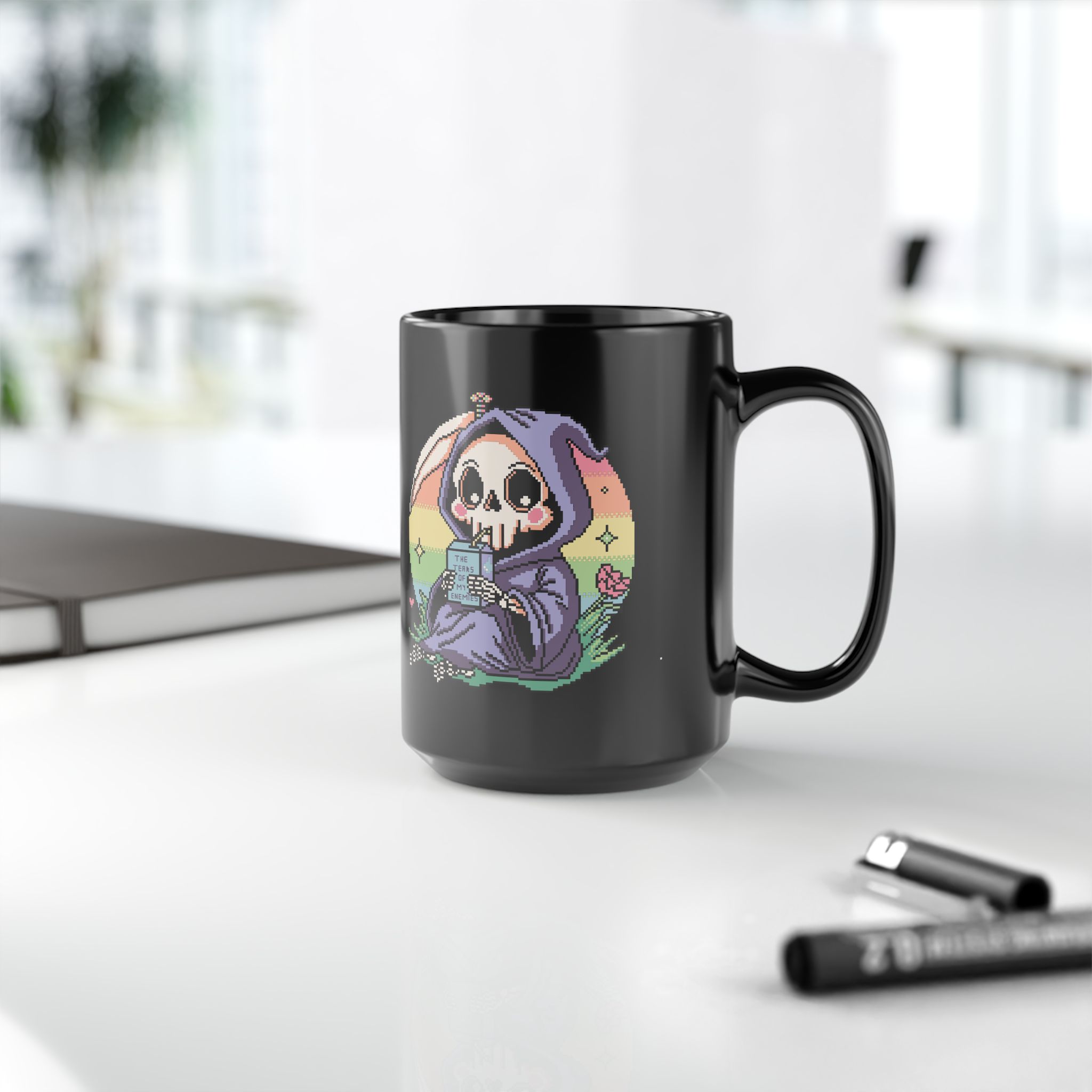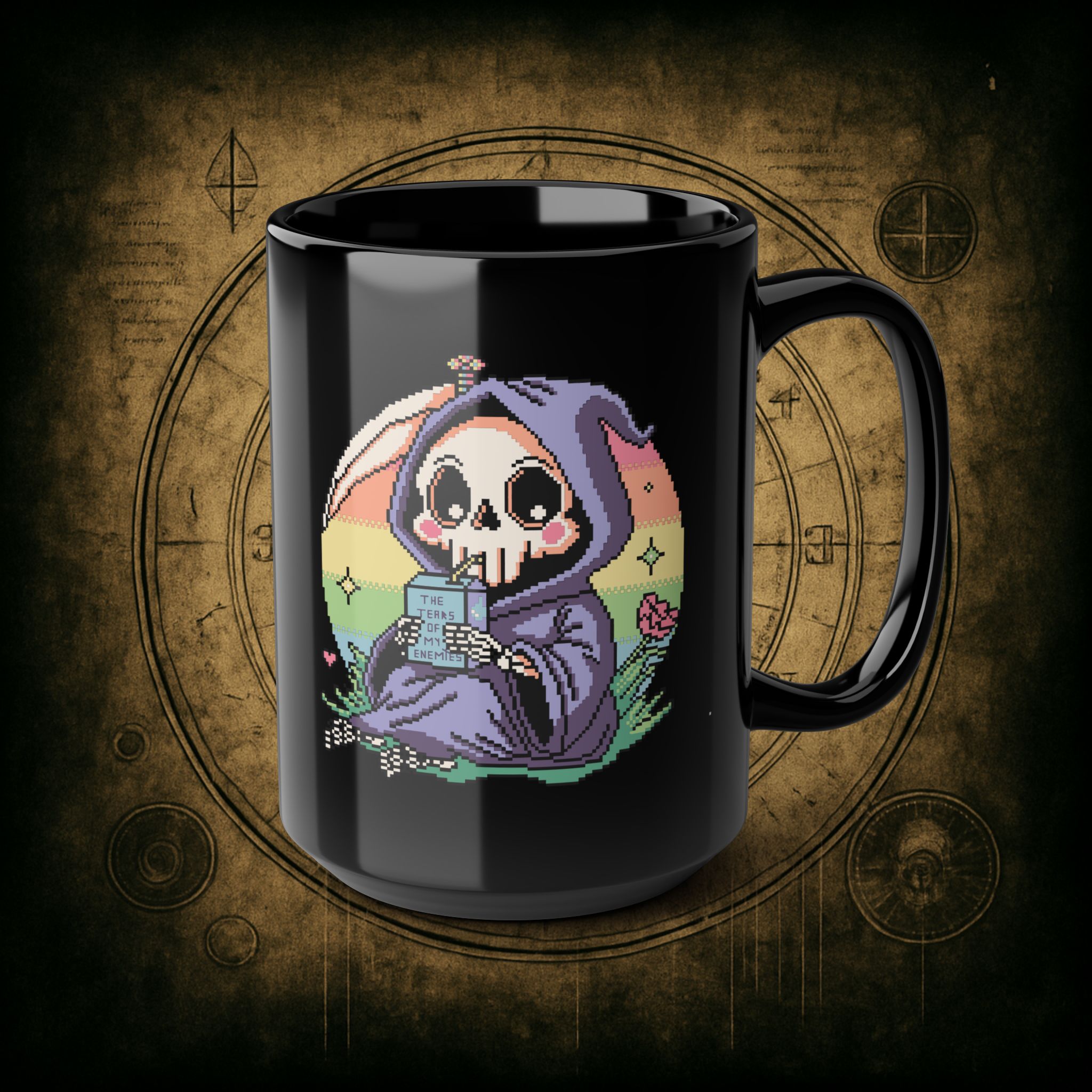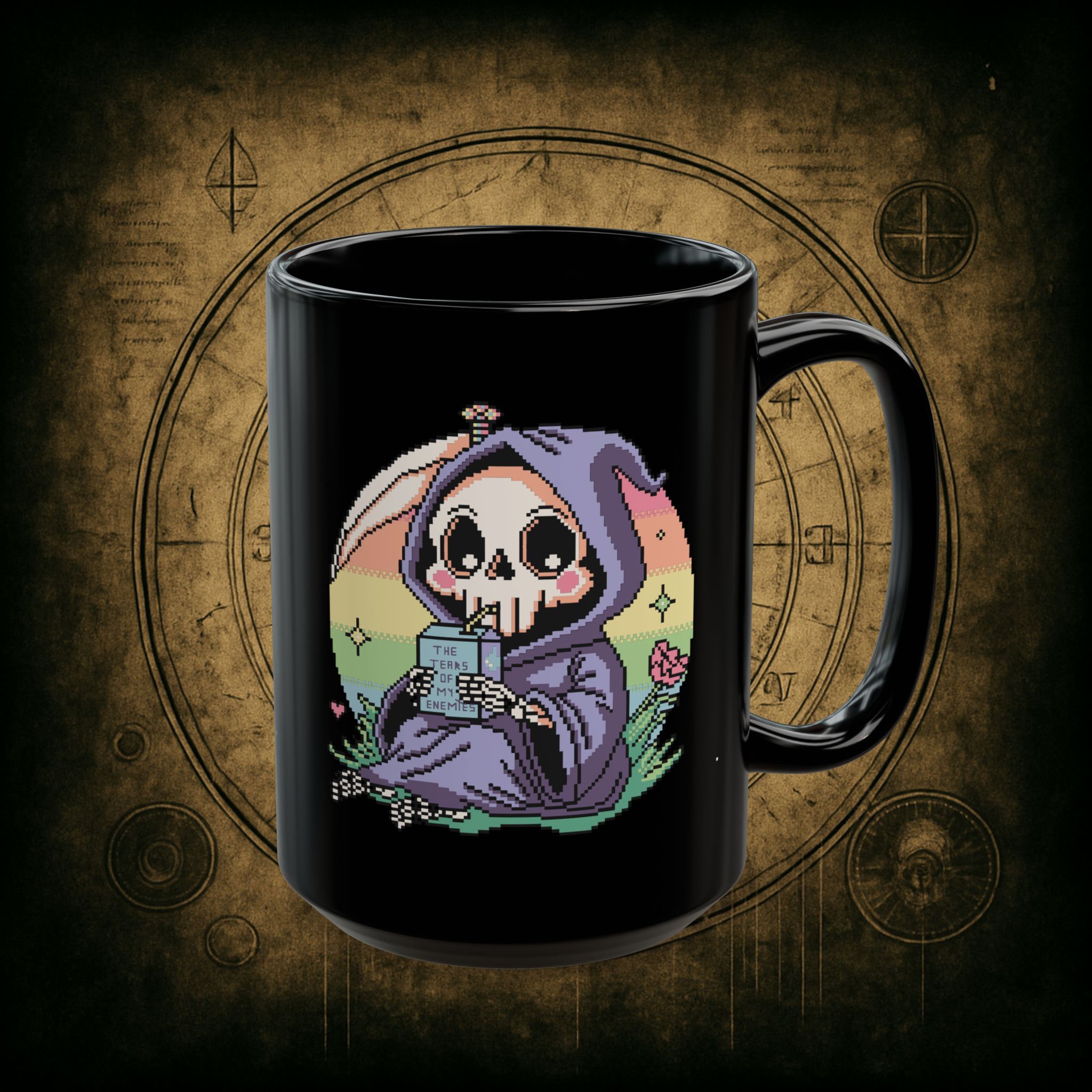 Sweet. Salty. Petty. This baby reaper’s got pastel eyes, a deadly aura, and a juice box labeled “The Tears of My Enemies.” Honestly, it’s giving peace, but make it vengeful.