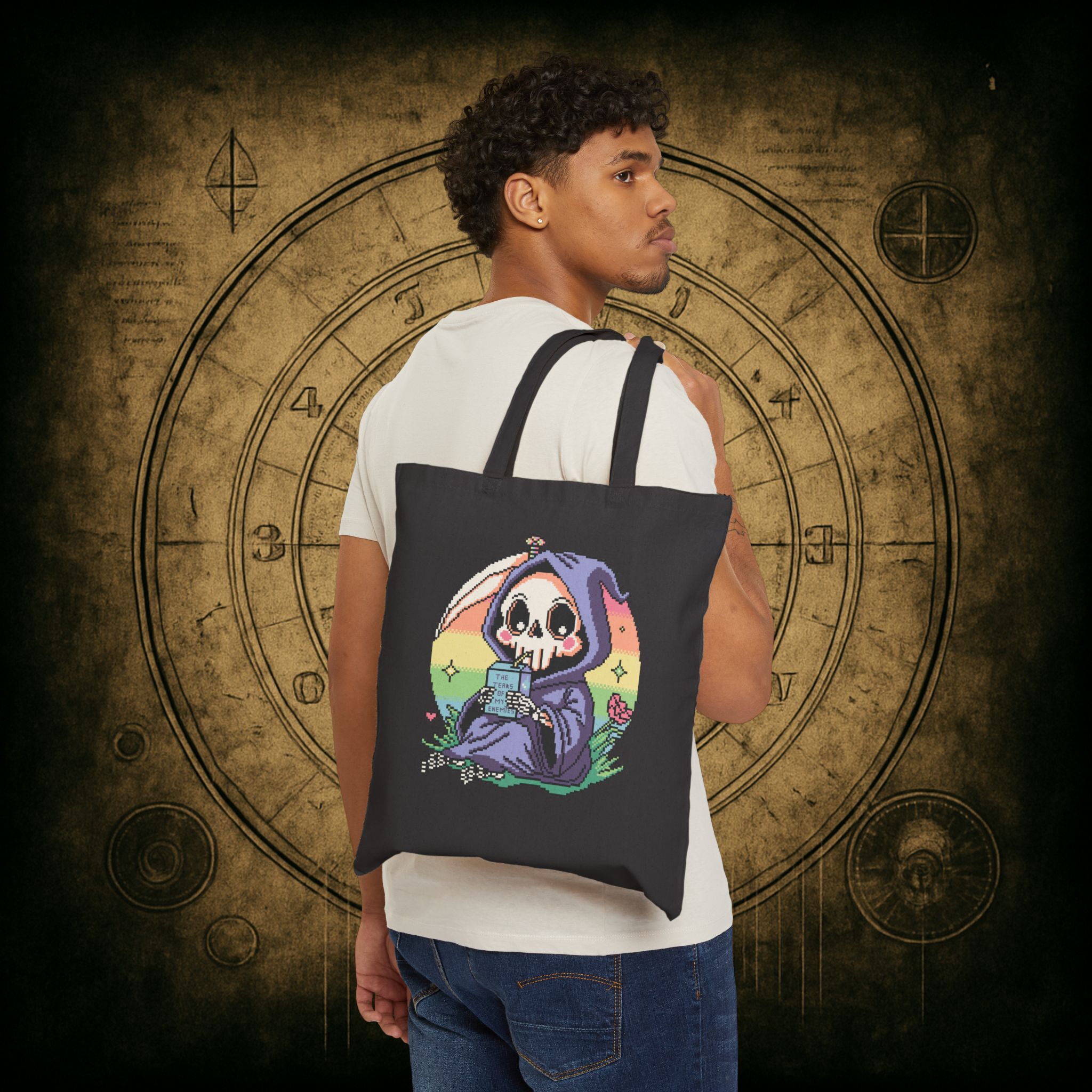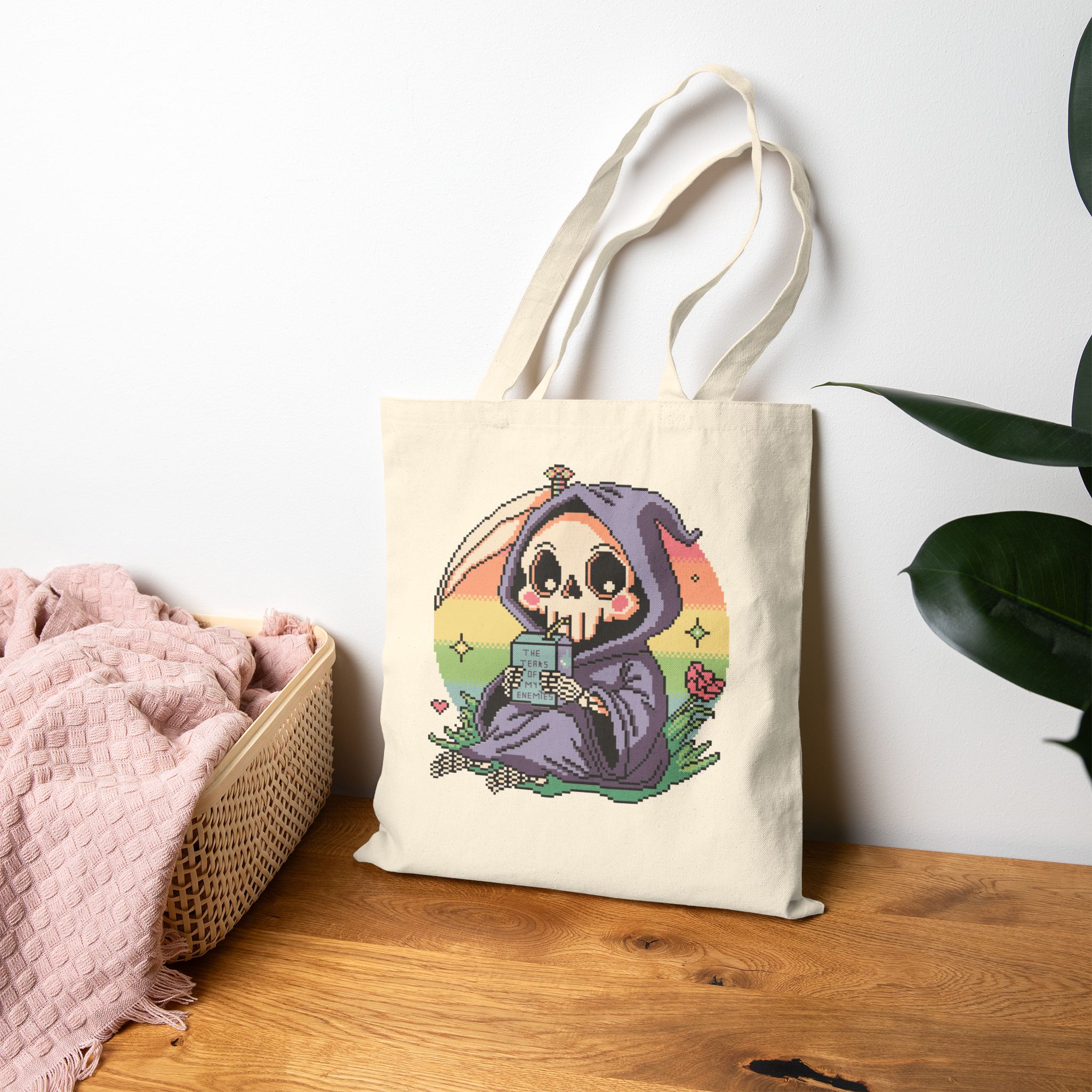 Because hydration is important, even when it’s emotionally sourced. The Tears of My Enemies Tote Bag features a pastel-robed reaper delicately sipping doom through a straw, basking under a rainbow like the petty little icon they are. Equal parts adorable and apocalyptic, this bag is perfect for hauling hex supplies, herbal teas, or your latest grudge journal. It’s soft vengeance in a tote, sweet, salty, and probably a little cursed.