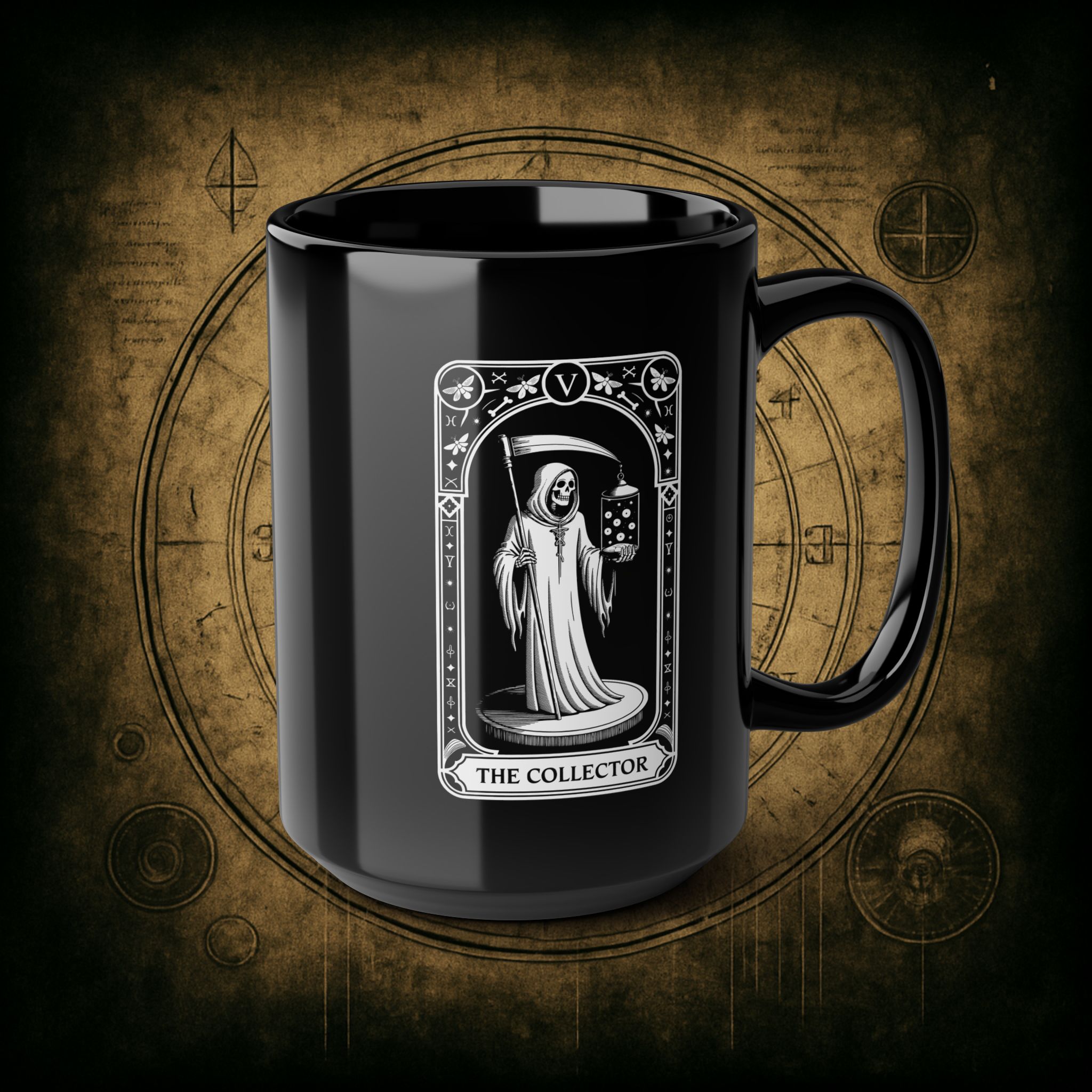 Drawn from the fifth card in the deck of doom, The Collector doesn’t sip tea. They gather souls, stitch fates, and alphabetize the damned, probably by zodiac sign. 💀📦