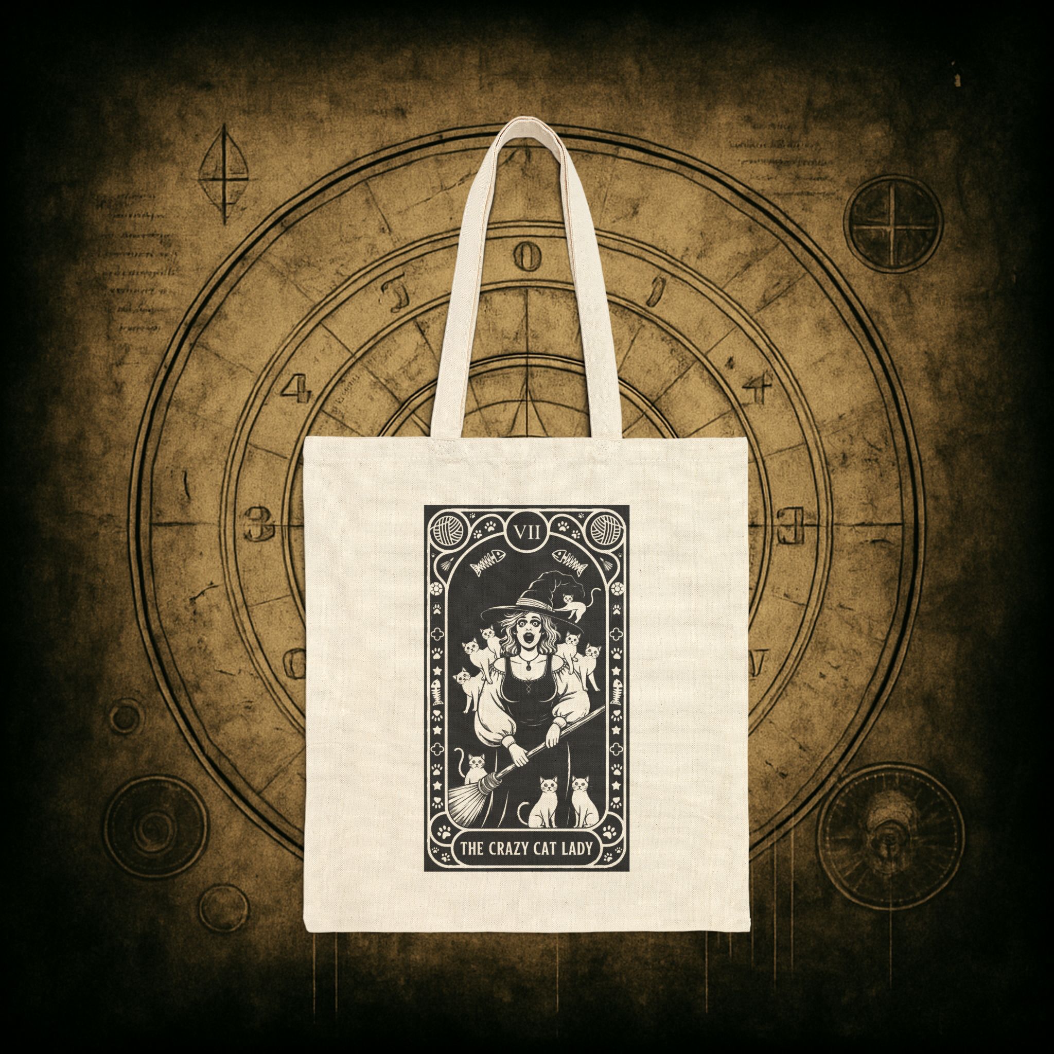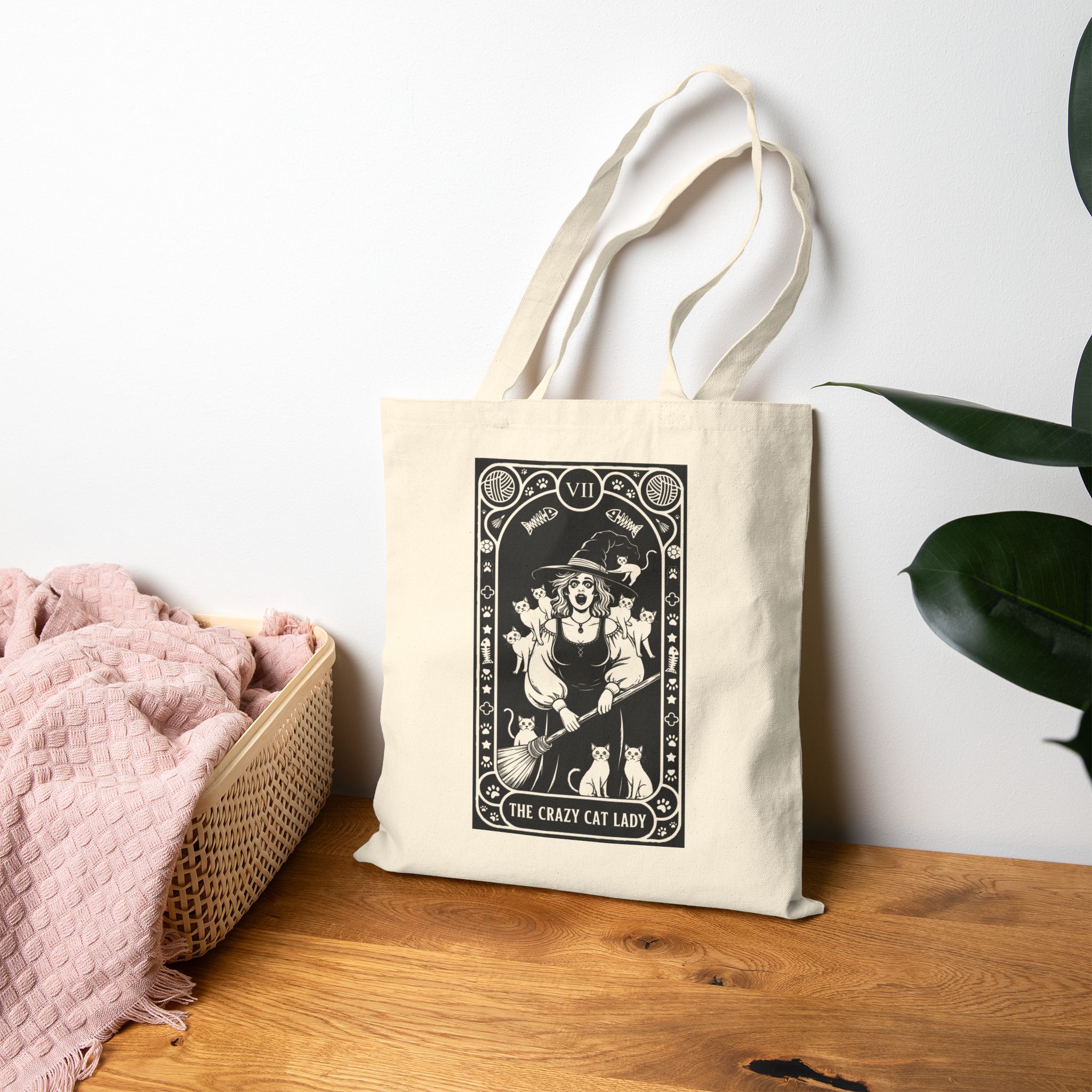 Whether you’re summoning chaos, kibble, or just more yarn, the Crazy Cat Lady Tote Bag is your ultimate familiar companion. Etched with arcane feline energy and enchanted with the spirit of nine lives per square inch, this bag purrs with power and unapologetic weirdness. It’s not just an accessory—it’s a lifestyle spell in cotton form.