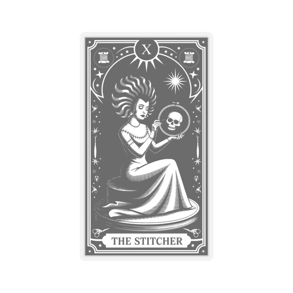 Card X: The Stitcher, Weaver of fate, mender of moods, and part-time necromancer (only the cozy kind). One hand holds the thread of destiny, the other cradles a skull that’s seen a lot of late-night crafting meltdowns.