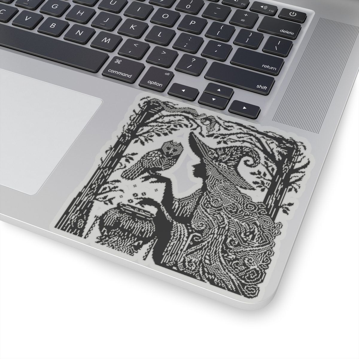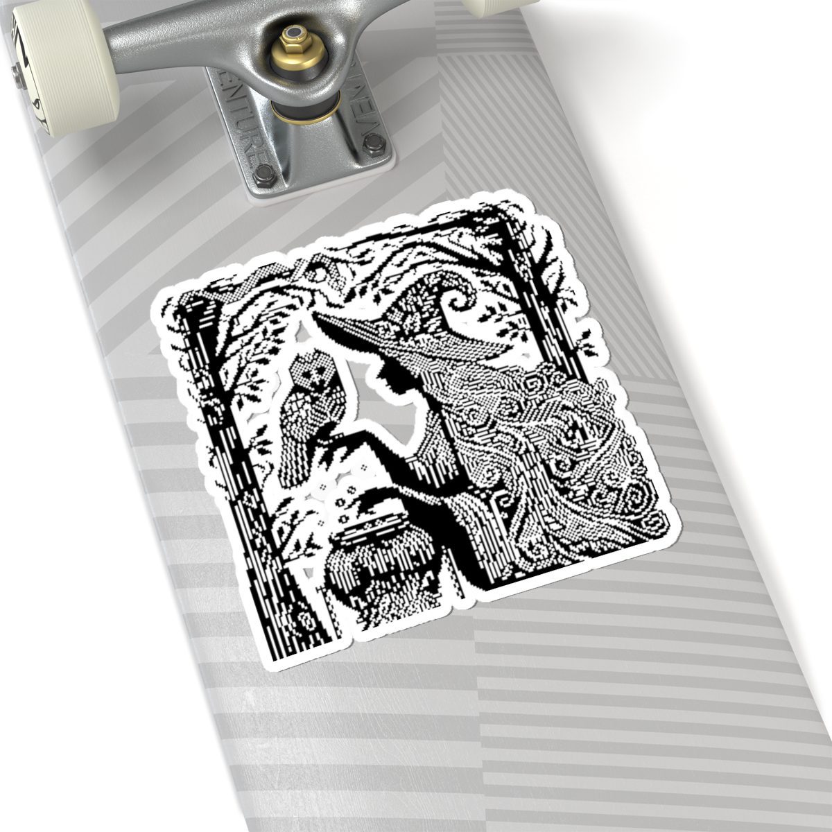 Stick her to your grimoire, mossy water bottle, or laptop full of forbidden knowledge. Every glance is a whisper: “You’re exactly where you’re meant to hex.”