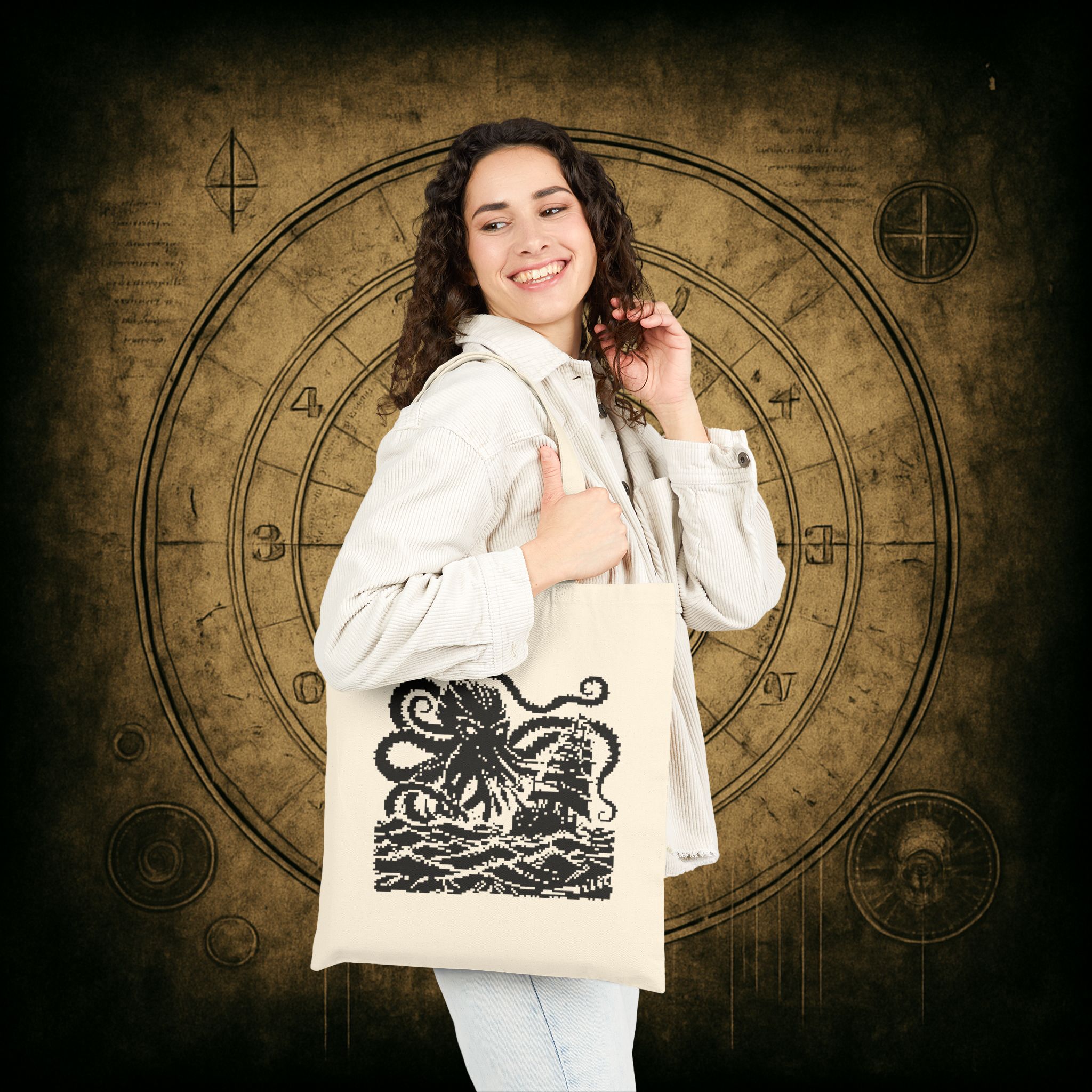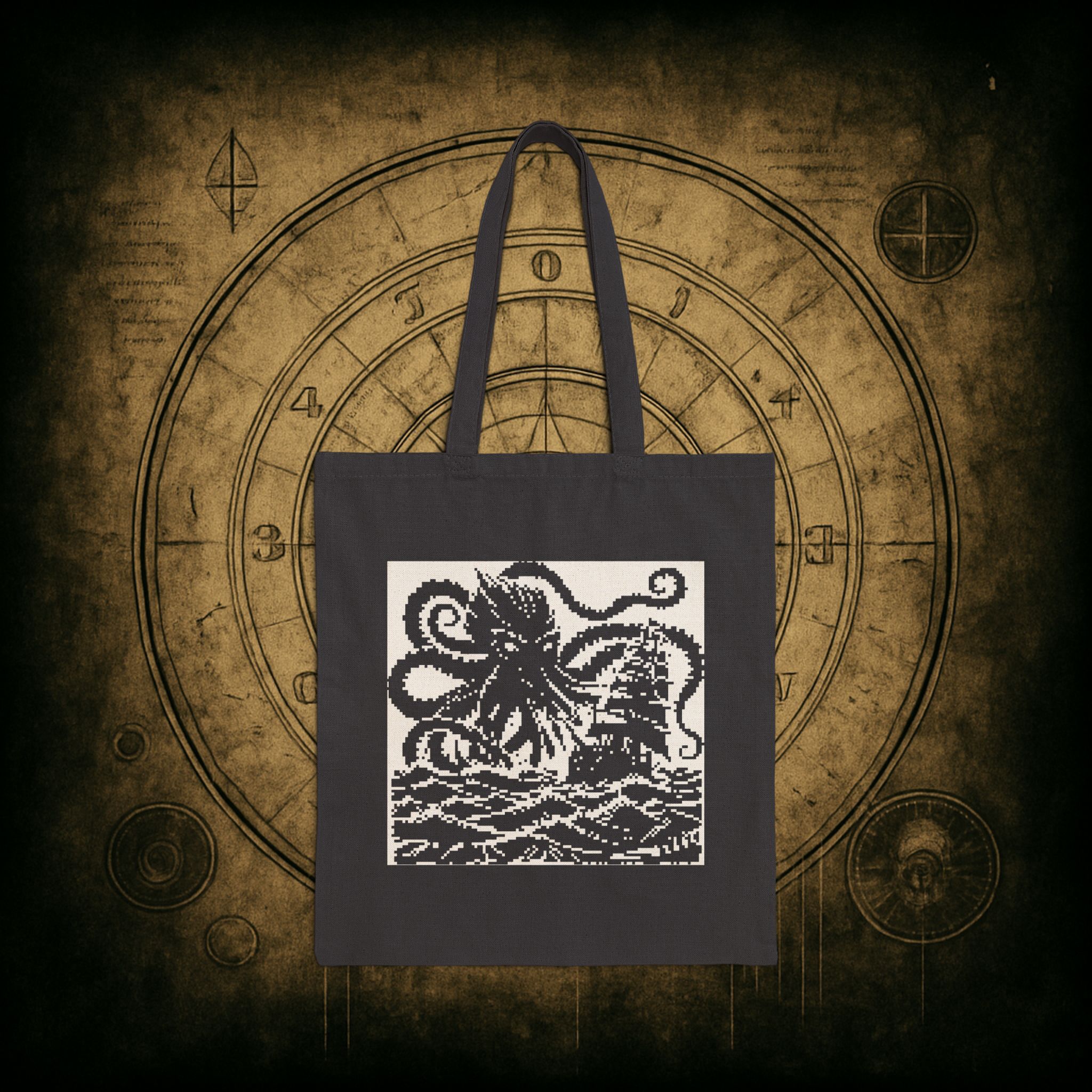 Whether you’re off to the library or luring ships to their doom (same vibe), the Woodcut Kraken Tote Bag is your perfect monstrous companion. Drenched in vintage inkwork and eldritch charm, this canvas creation is sturdy enough to carry your darkest secrets, or just snacks for the sea.
