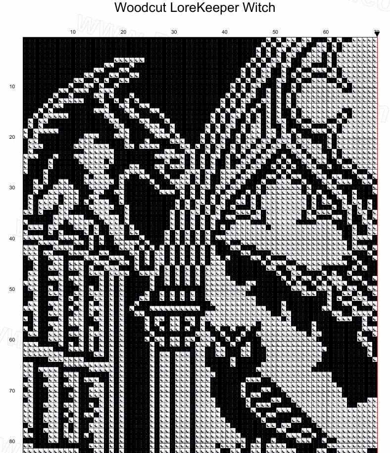 Woodcut Lore Keeper Cross Stitch Pattern