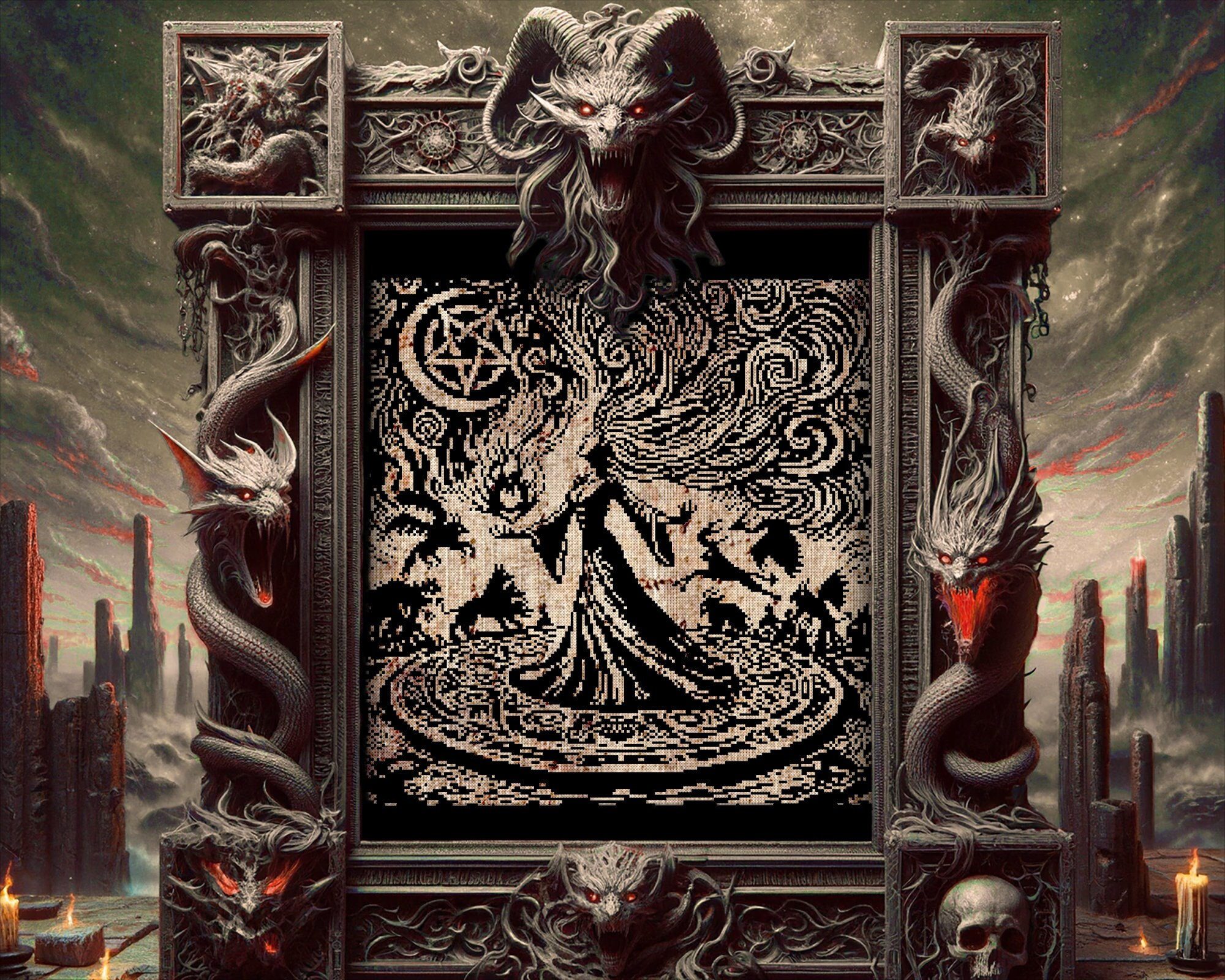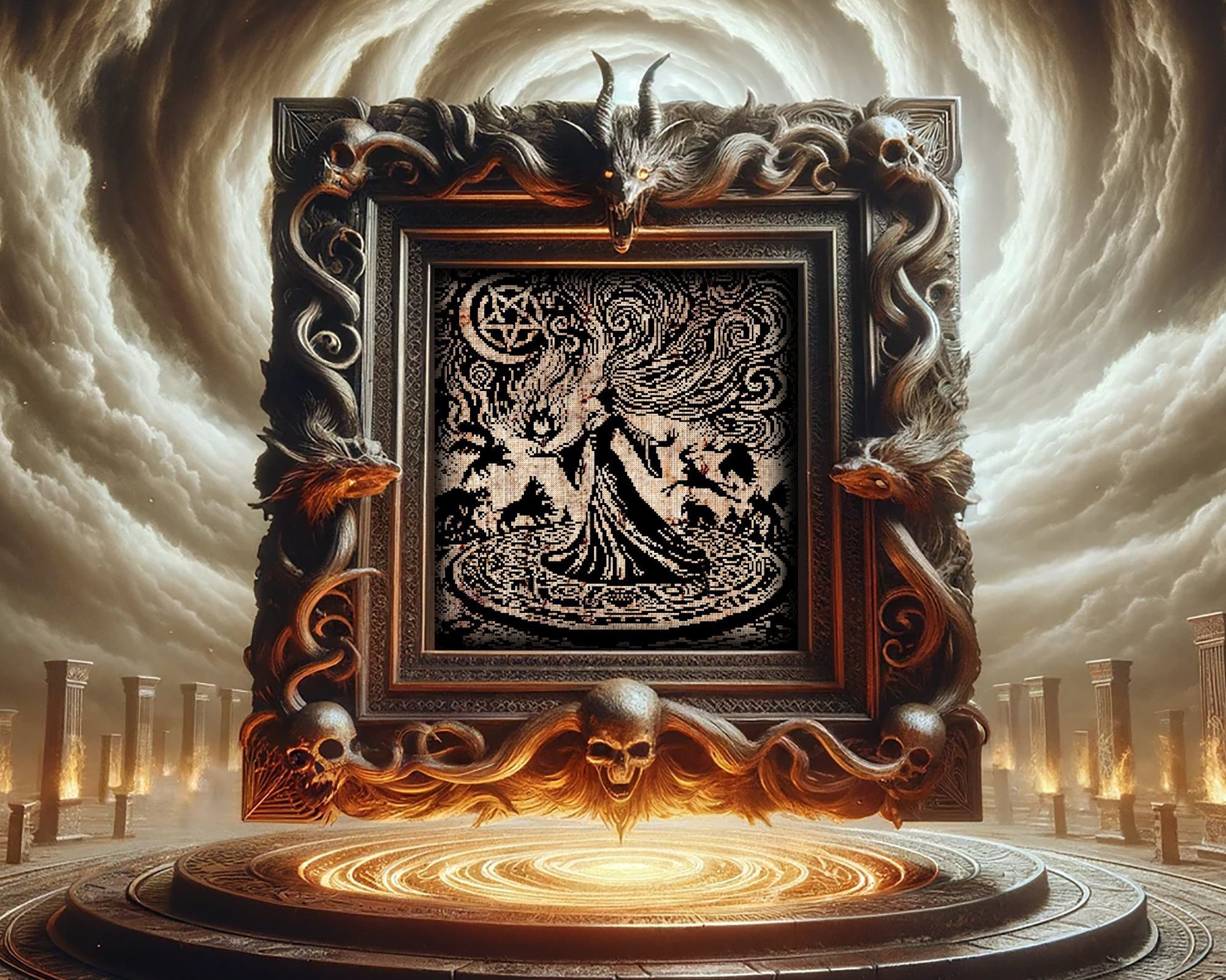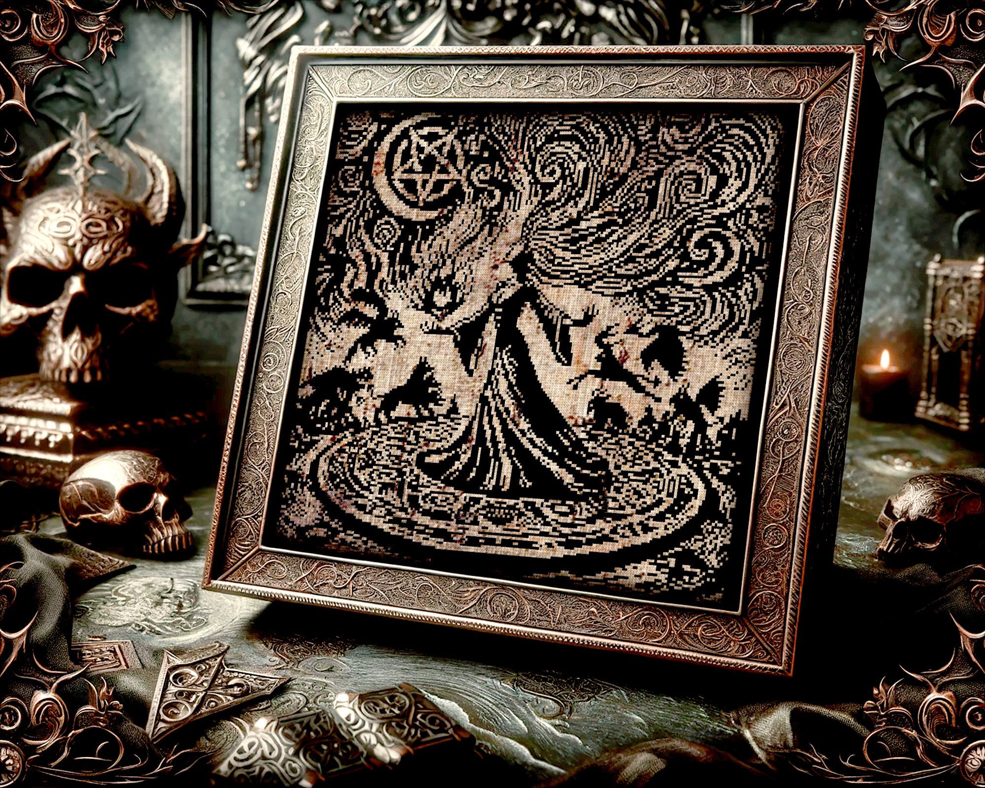 Embark on a stitching odyssey with the 🪡 Woodcut Conjurer Witch Cross Stitch Pattern, where each thread interlaces to tell the ancient tale of the 🌙 Rites of Eleusis. Enshrouded in the very essence of gothic cross stitch, this pattern brings the allure of halloween cross stitch to the realms of the modern cross stitch enthusiast.